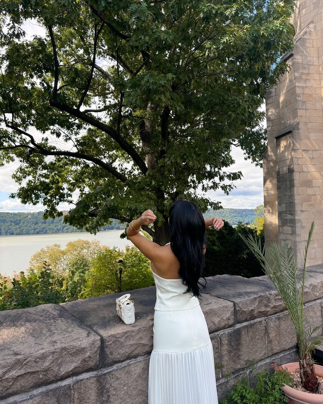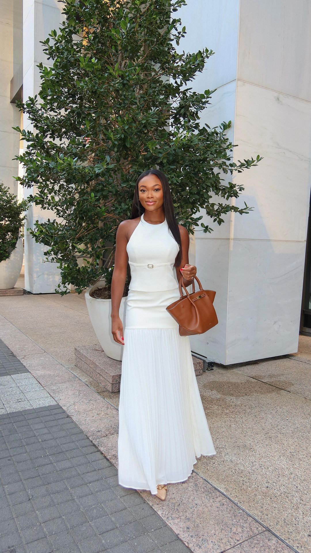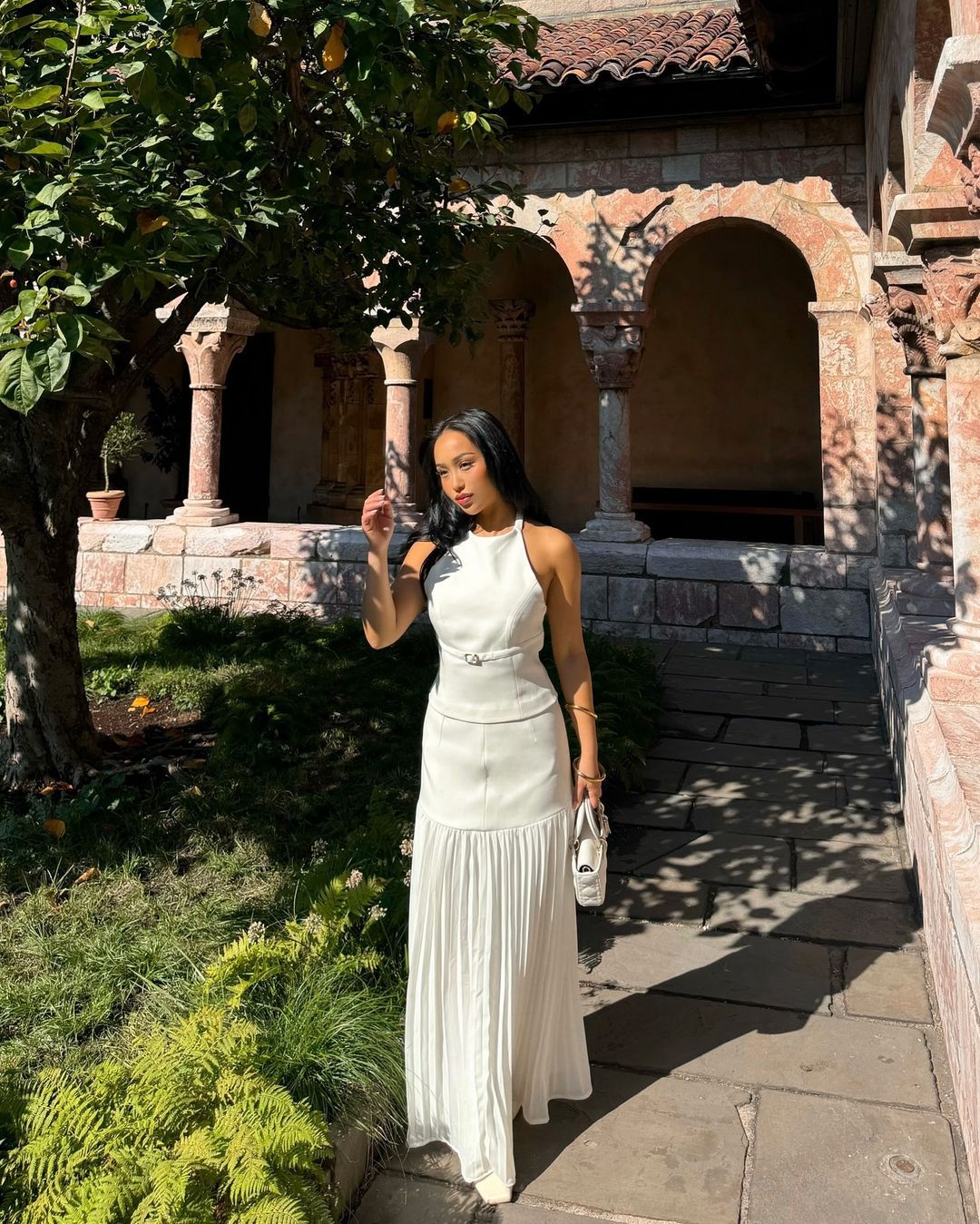 단색 민소매 목 짧은 최고 치마 세트 국경 패션 캐주얼 백리스 조끼 주름 치마 투피스 세트스토어 가기