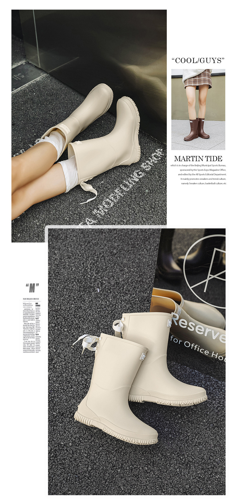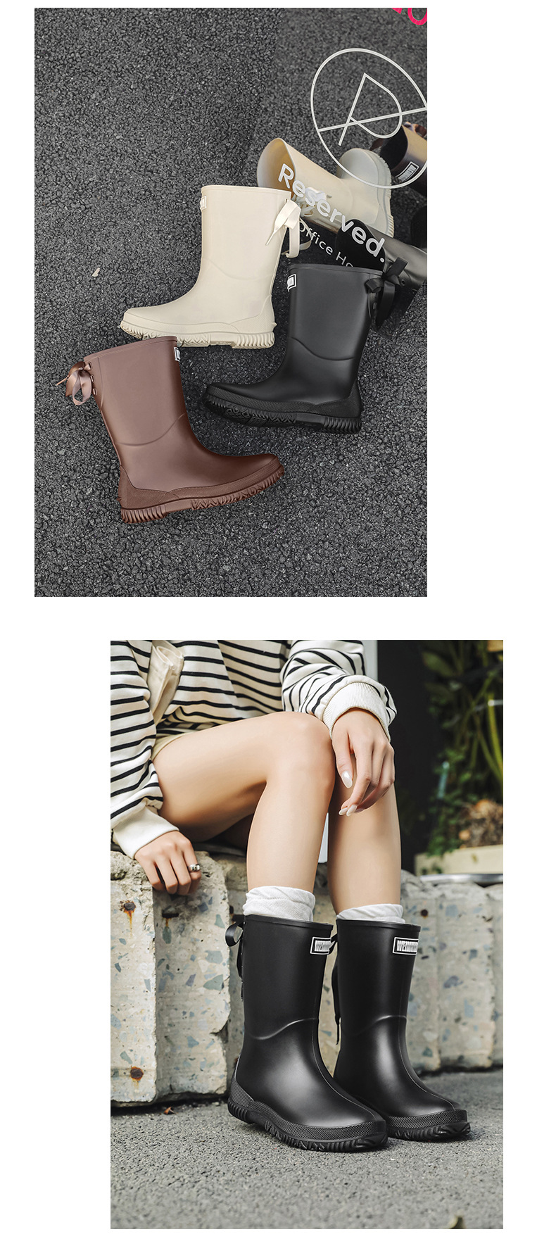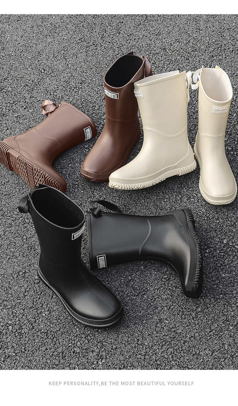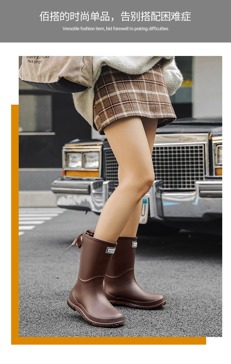 고품질 일본 및 한국산 여성용 중간 길이 레인부츠, 패셔너블한 신상품 레인부츠, 아웃도어 워터슈즈, 가볍고 방수 및 미끄럼 방지 고무신스토어 가기