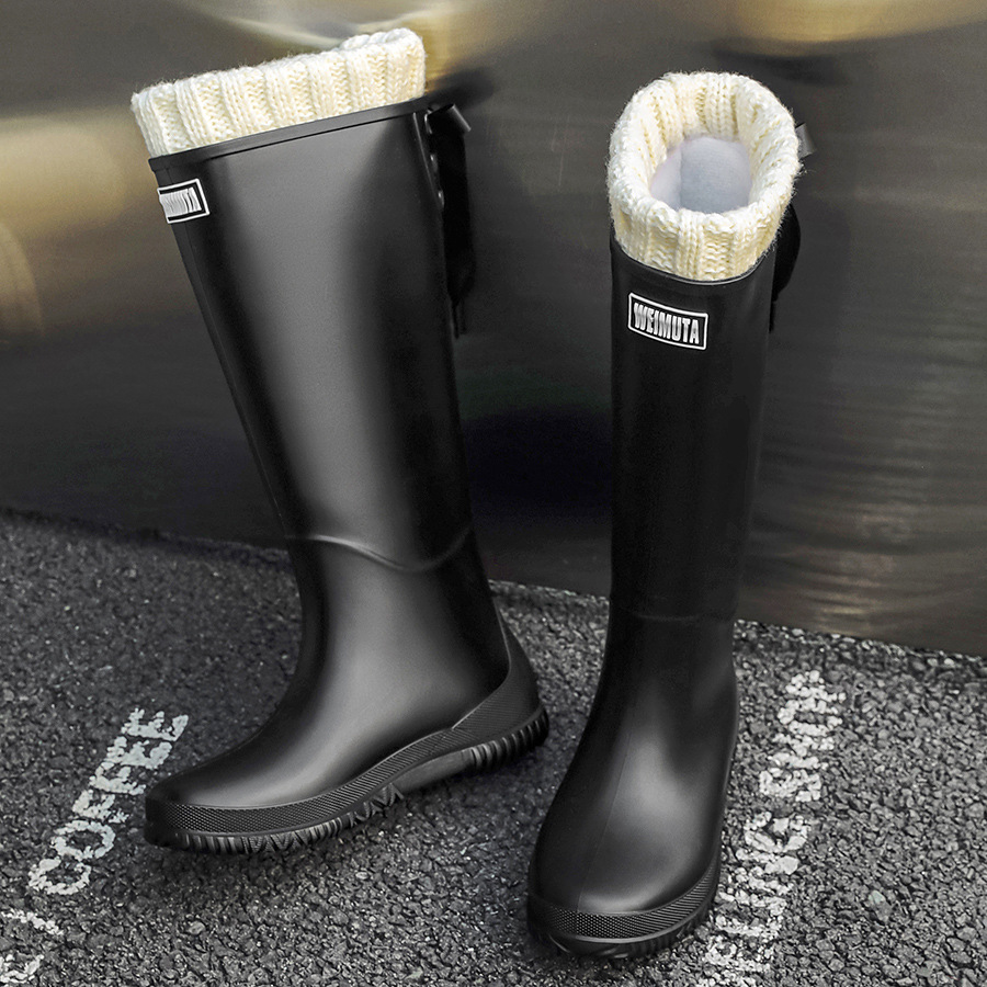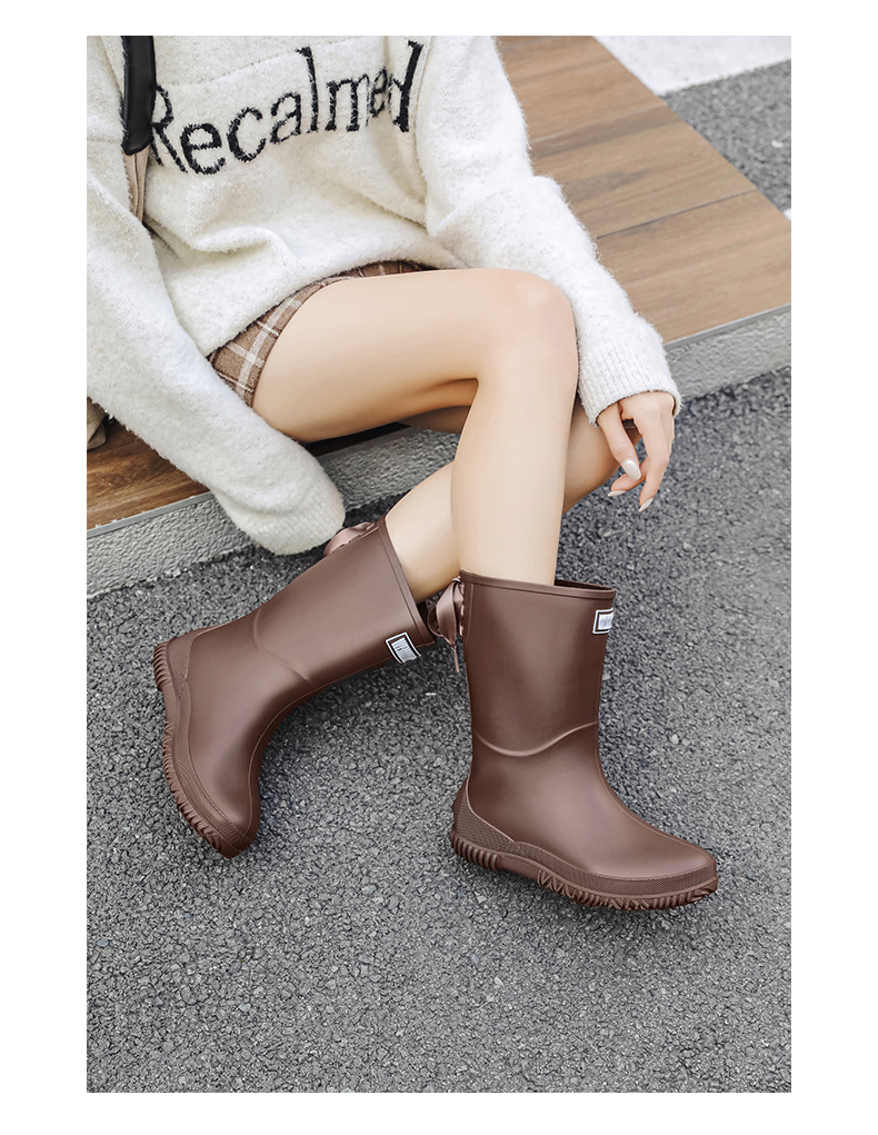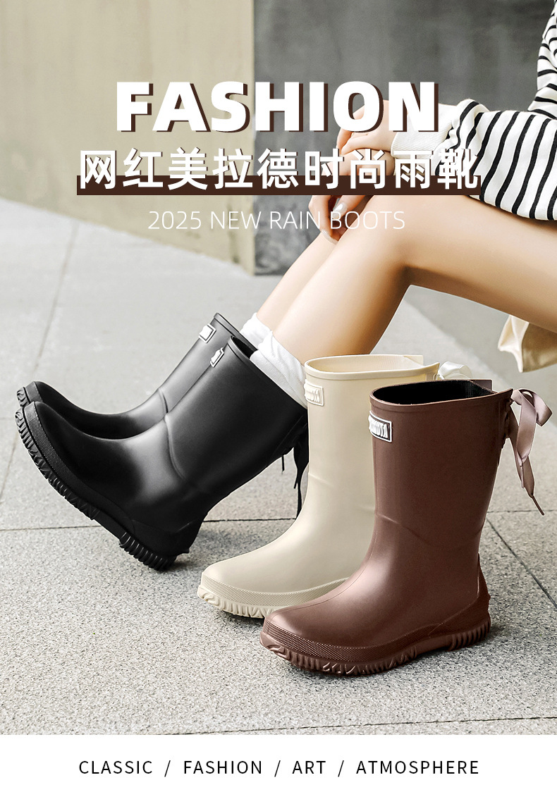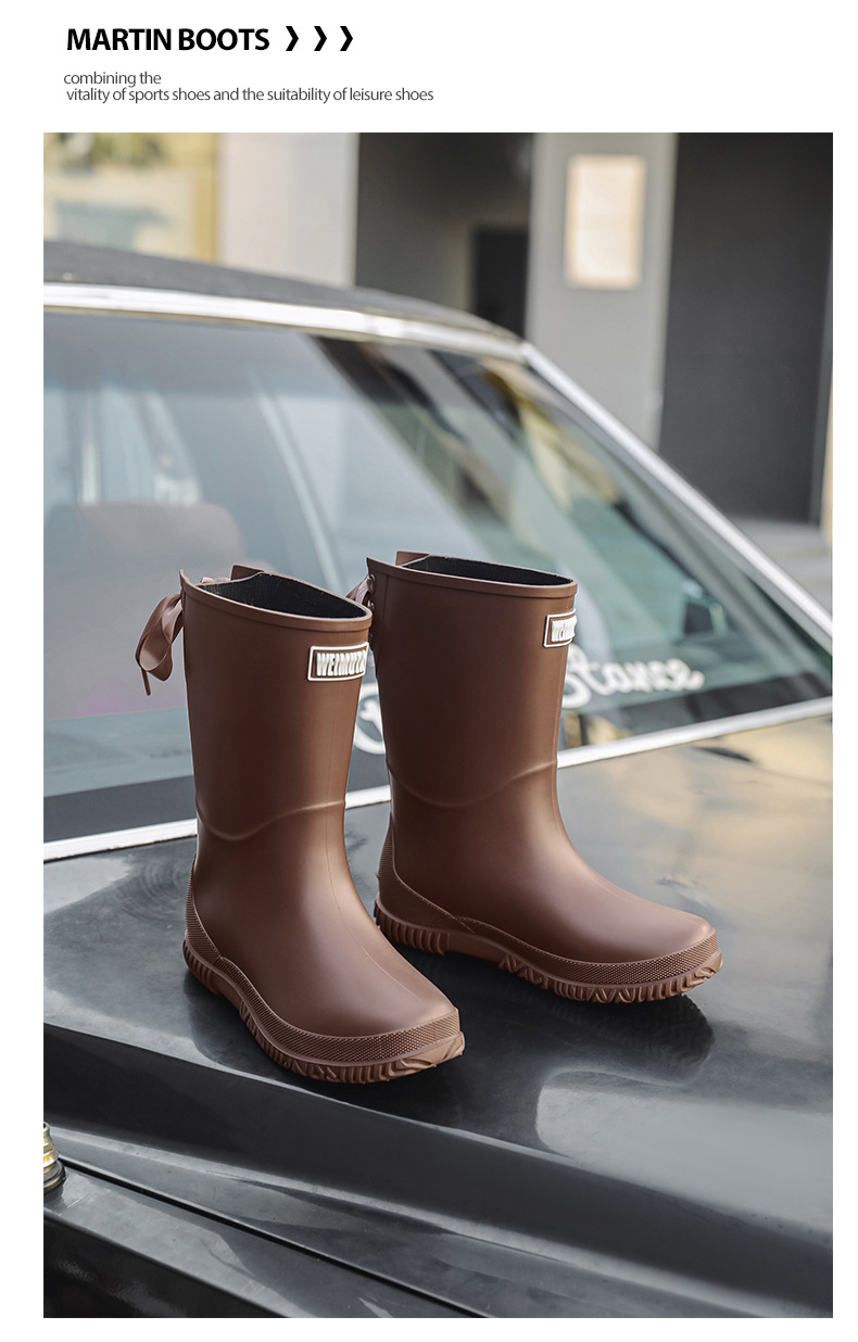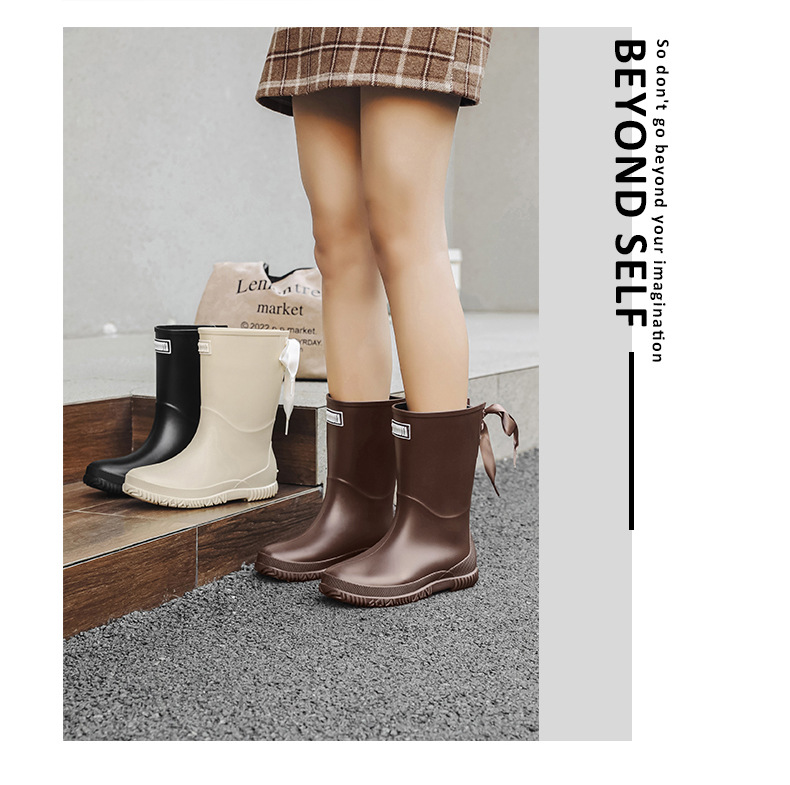고품질 일본 및 한국산 여성용 중간 길이 레인부츠, 패셔너블한 신상품 레인부츠, 아웃도어 워터슈즈, 가볍고 방수 및 미끄럼 방지 고무신스토어 가기