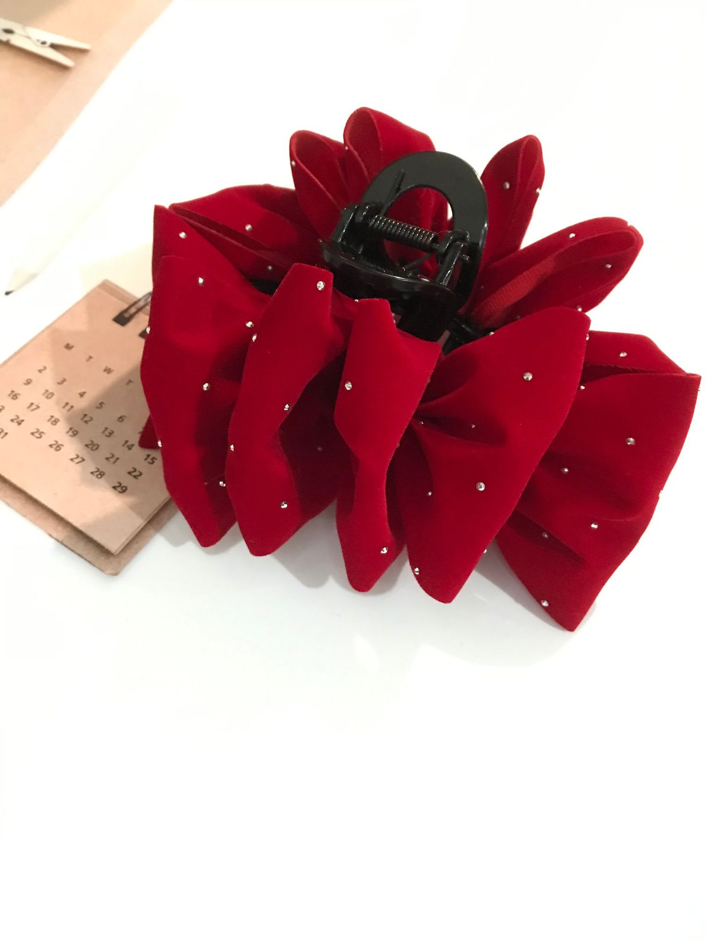 새해 빨간 도망 공주 벨벳 별이 빛나는 하늘 활 머리핀 고급 그랩 클립 여성용 대형 상어 클립 헤드웨어스토어 가기