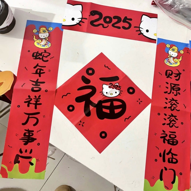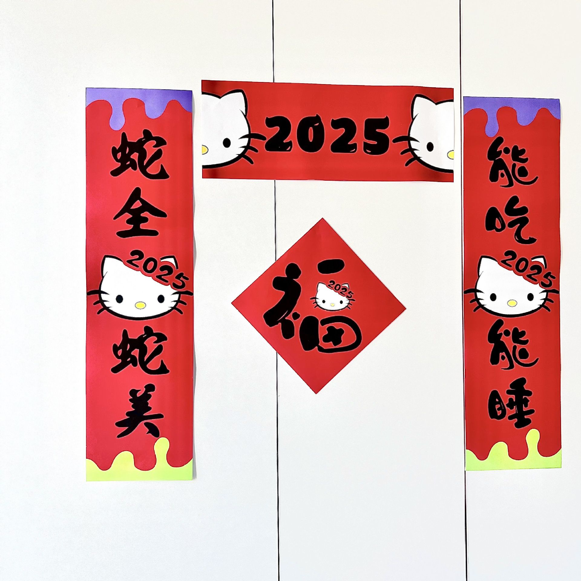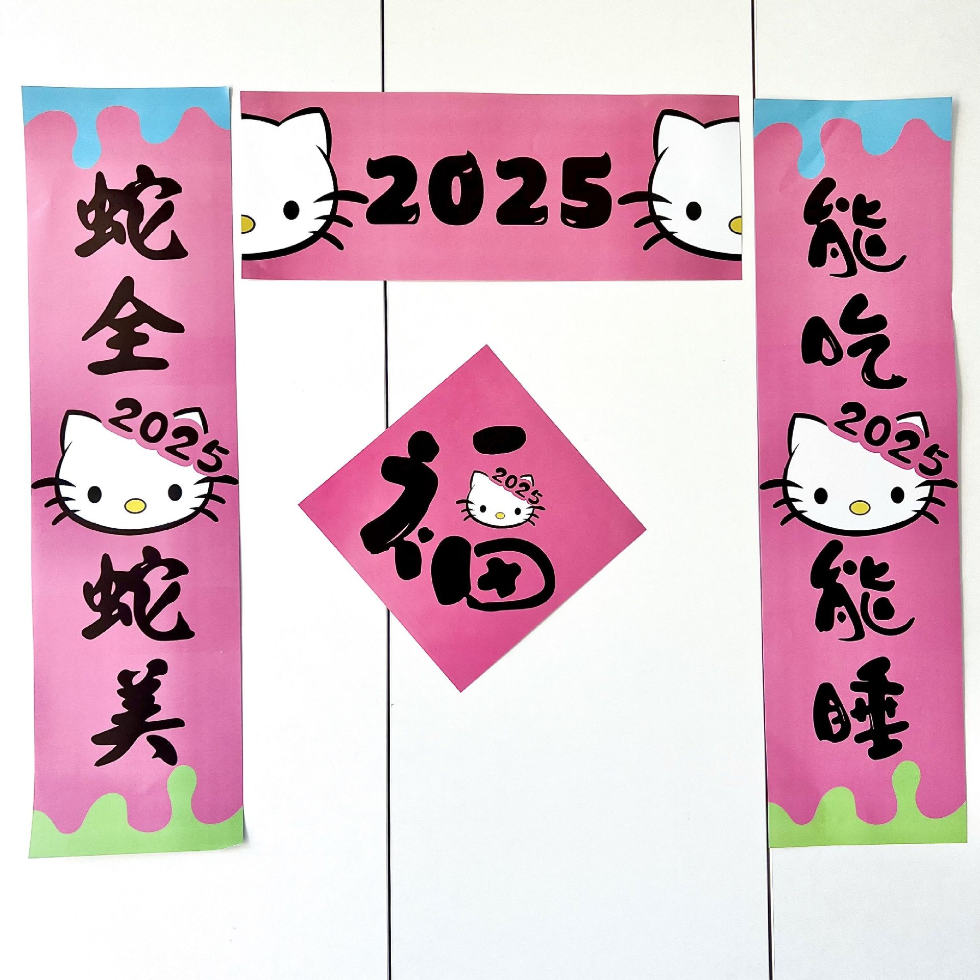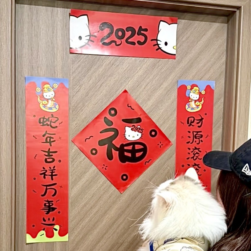 2025 년 뱀 kt 고양이 커플 작은 빨간 책 새해 장식 안녕하세요 키티 봄 축제 문 공동 기숙사
