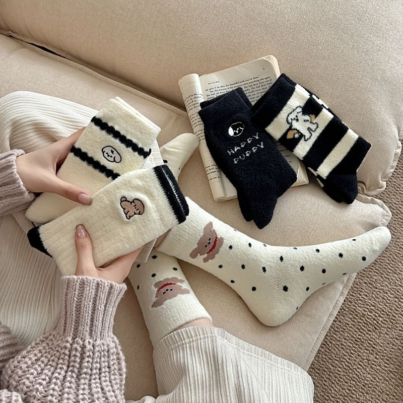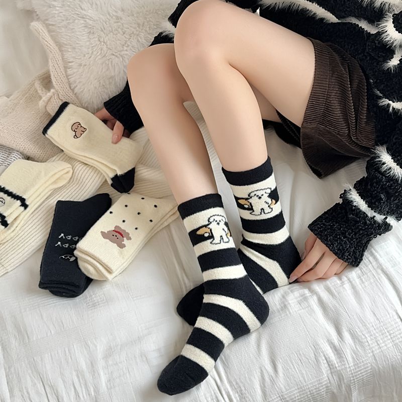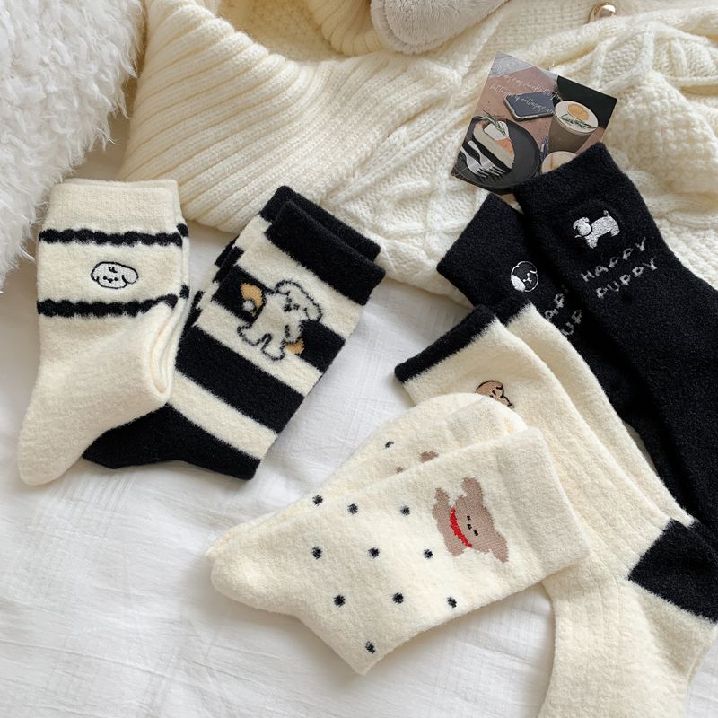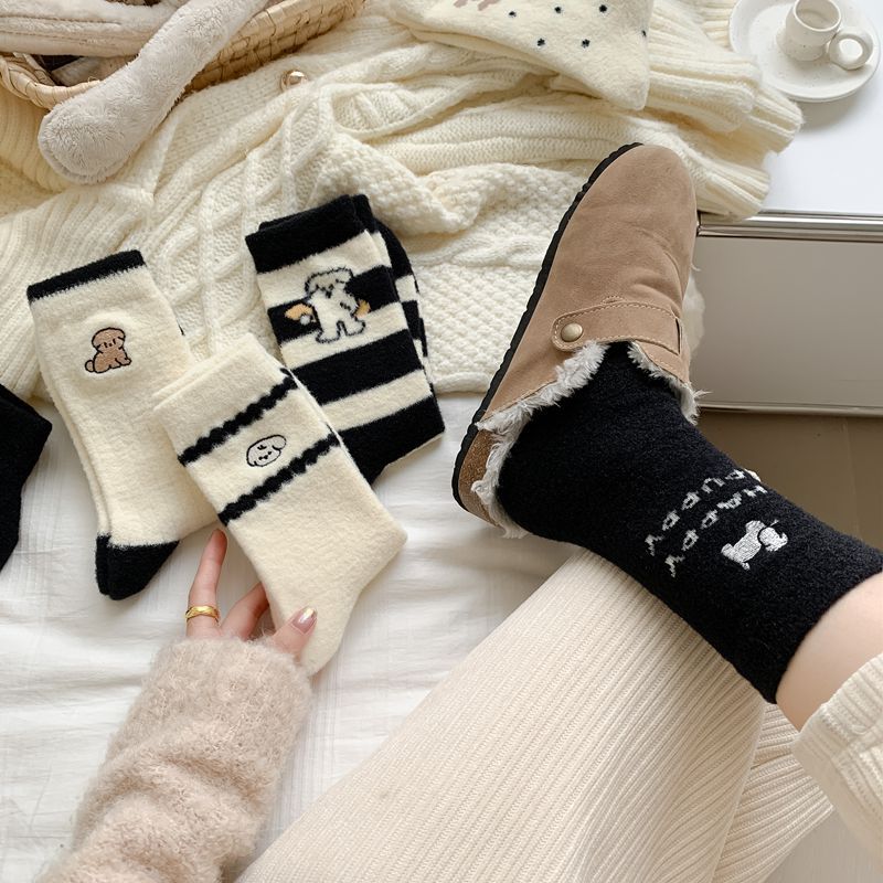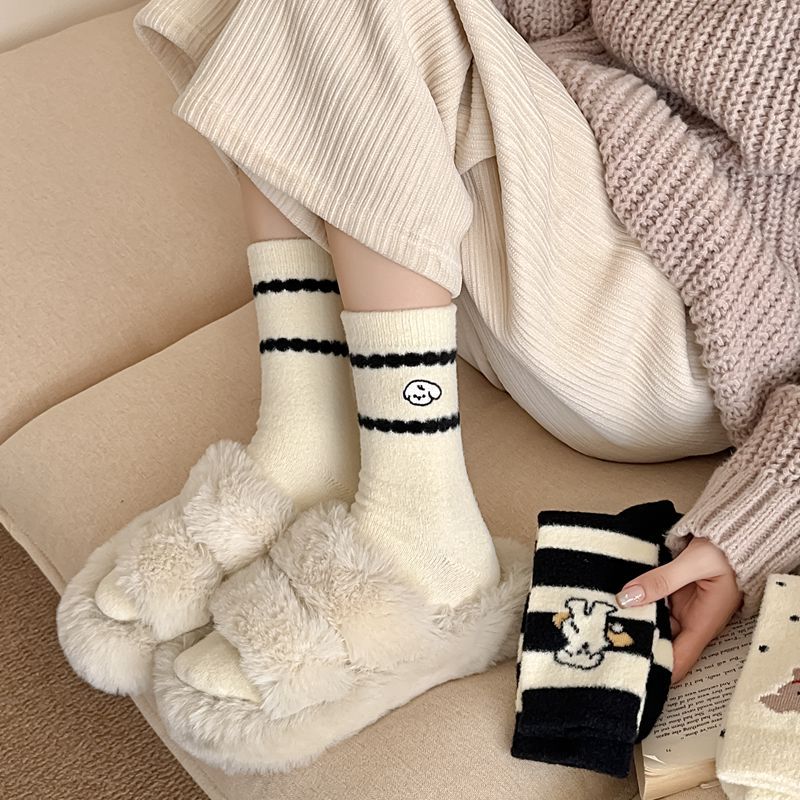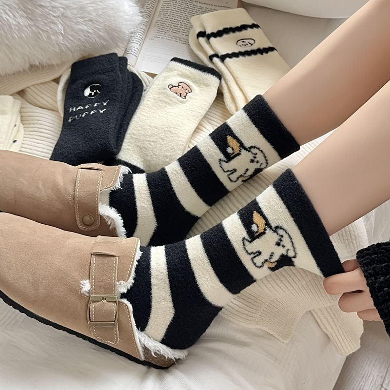 가을과 겨울 새로운 따뜻하고 절묘한 통기성 기모 귀여운 개 양말 일본 올 매치 여자 양말