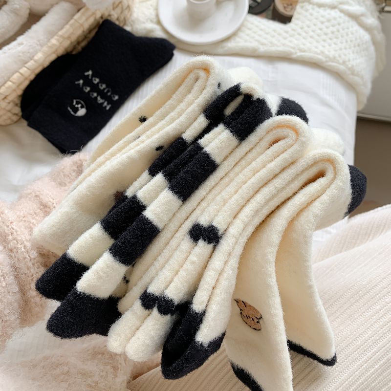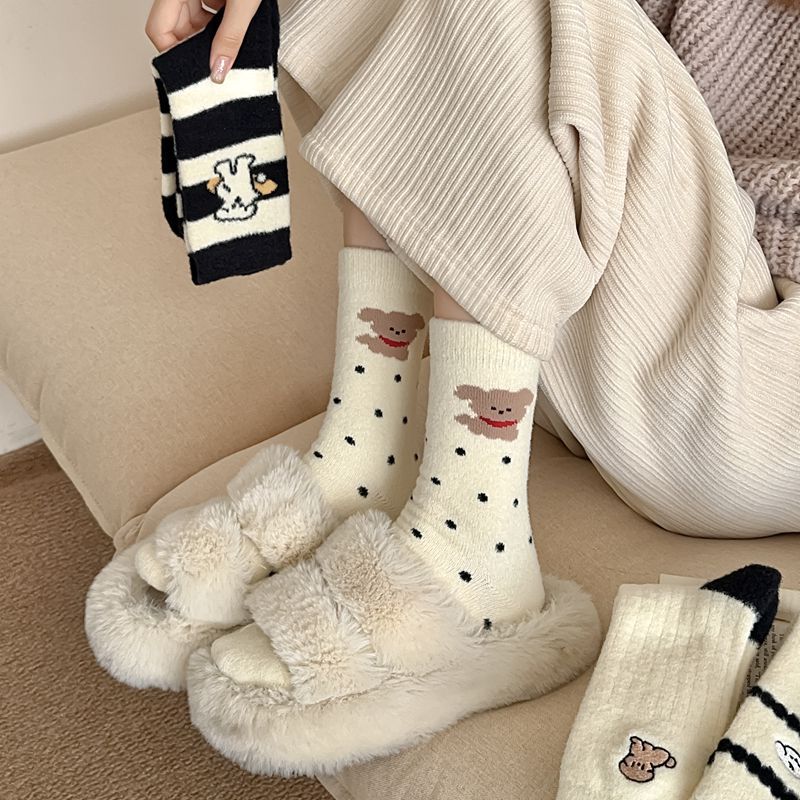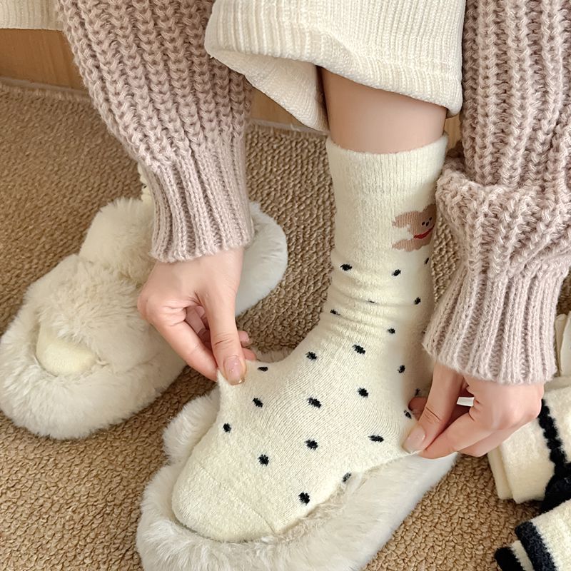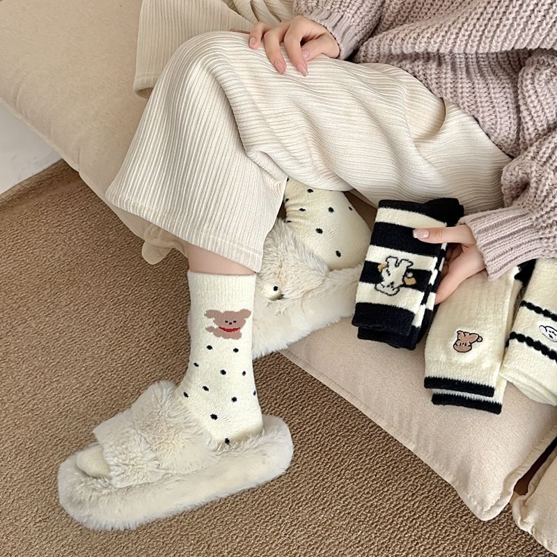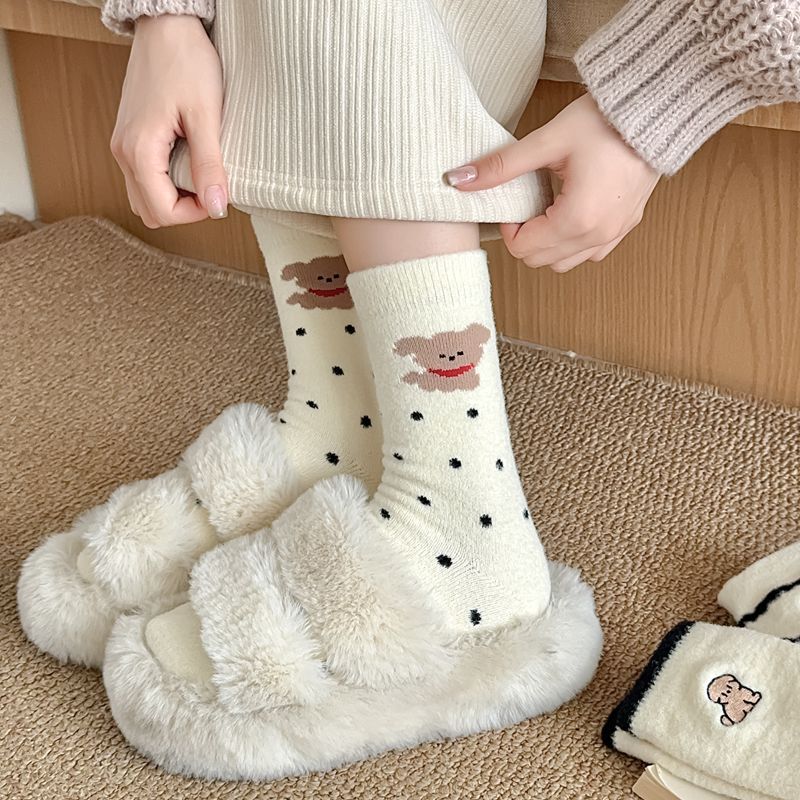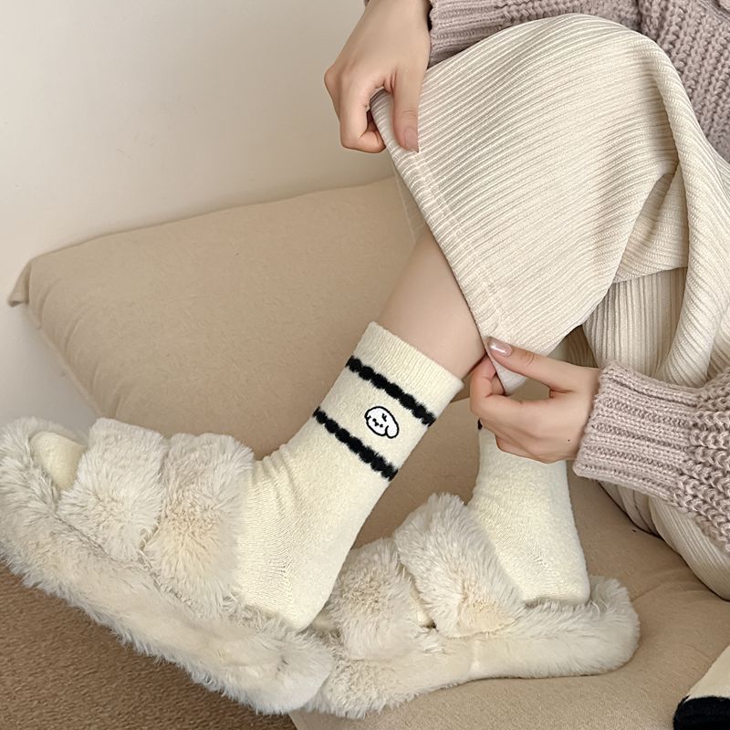 가을과 겨울 새로운 따뜻하고 절묘한 통기성 기모 귀여운 개 양말 일본 올 매치 여자 양말