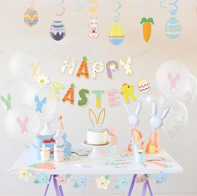 부활절 장식 풍선 세트 부활절 날 달걀 토끼 파티 라텍스 풍선 휴일 준비 용품스토어 가기