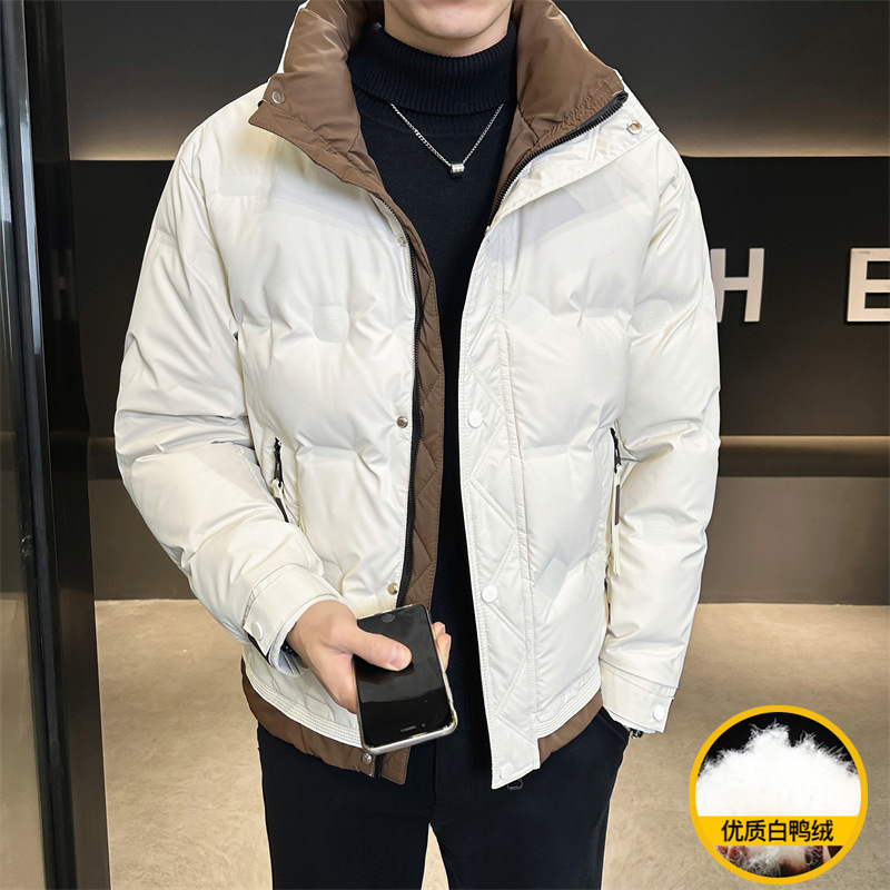 겨울 트렌디 브랜드 다운 재킷 잘 생긴 화이트 덕 다운 짧은 자켓 젊은 남성용 두꺼운 칼라 옷