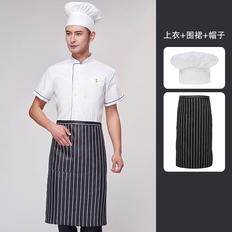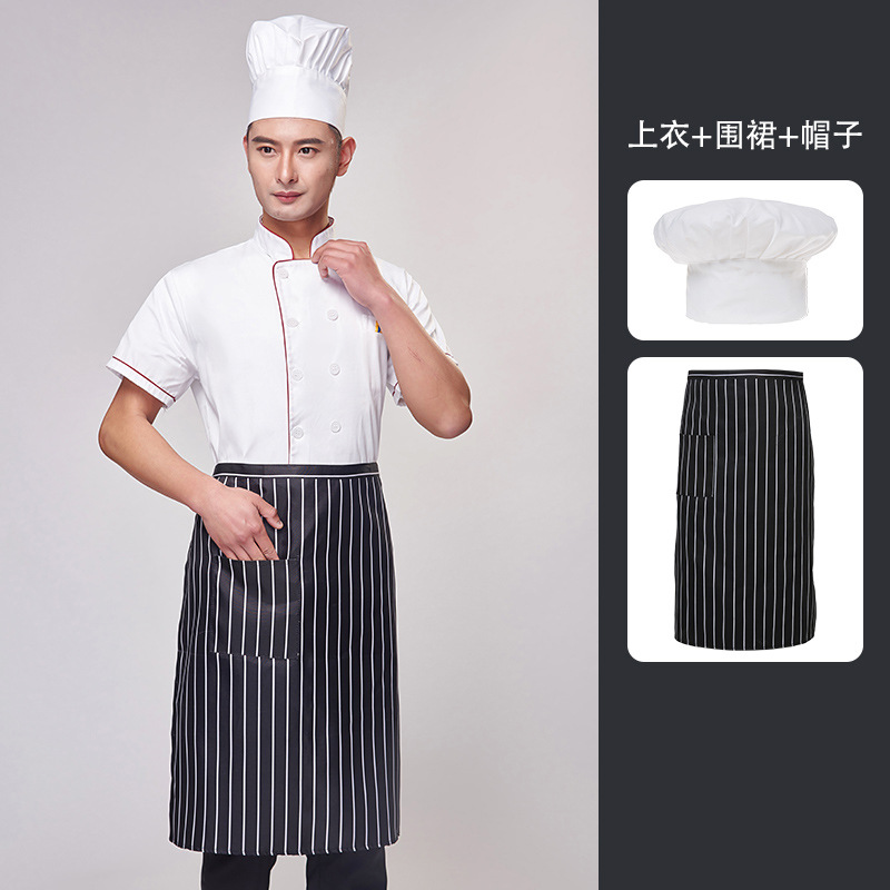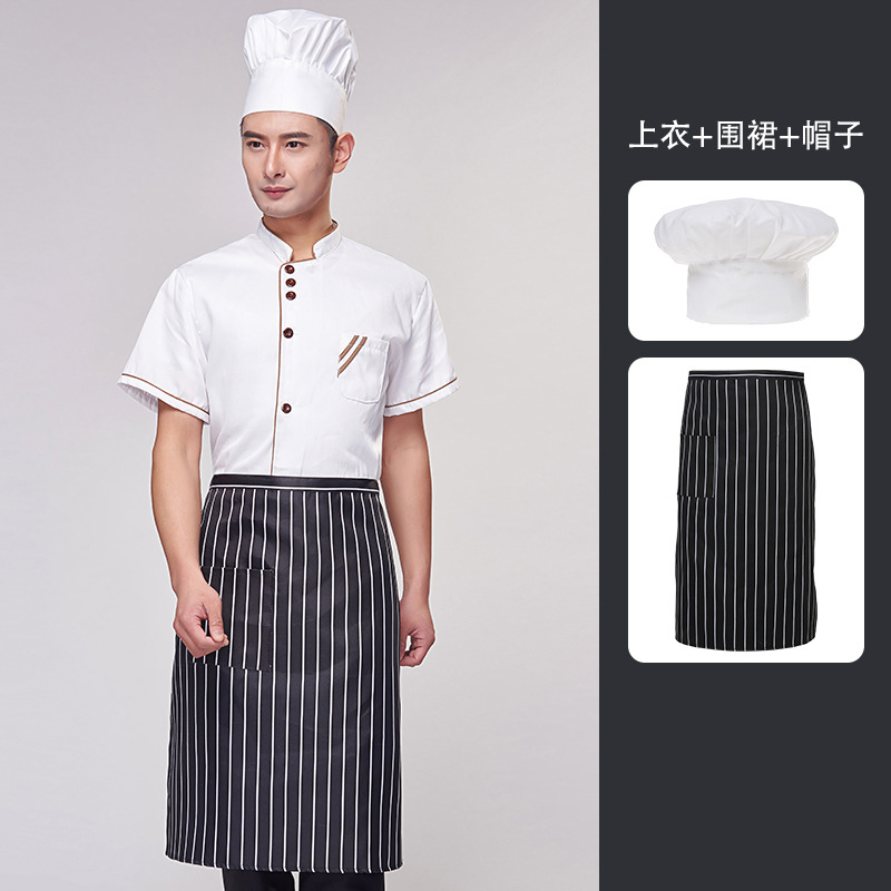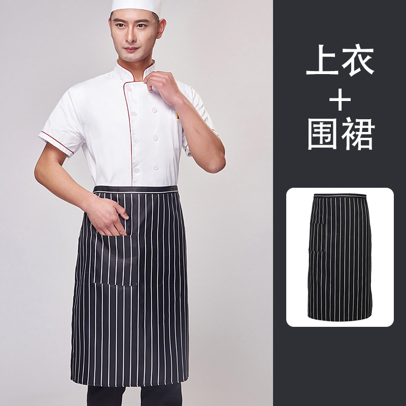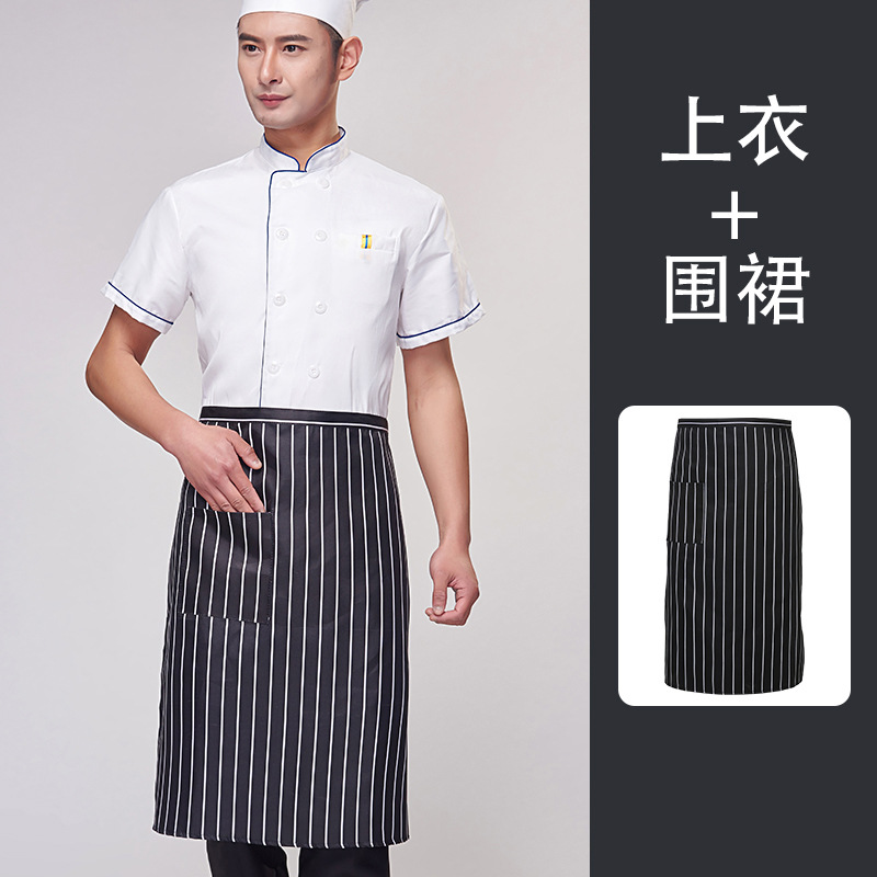 • 3버튼 흰색 반팔 + 스트라이프 앞치마
