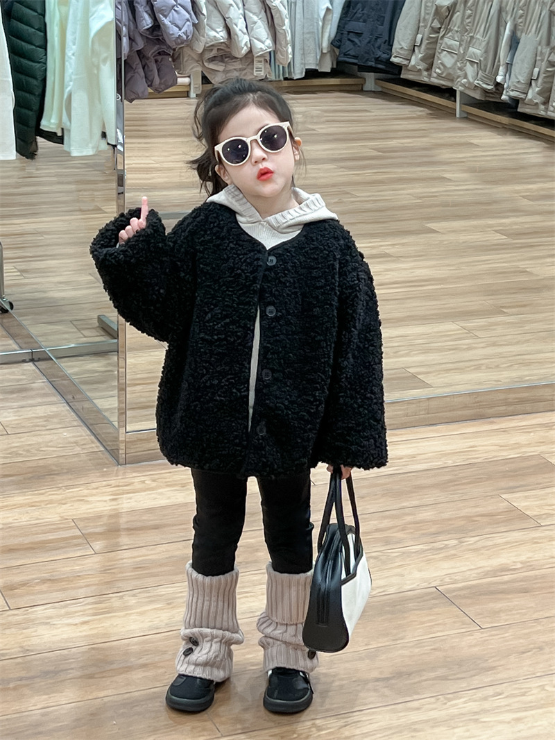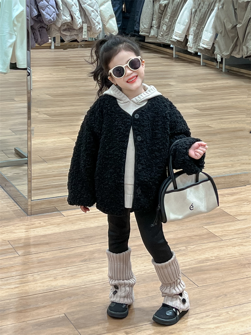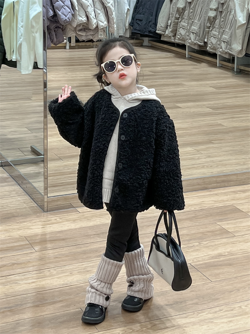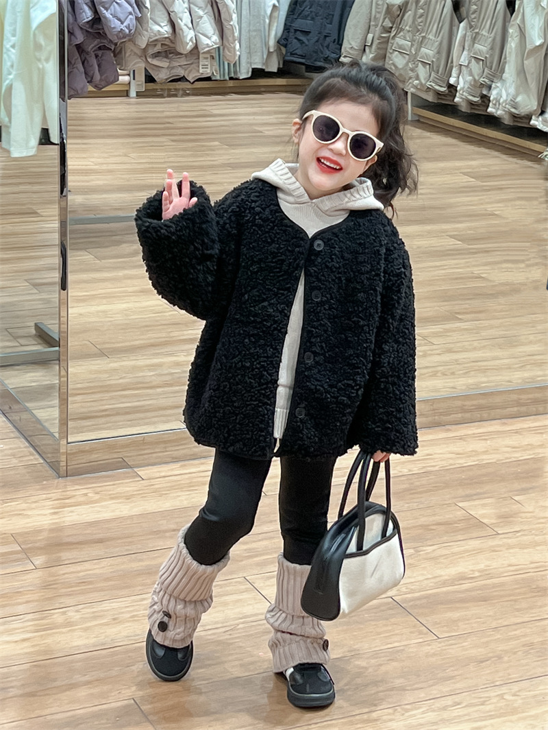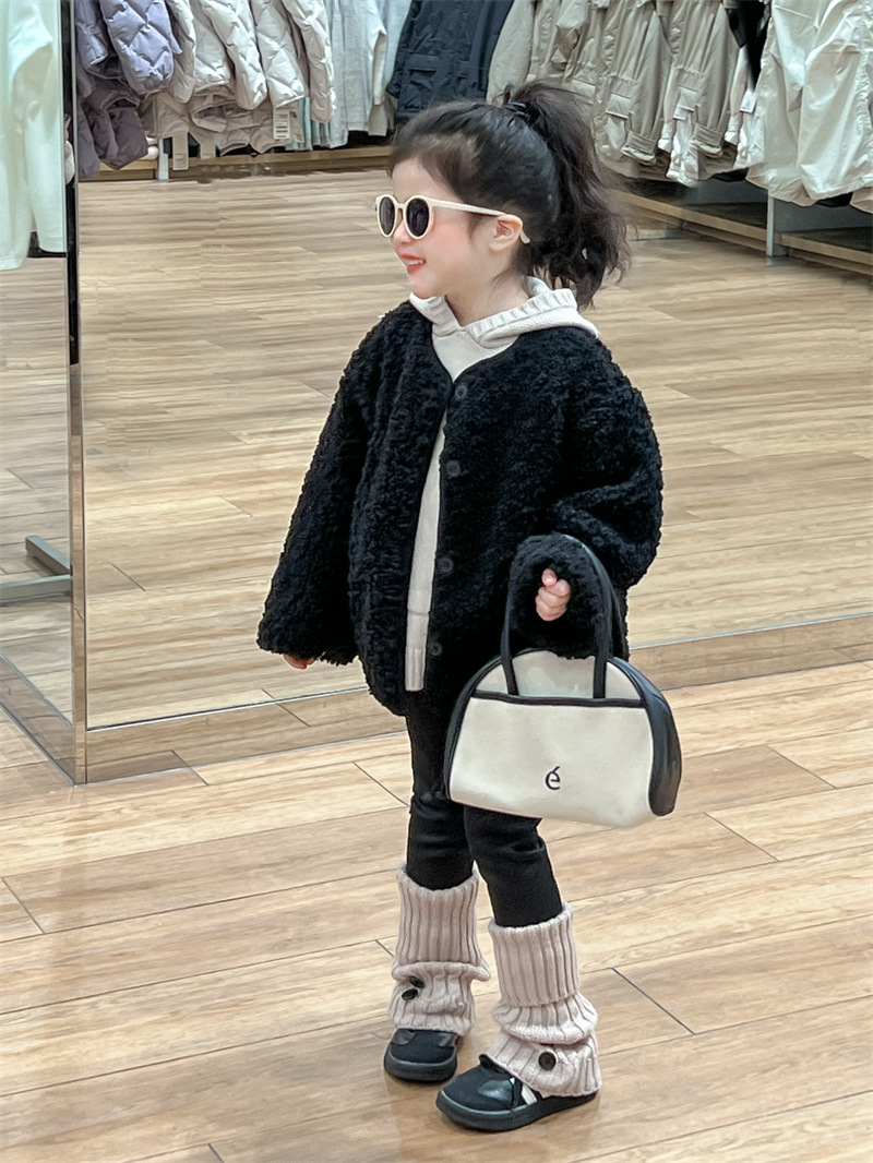 한국 스타일 여자 코트 2024 가을과 겨울 검은 샤넬 스타일 양고기 양모 싱글 가슴 기모 두꺼운 따뜻한 코트스토어 가기