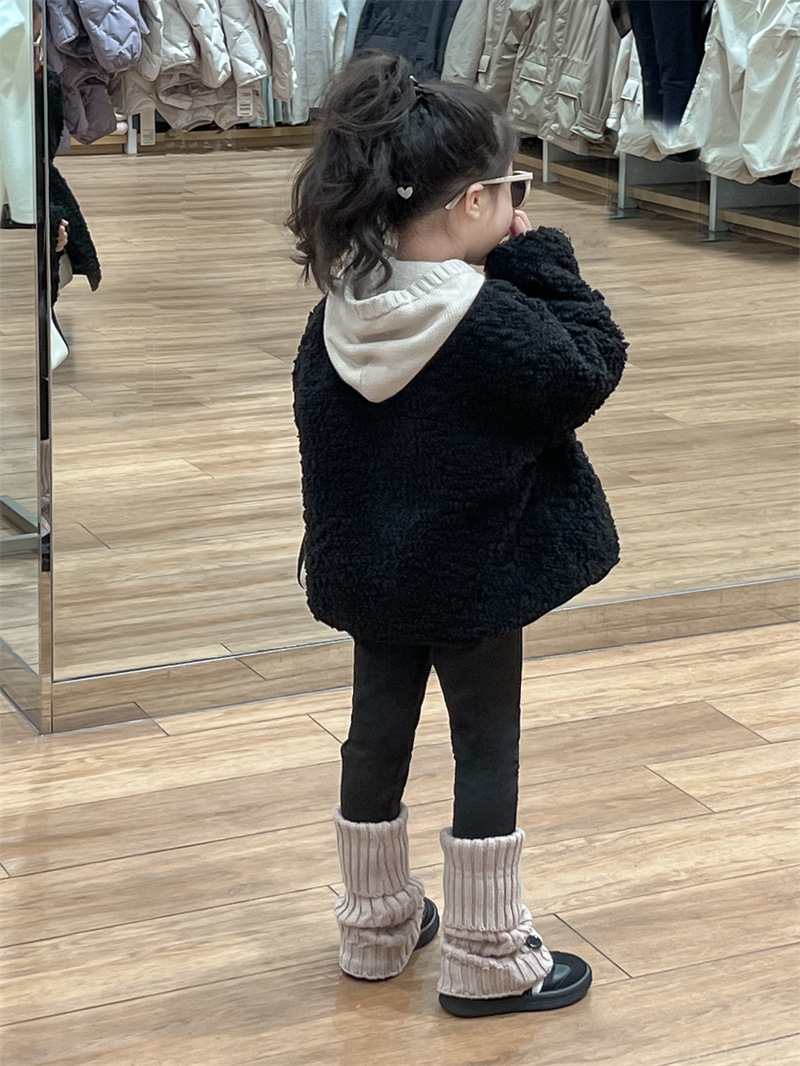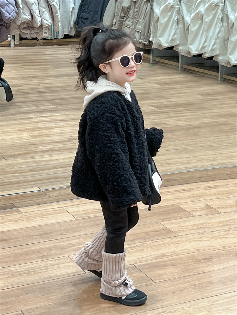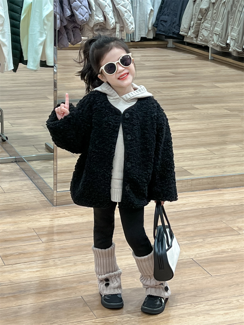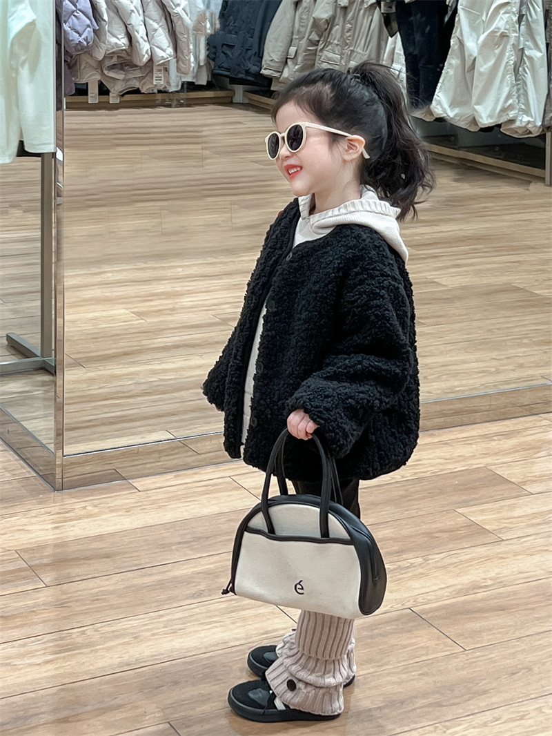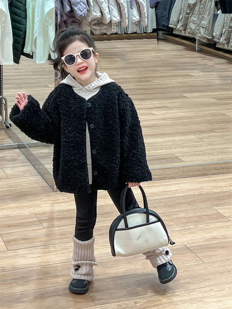 한국 스타일 여자 코트 2024 가을과 겨울 검은 샤넬 스타일 양고기 양모 싱글 가슴 기모 두꺼운 따뜻한 코트스토어 가기