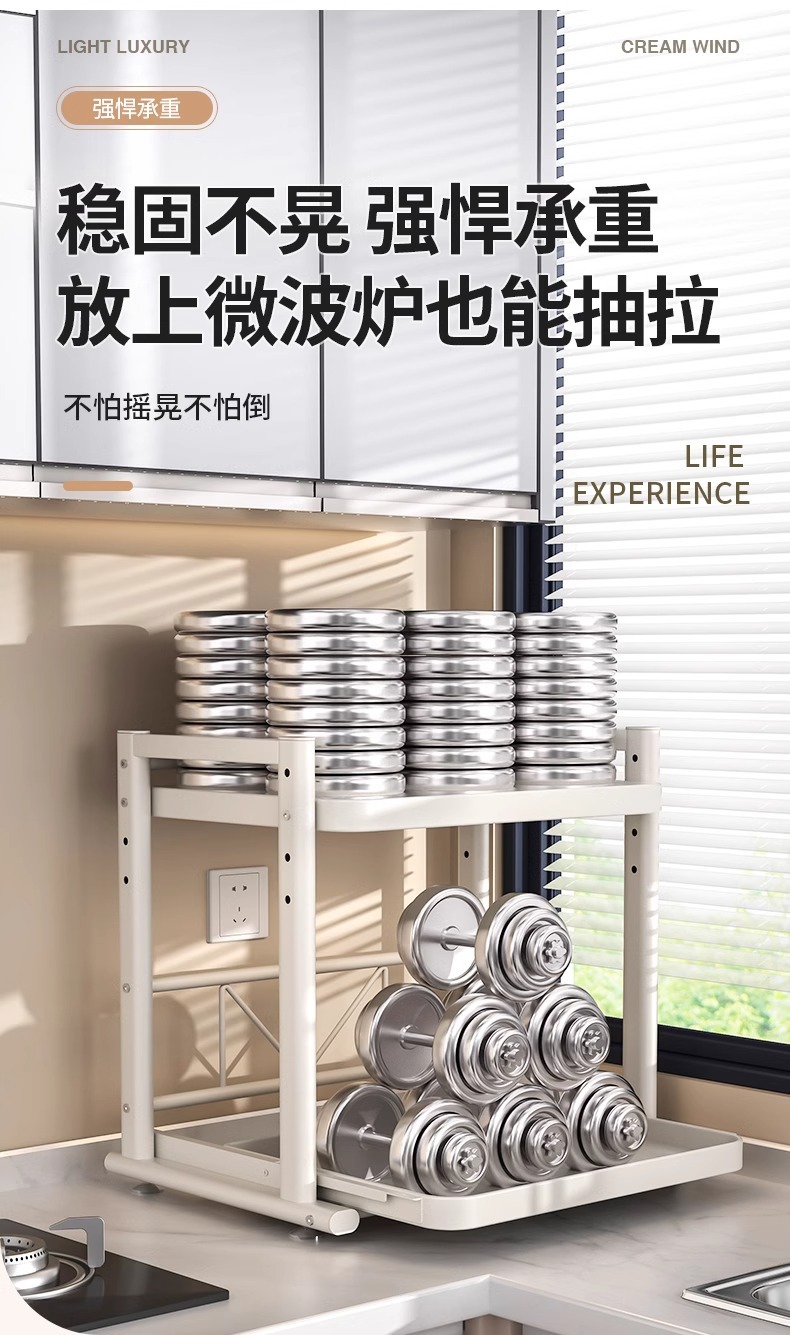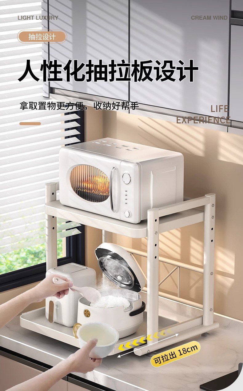 전자레인지 오븐 랙 스토리지 랙 풀 아웃 주방 전기 밥솥 카운터 탑 더블 레이어 다기능 전기 오븐 스토리지 랙