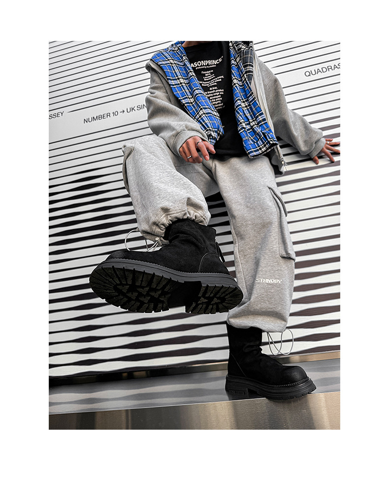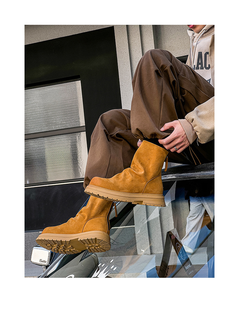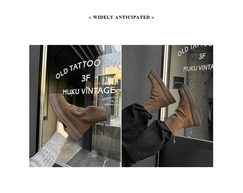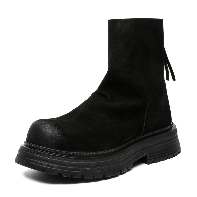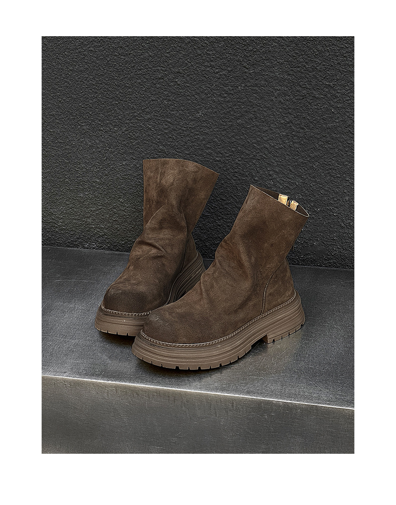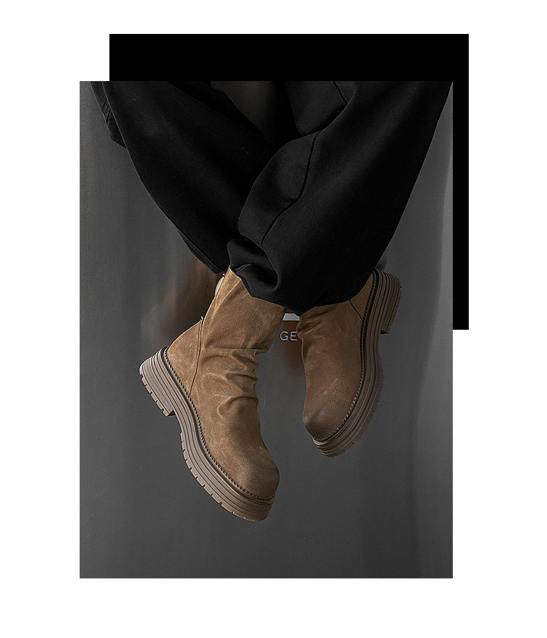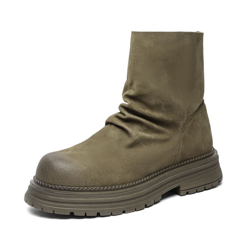 2024 가을 및 겨울 새로운 주름 디자인 짧은 부츠 후면 지퍼 라운드 컬러 닦는 반전 부츠 두꺼운 바닥 스크럽 기계 부츠
