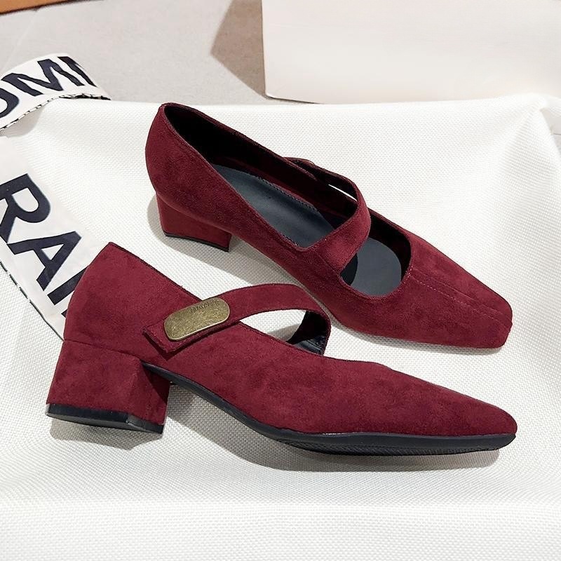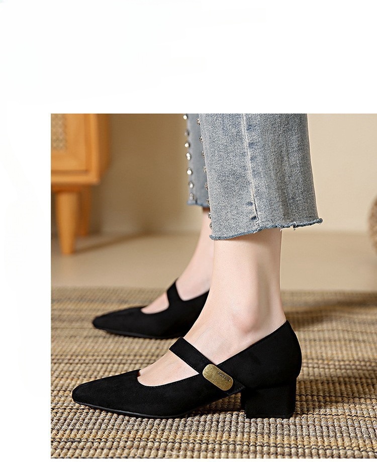 자이언트 화이트 메리 제인 싱글 레이어 신발 여성 두꺼운 힐 2024 새로운 스타일 스퀘어 토 편안한 여성 레트로 스타일 여성 신발스토어 가기