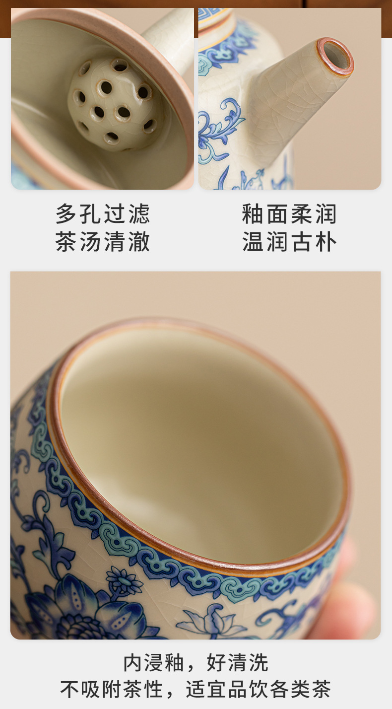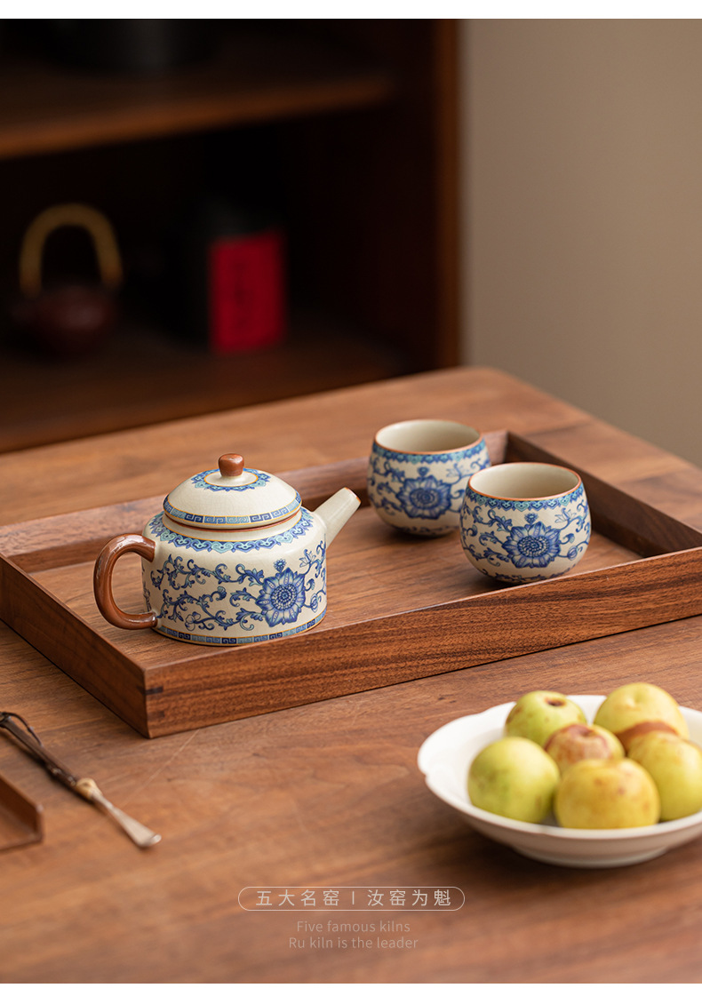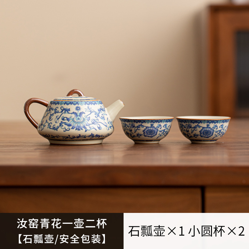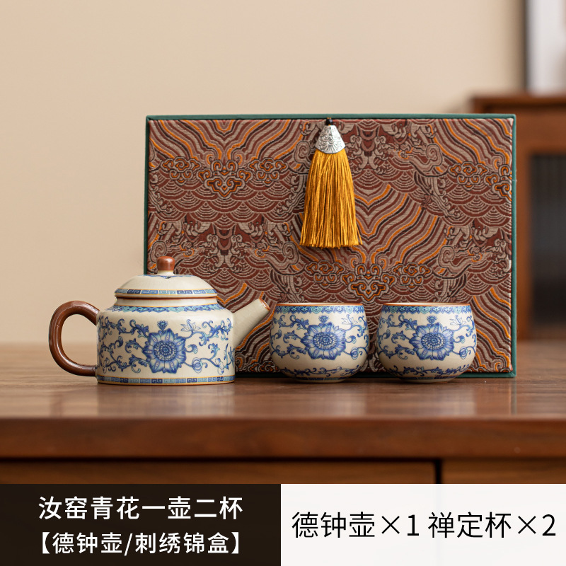 汝窑青花高档一壶二杯茶具套装茶壶送长辈领导朋友客户商务伴手礼