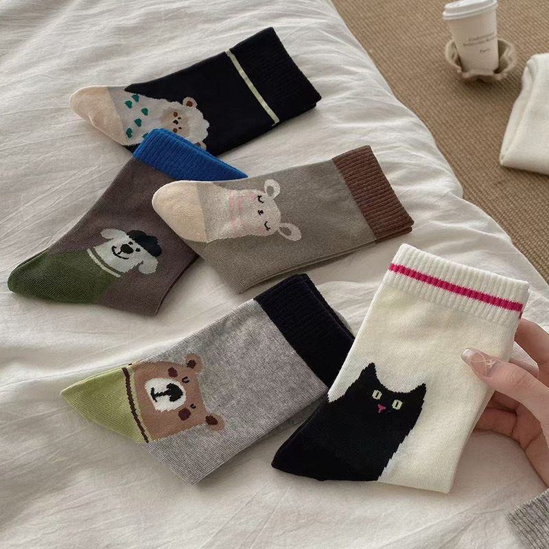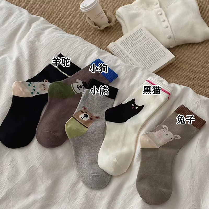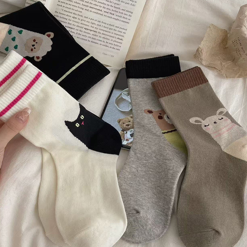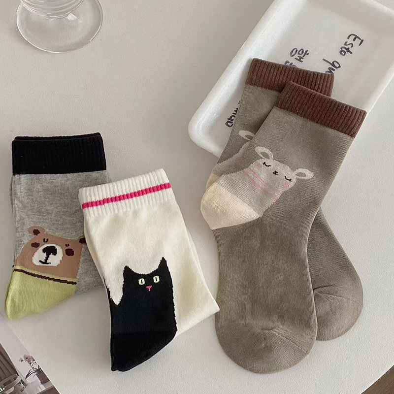 만화 키티 베어 힐 작은 동물 양말 여성 Ins 유행 일본 스타일 귀여운 가을과 겨울 대학 스타일 양말스토어 가기