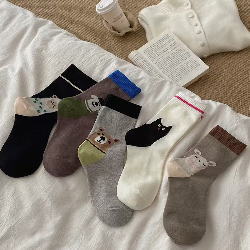 만화 키티 베어 힐 작은 동물 양말 여성 Ins 유행 일본 스타일 귀여운 가을과 겨울 대학 스타일 양말