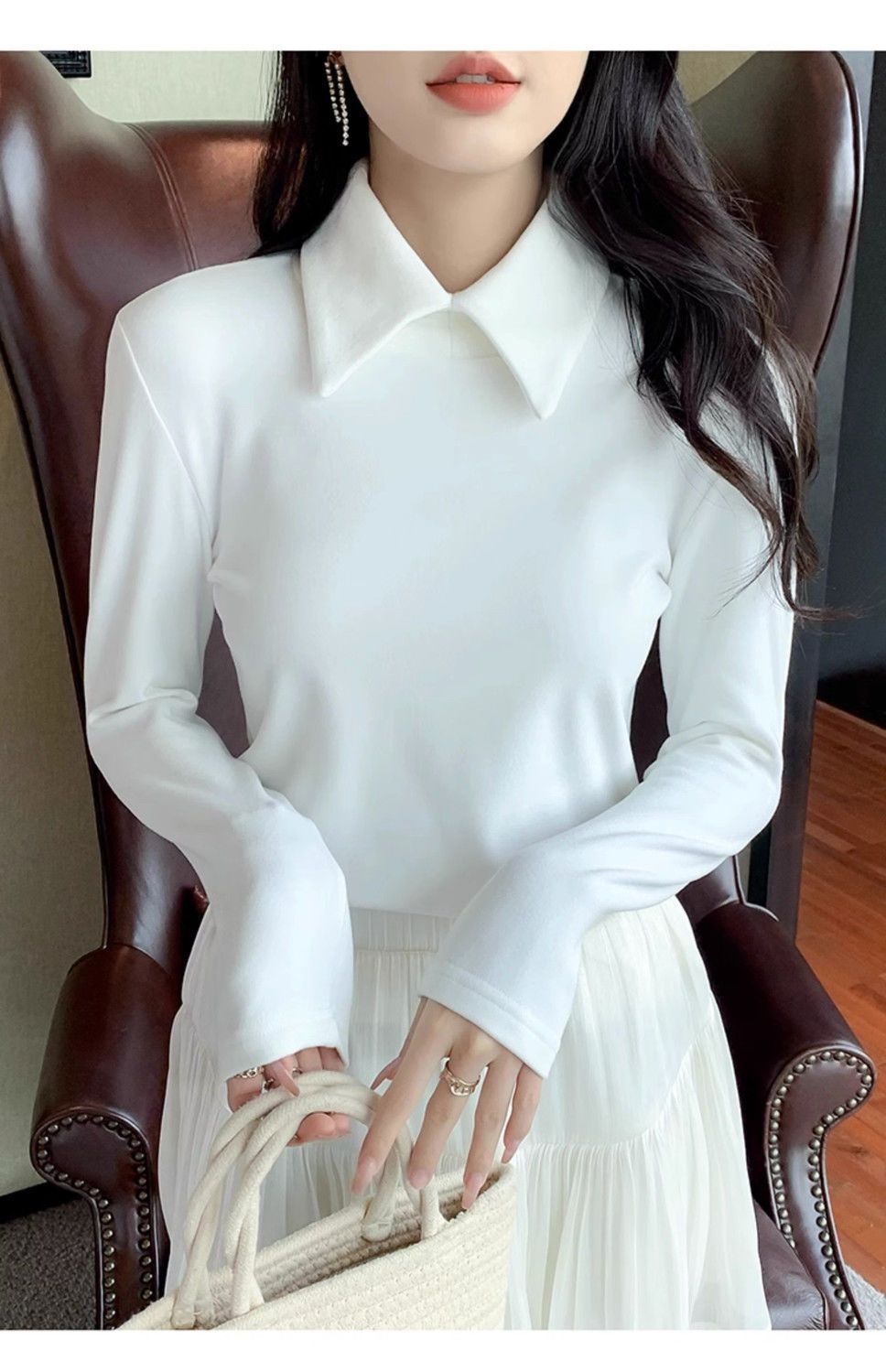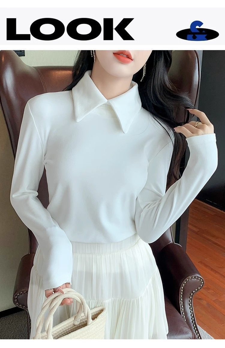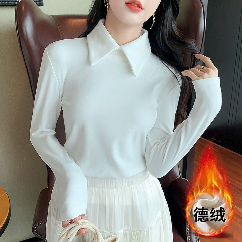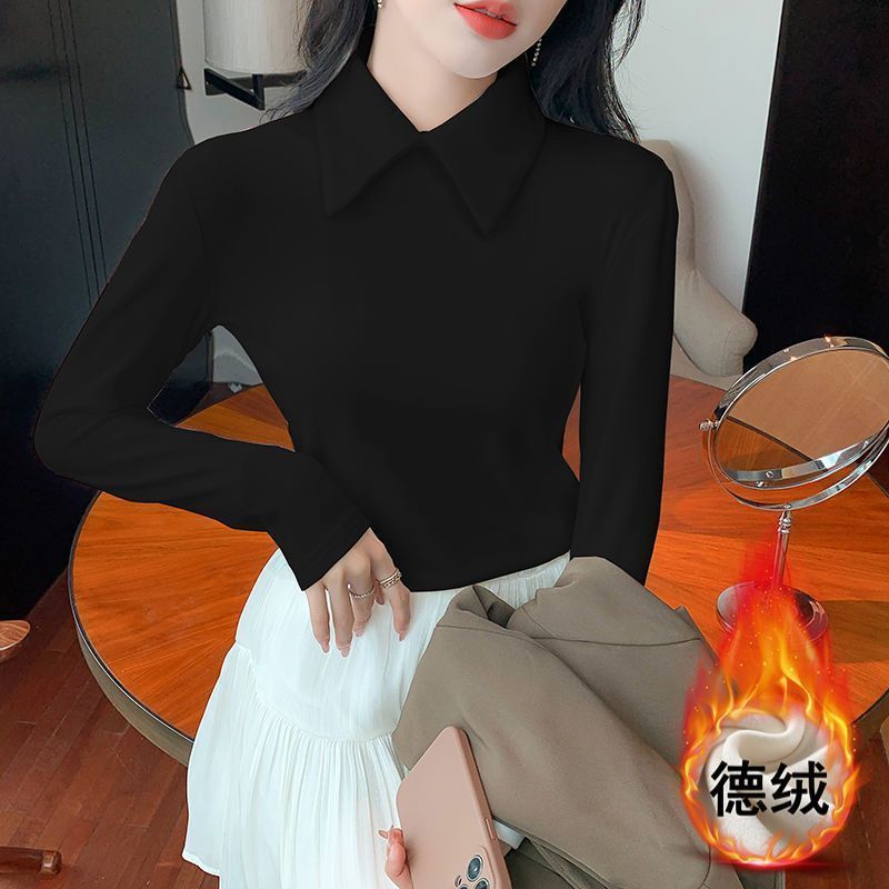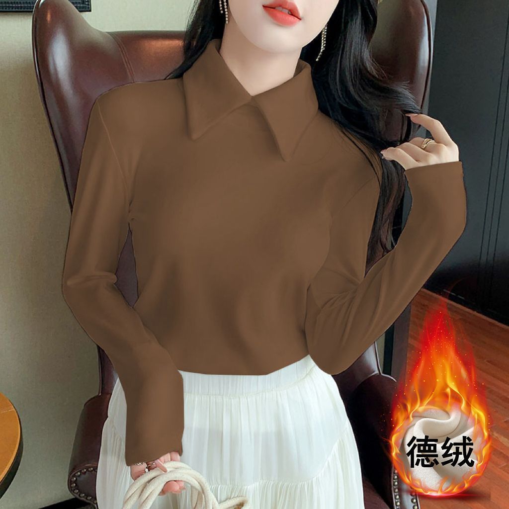 폴로 넥 양털베이스 셔츠 여성의 2024 가을 및 겨울 새 옷깃 셔츠 열 속옷 두껍게 자체 난방 탑스토어 가기