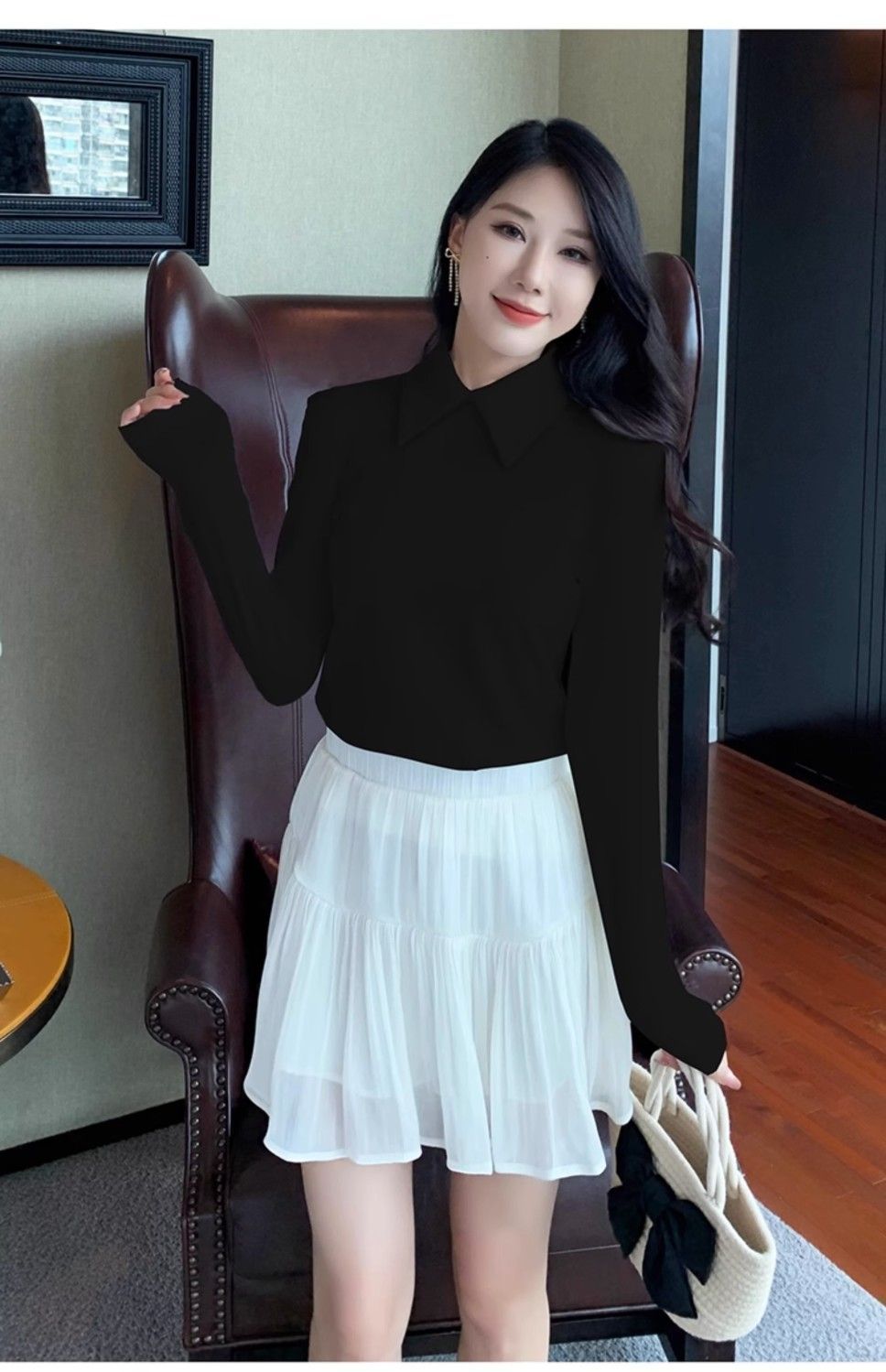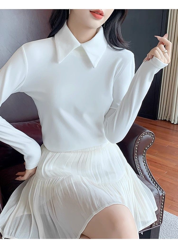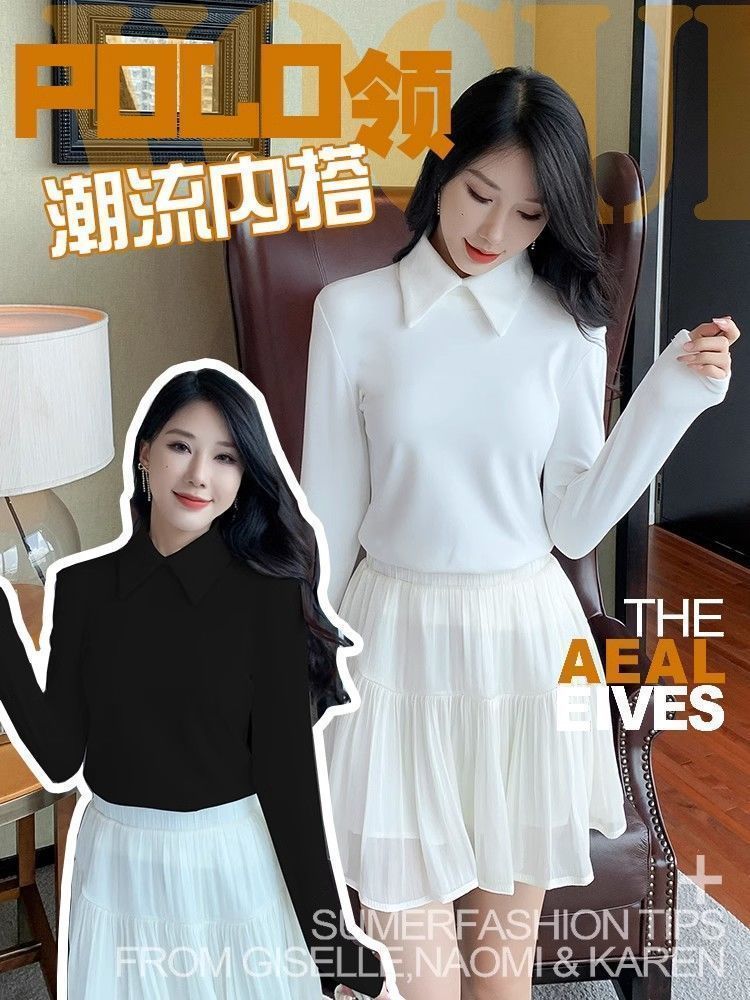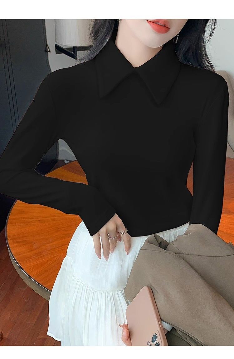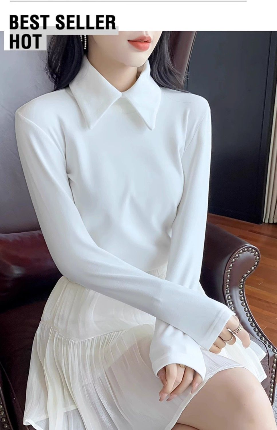 폴로 넥 양털베이스 셔츠 여성의 2024 가을 및 겨울 새 옷깃 셔츠 열 속옷 두껍게 자체 난방 탑스토어 가기