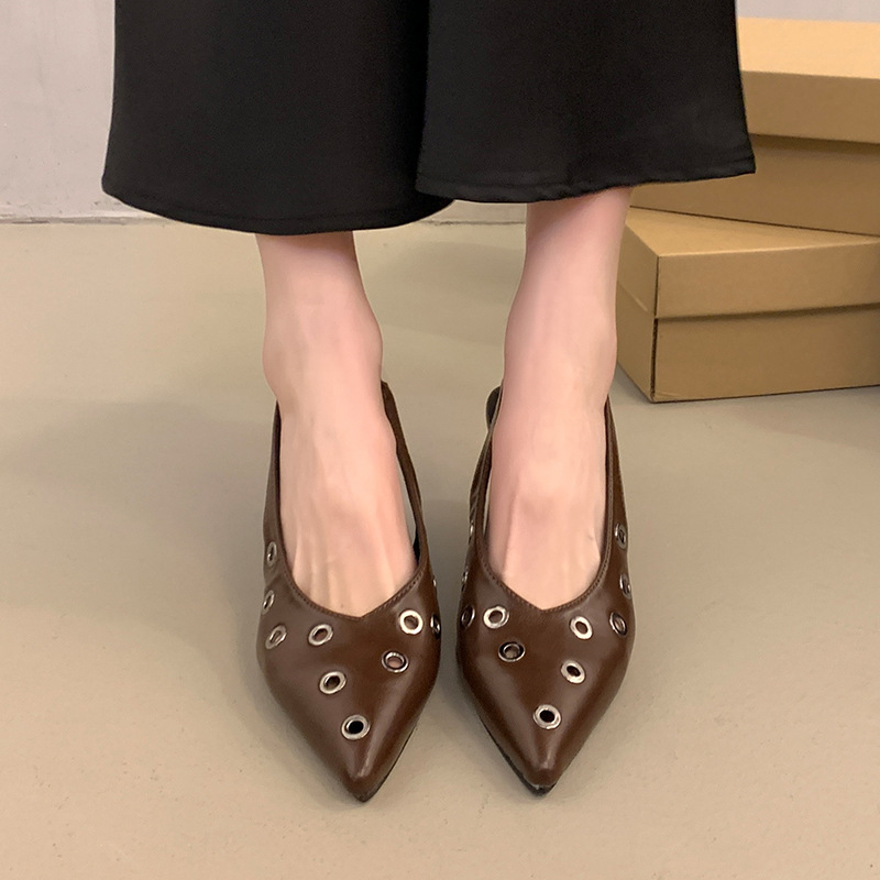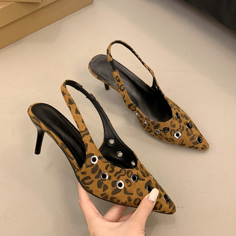 대외 무역 국경 새로운 2024 가을 뾰족한 얇은 굽 레오파드 무늬 싱글 신발 패션 여성 신발 한국 스타일 하이힐 통기성 싱글 신발스토어 가기