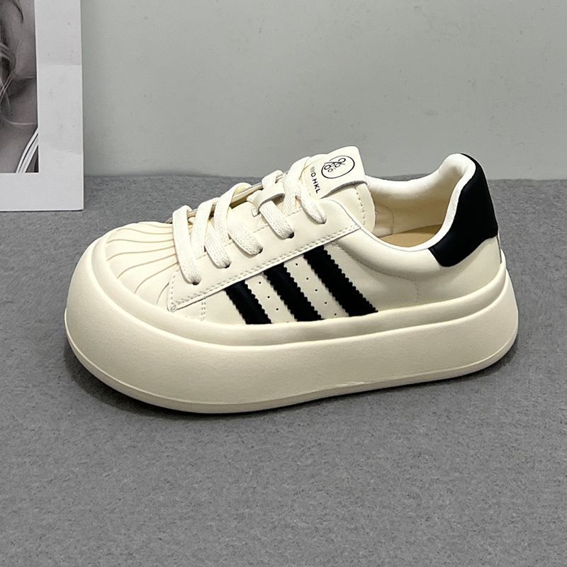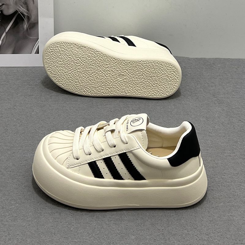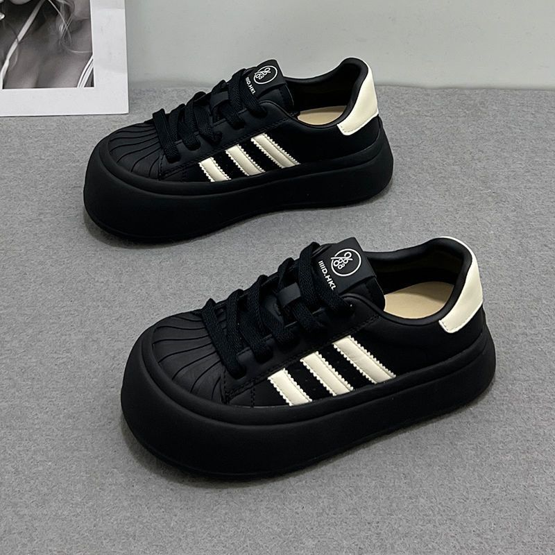 쉘 헤드 블랙 스니커즈 여성용 2025 여름 신상 라운드 토 두꺼운 밑창 캐주얼 팬더 슈즈 빅 토 인형 신발스토어 가기