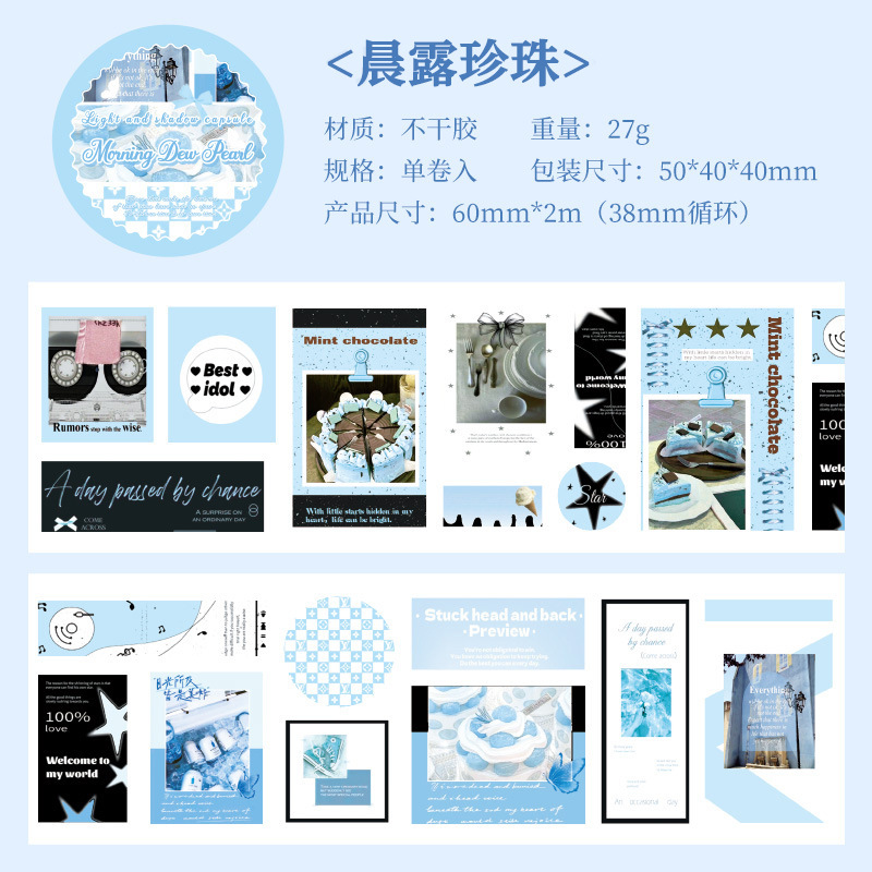 빛과 그림자 캡슐 투명 방수 애완 동물 테이프 DIY 손 계정 일기 장식 스티커 국경 간 복고풍 조경 손 계정 스티커