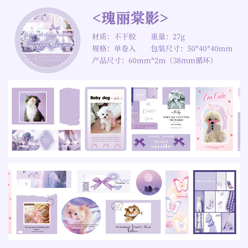 빛과 그림자 캡슐 투명 방수 애완 동물 테이프 DIY 손 계정 일기 장식 스티커 국경 간 복고풍 조경 손 계정 스티커스토어 가기