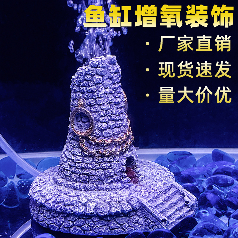 물고기 탱크 풍경 장식 수지 시뮬레이션 산소 굴뚝 장식품 창조적 인 수족관 세트 워터 펌프 액세서리스토어 가기
