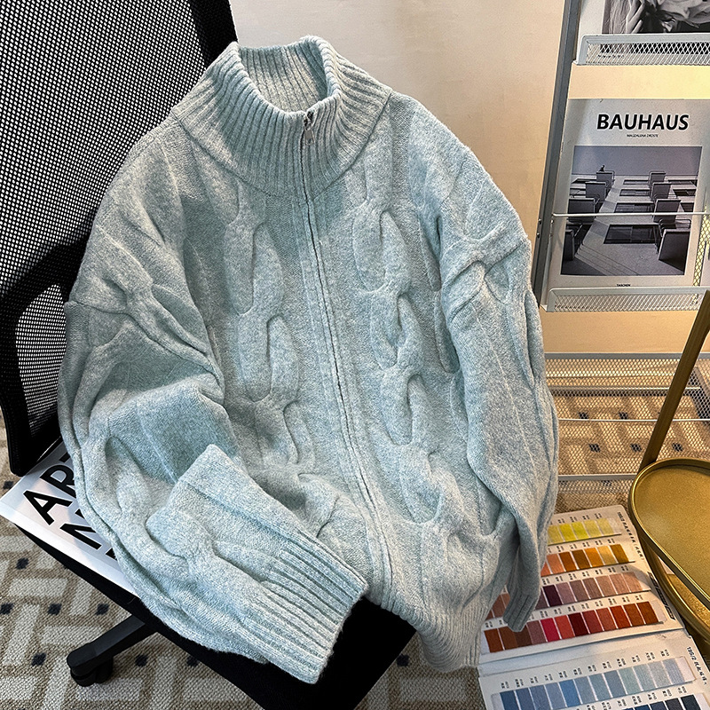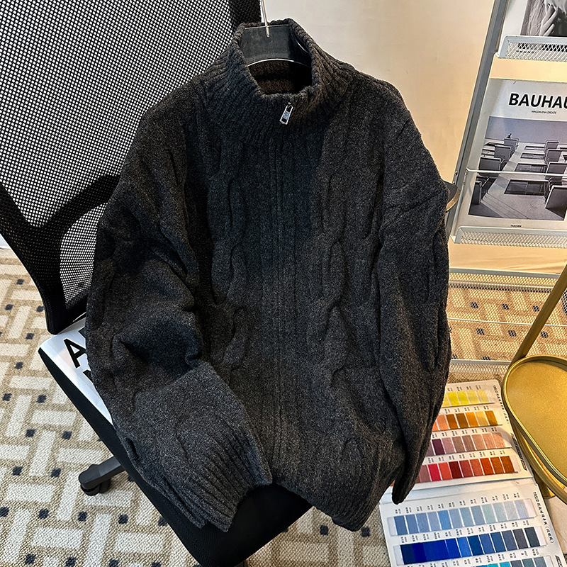게으른 스타일 수직 칼라 트위스트 스웨터 코트 남자 가을 2025 새로운 느슨한 올 매치 니트 카디건 탑스토어 가기