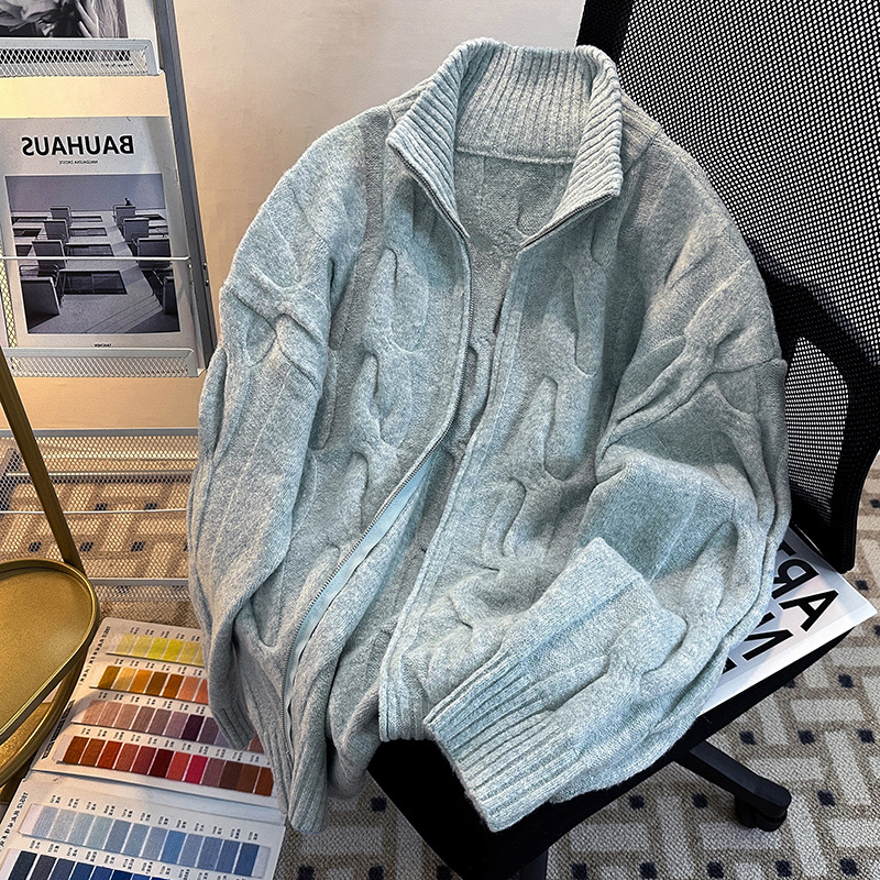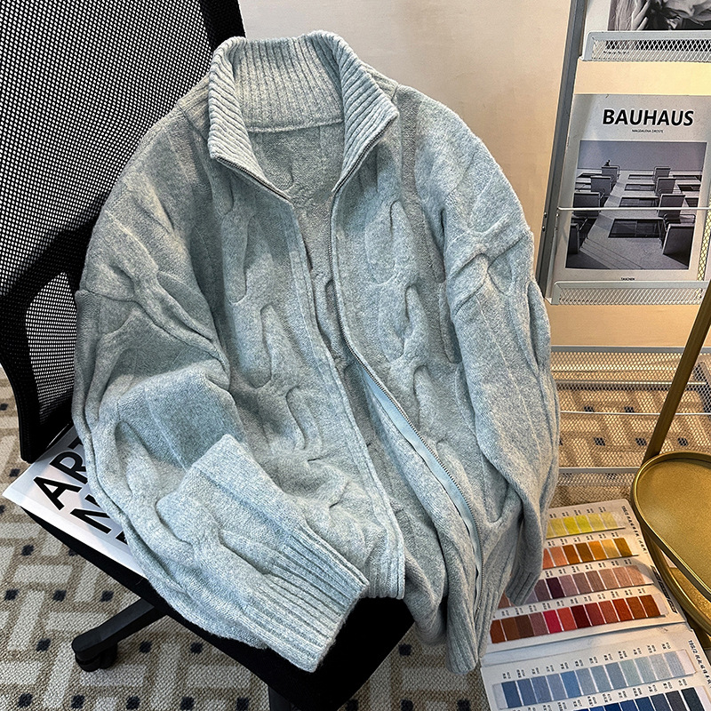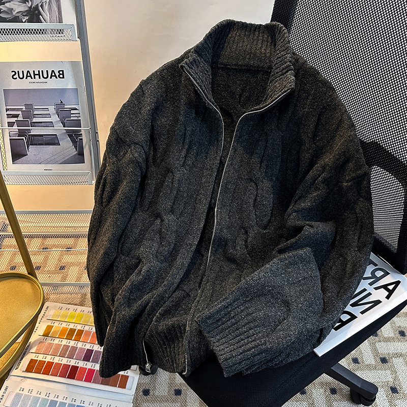 게으른 스타일 수직 칼라 트위스트 스웨터 코트 남자 가을 2025 새로운 느슨한 올 매치 니트 카디건 탑