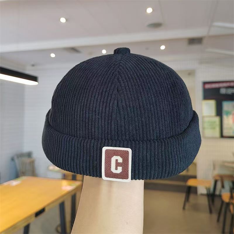 • 블랙-코듀로이 C 로고 집주인 모자