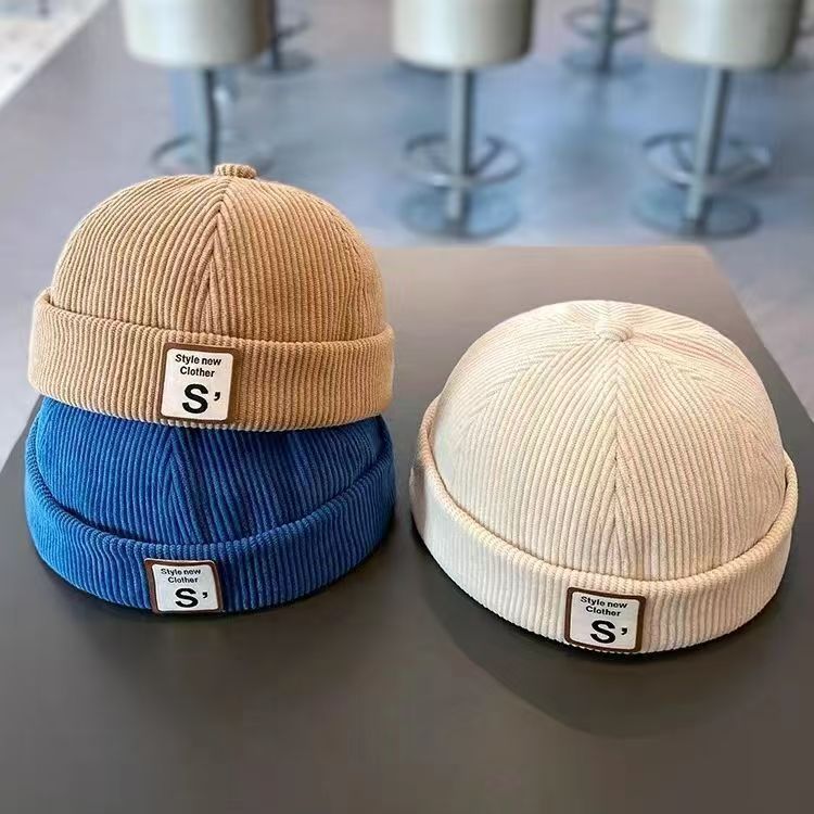 어린이 코듀로이 집주인 모자 성격 문자 라벨 Yapi 빈티지 형 모자 소년 소녀 아기 멜론 가죽 모자스토어 가기