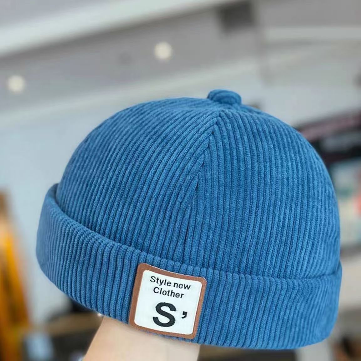 • 블루 코듀로이 S 로고 집주인 모자