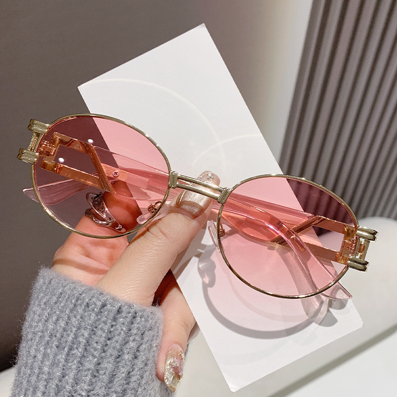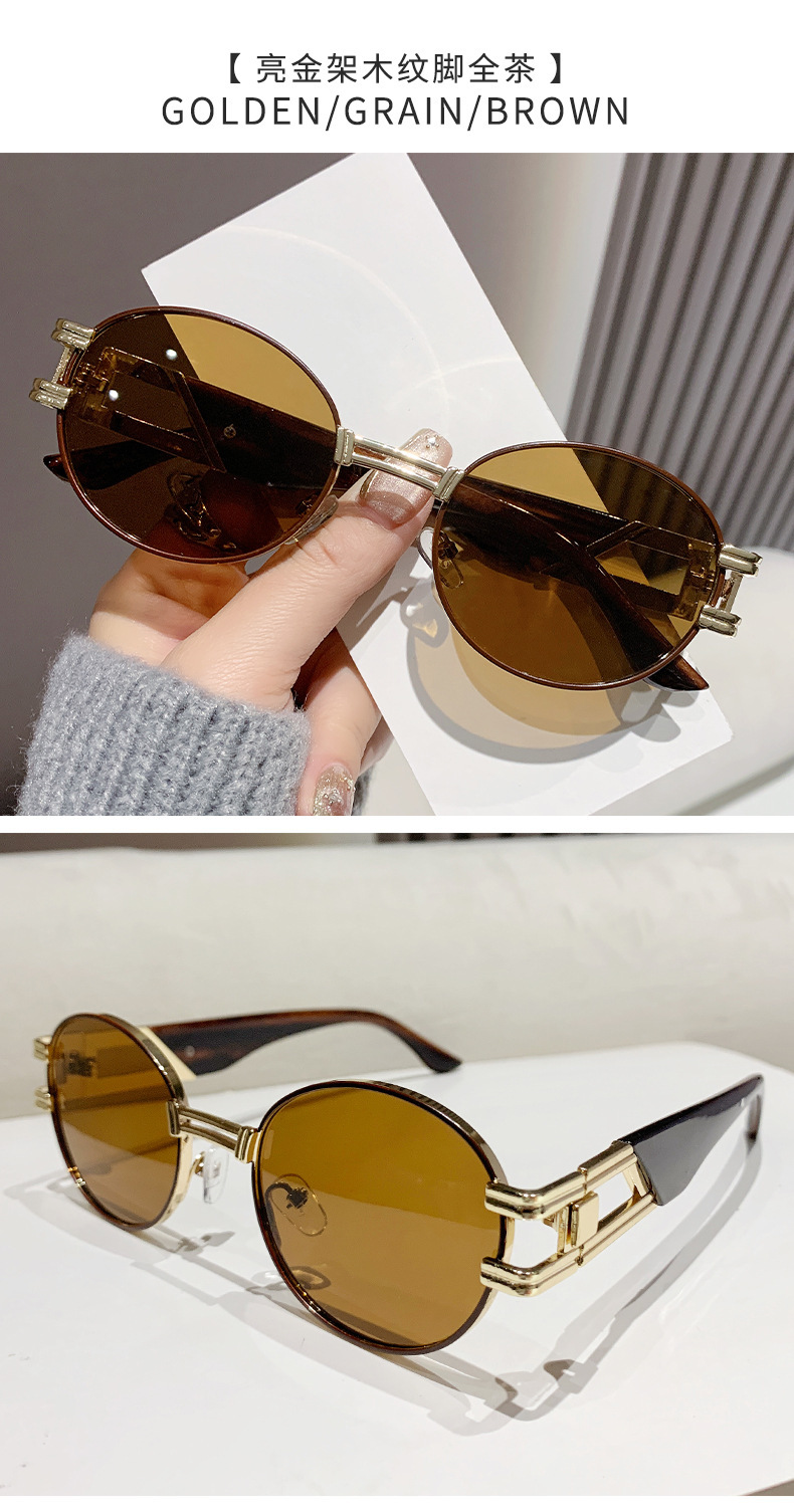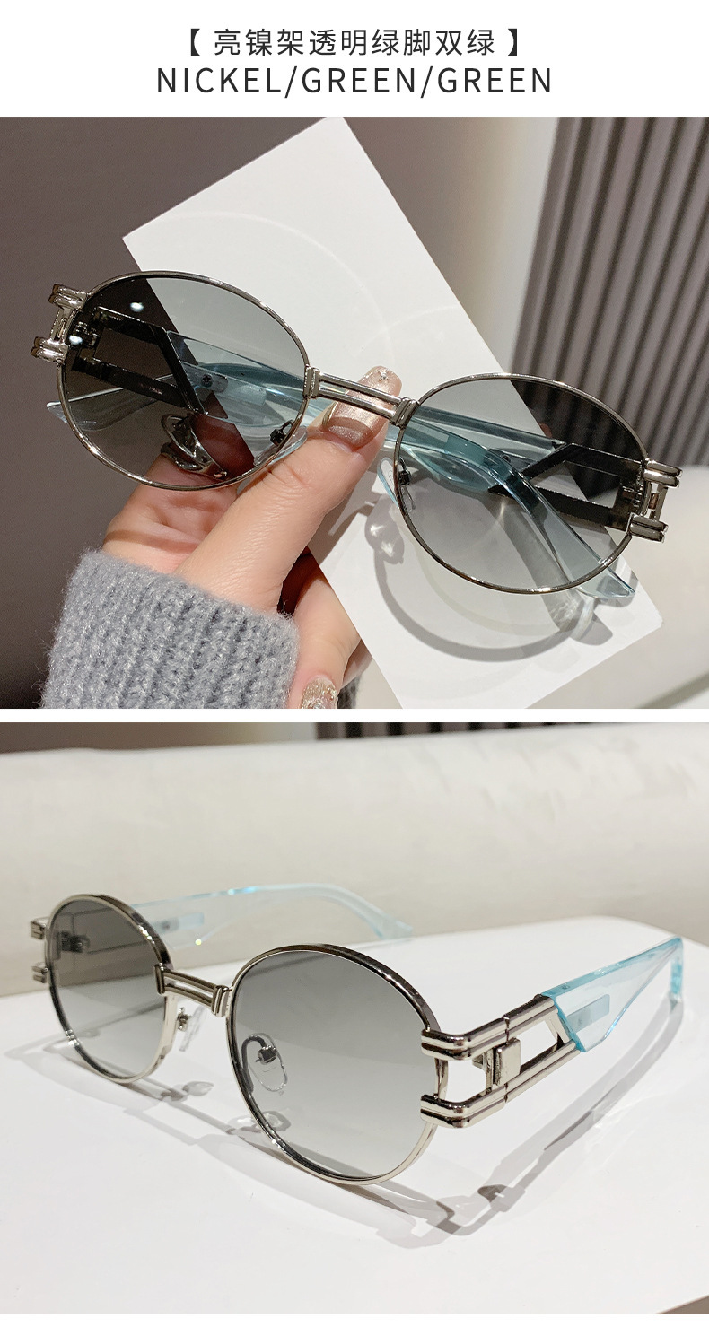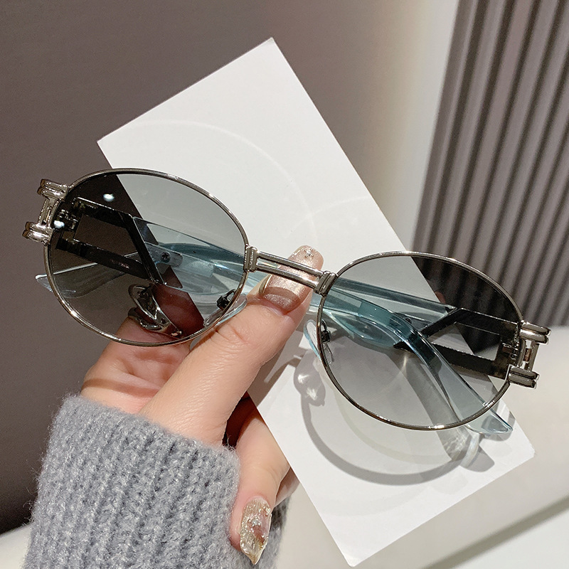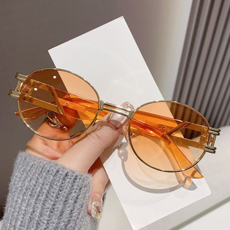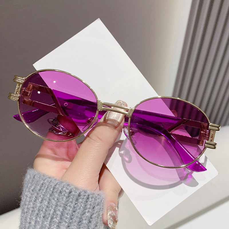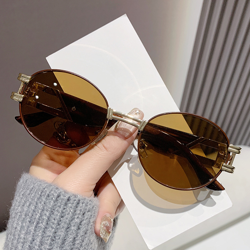국경 간 새로운 유럽과 미국의 레트로 타원형 작은 프레임 선글라스 패션 금속 트렌드 선글라스 모든 경기 선샤드 선스크린 거울
