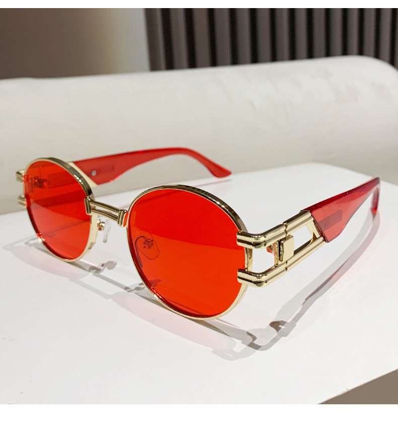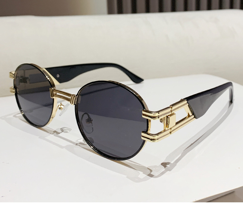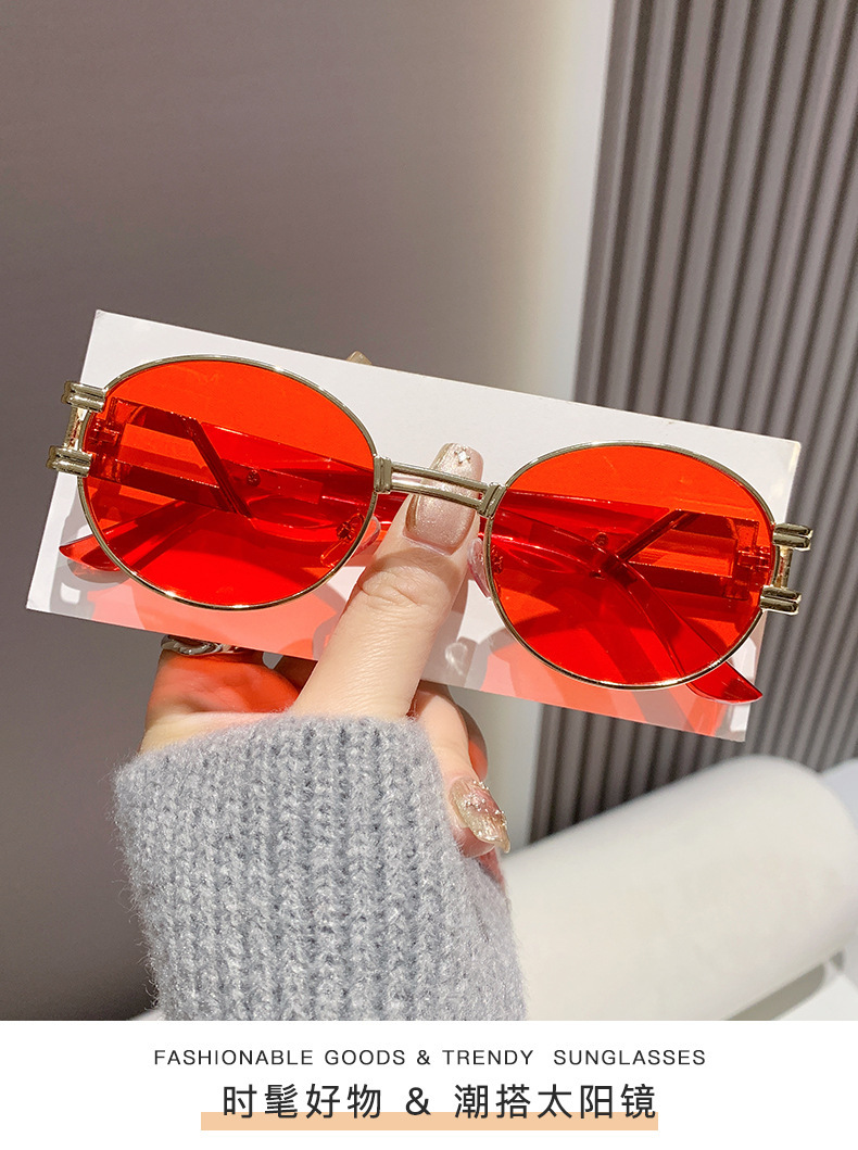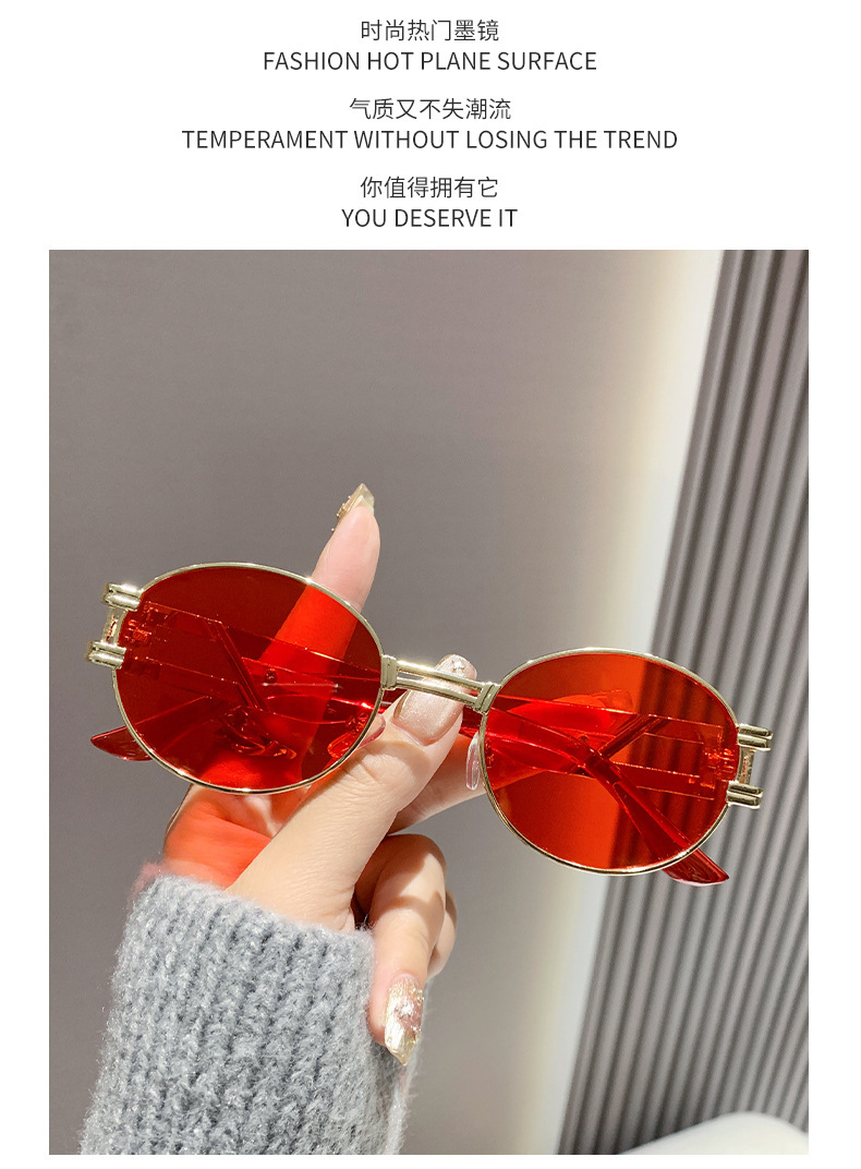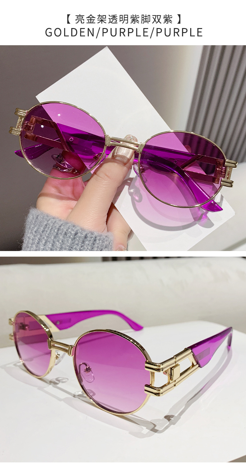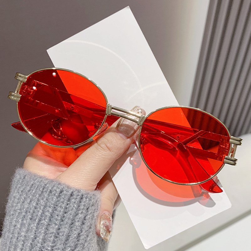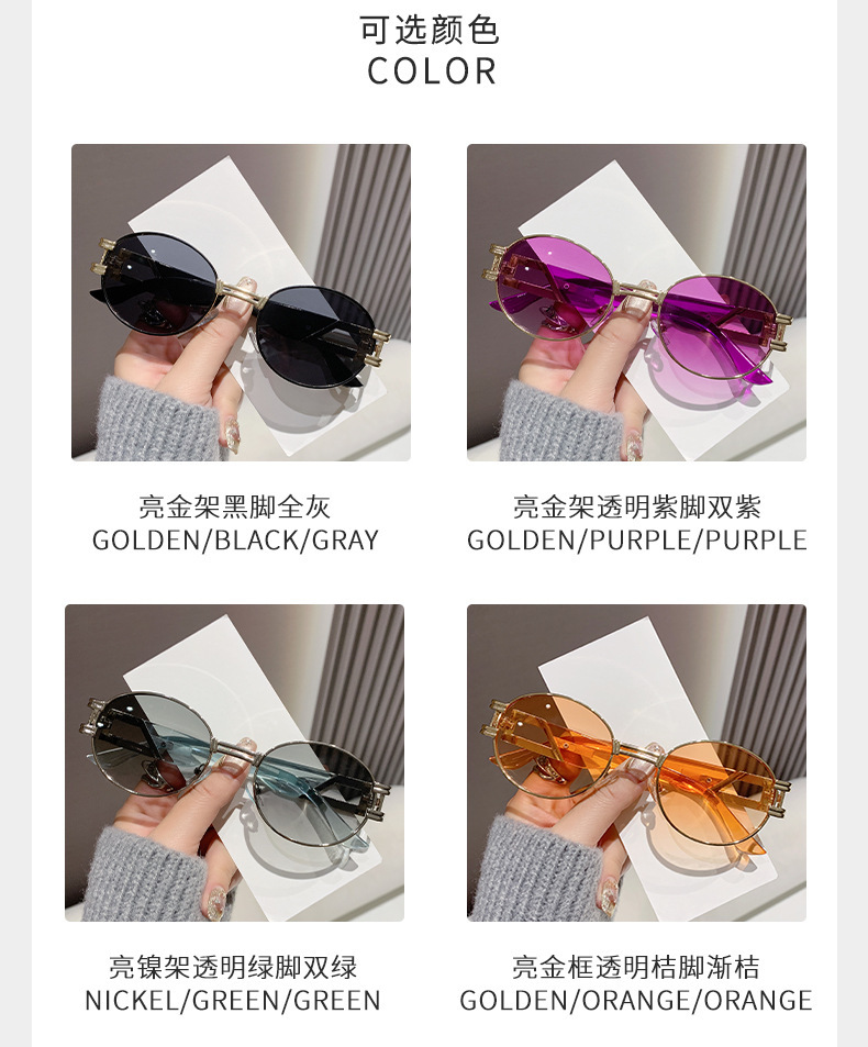 국경 간 새로운 유럽과 미국의 레트로 타원형 작은 프레임 선글라스 패션 금속 트렌드 선글라스 모든 경기 선샤드 선스크린 거울