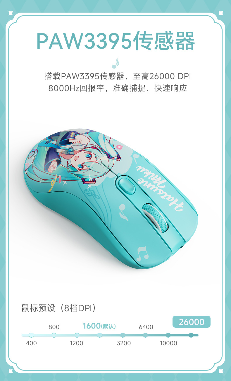 AKKO Hakuyin 미래 공동 마우스 3 모드 8K 게임 오피스 범용 무선 블루투스 인체 공학 마우스