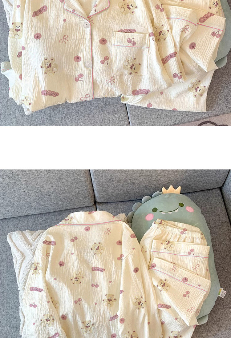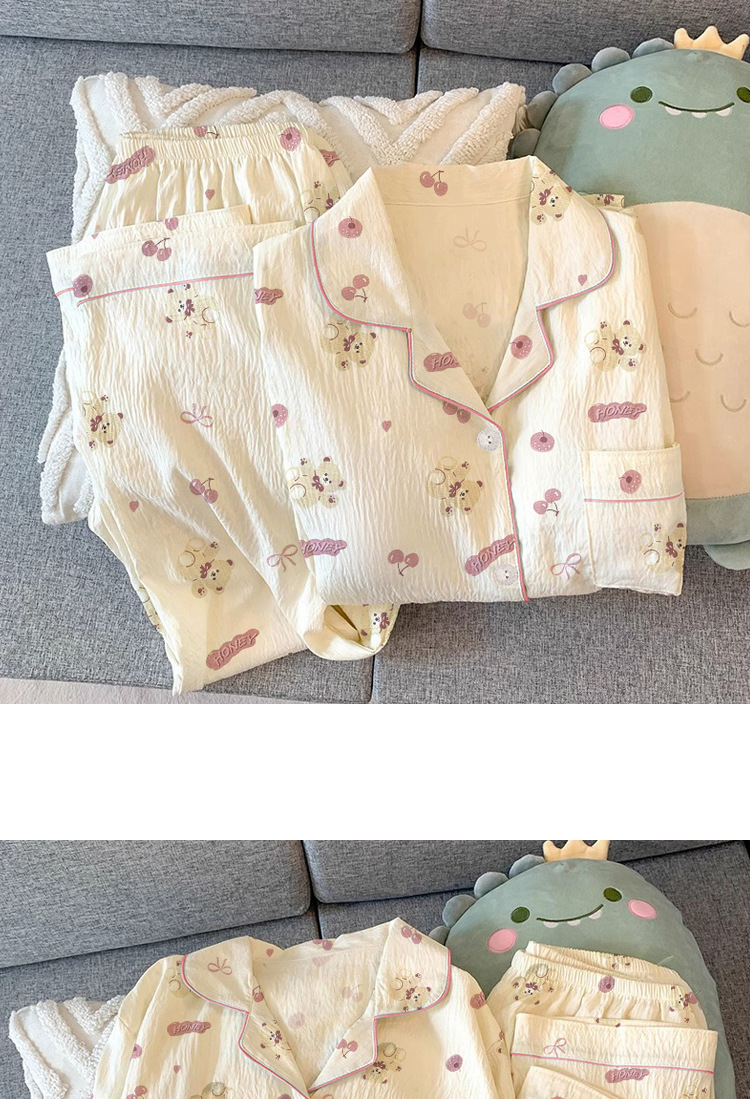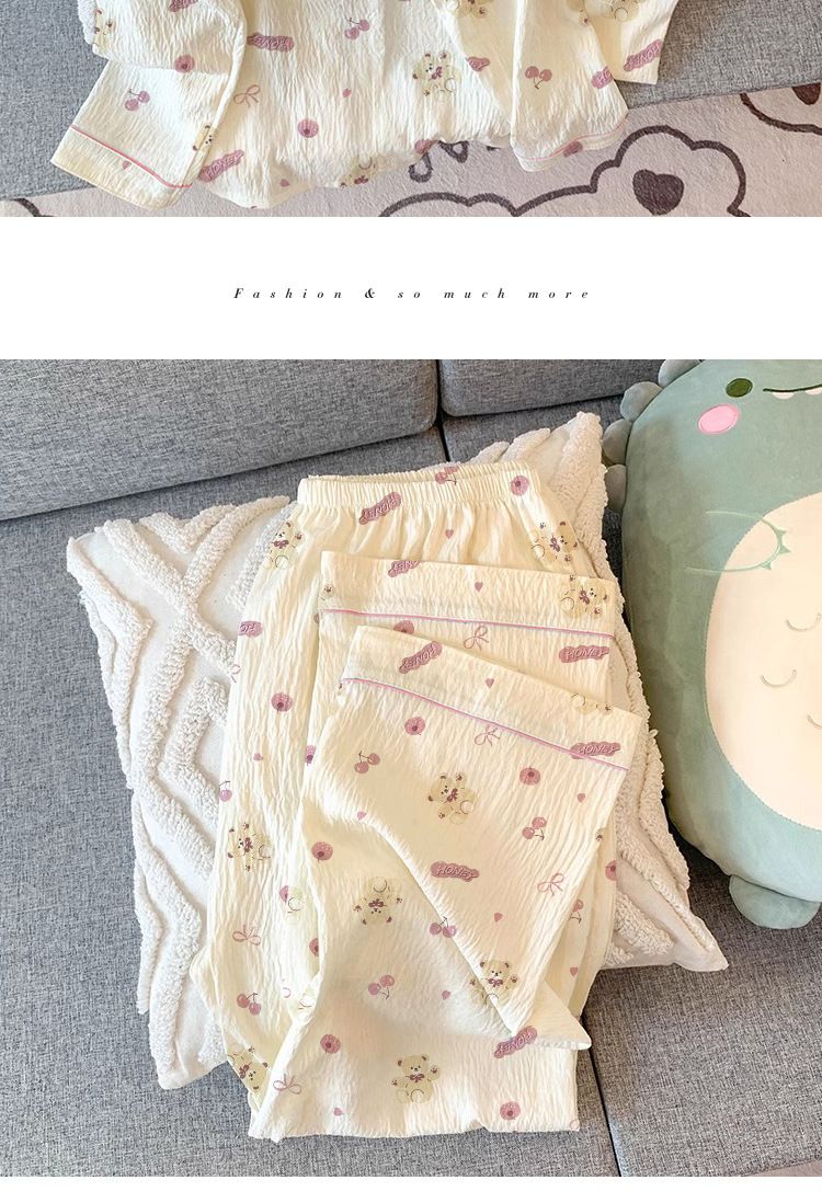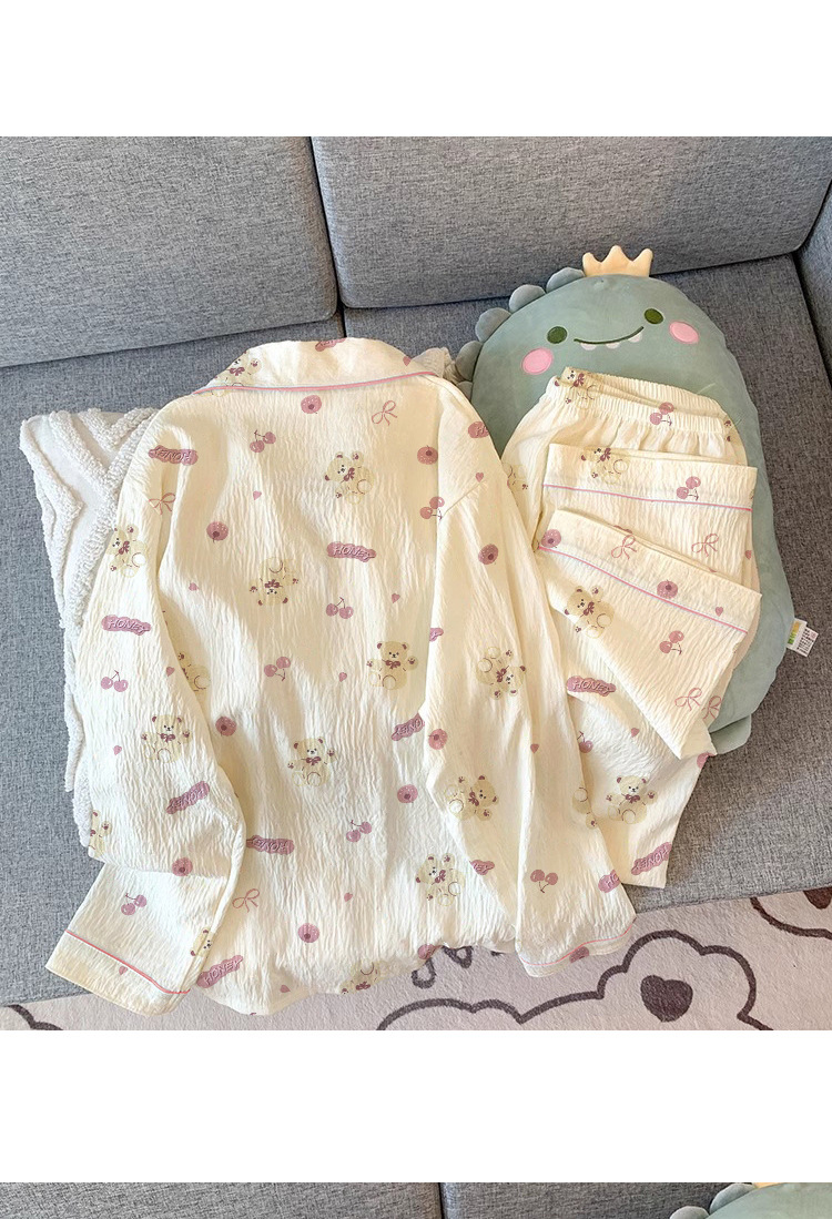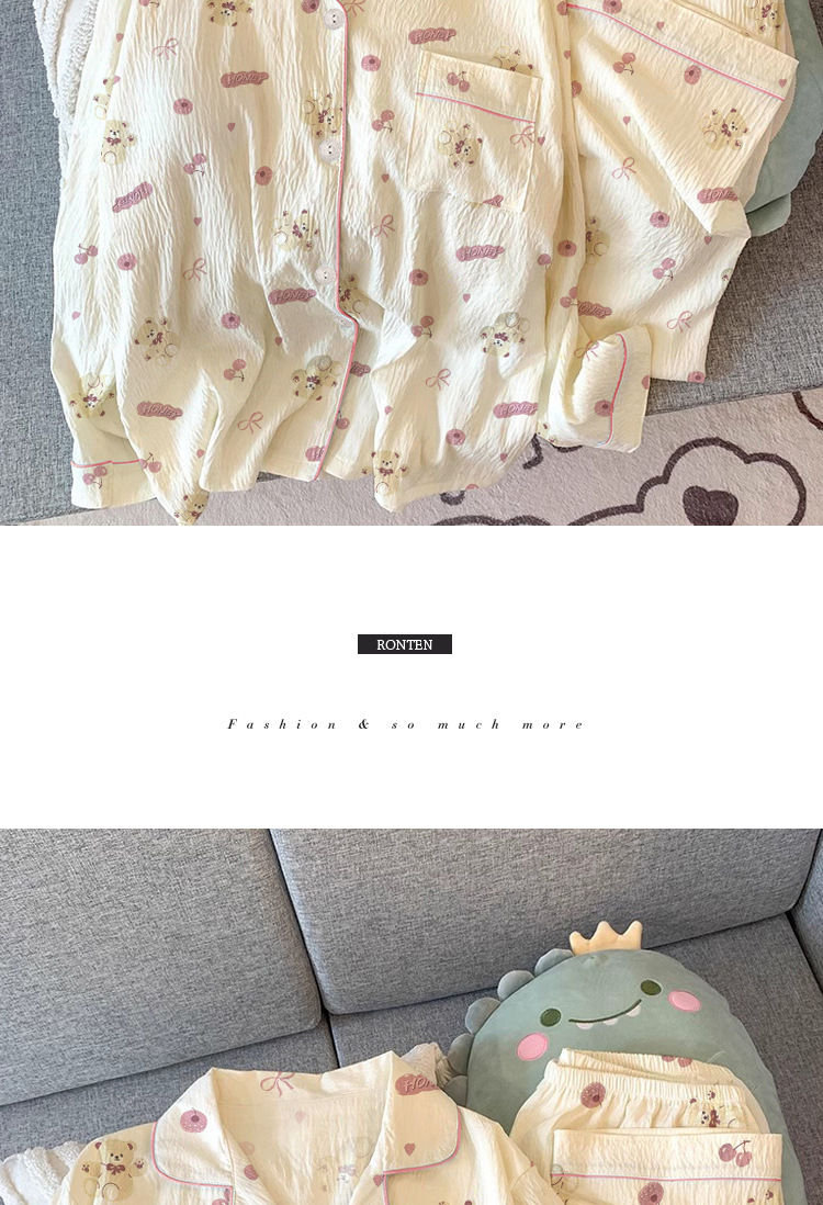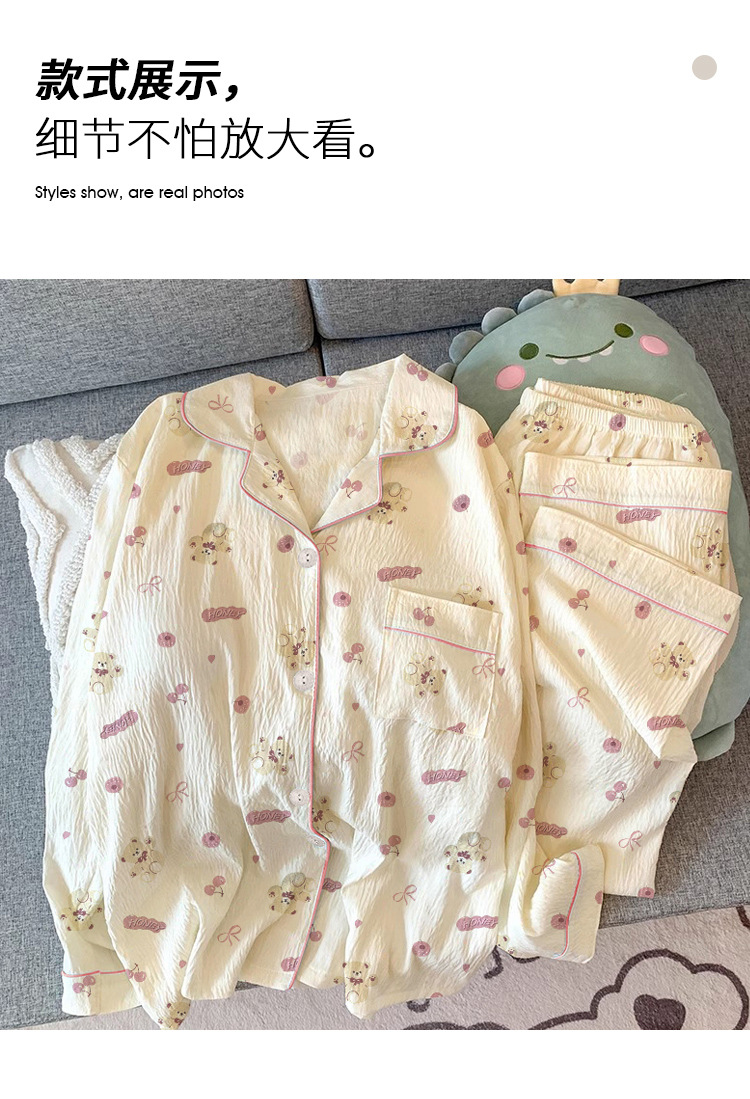 소녀 체리 베어 잠옷 여성용 봄 신상품 카라 오픈 셔츠 캐주얼 편안한 홈웨어 세트 실사 도매