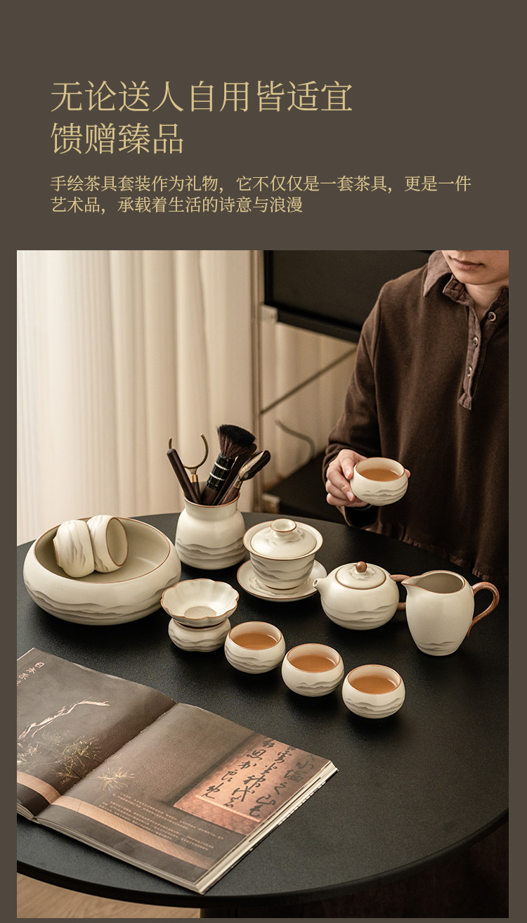 Shuang Yu Ru Kiln Kung Fu 차 세트 세트 홈 오피스 방문 2024 새로운 세라믹 커버 볼 티 컵 주전자