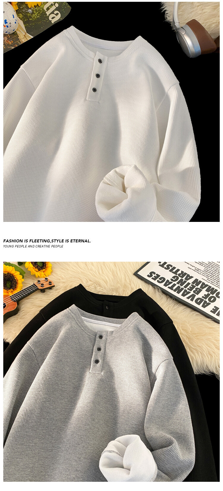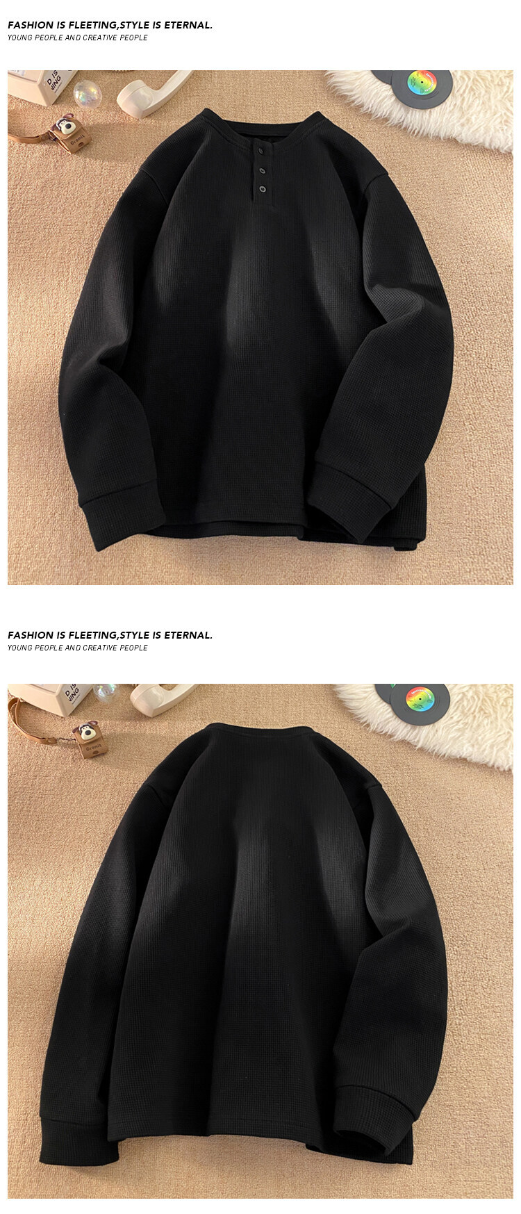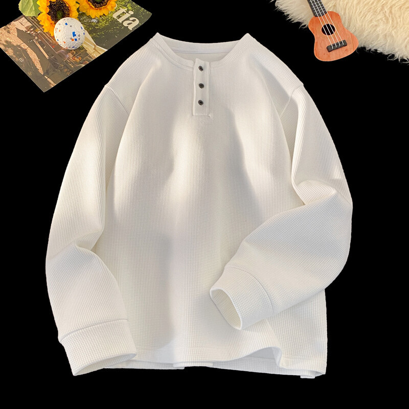 와플릭 긴팔 티셔츠 일본 레트로 소년 가을과 겨울 기모 두꺼운 느슨한 플러스 사이즈 베이스 셔츠스토어 가기