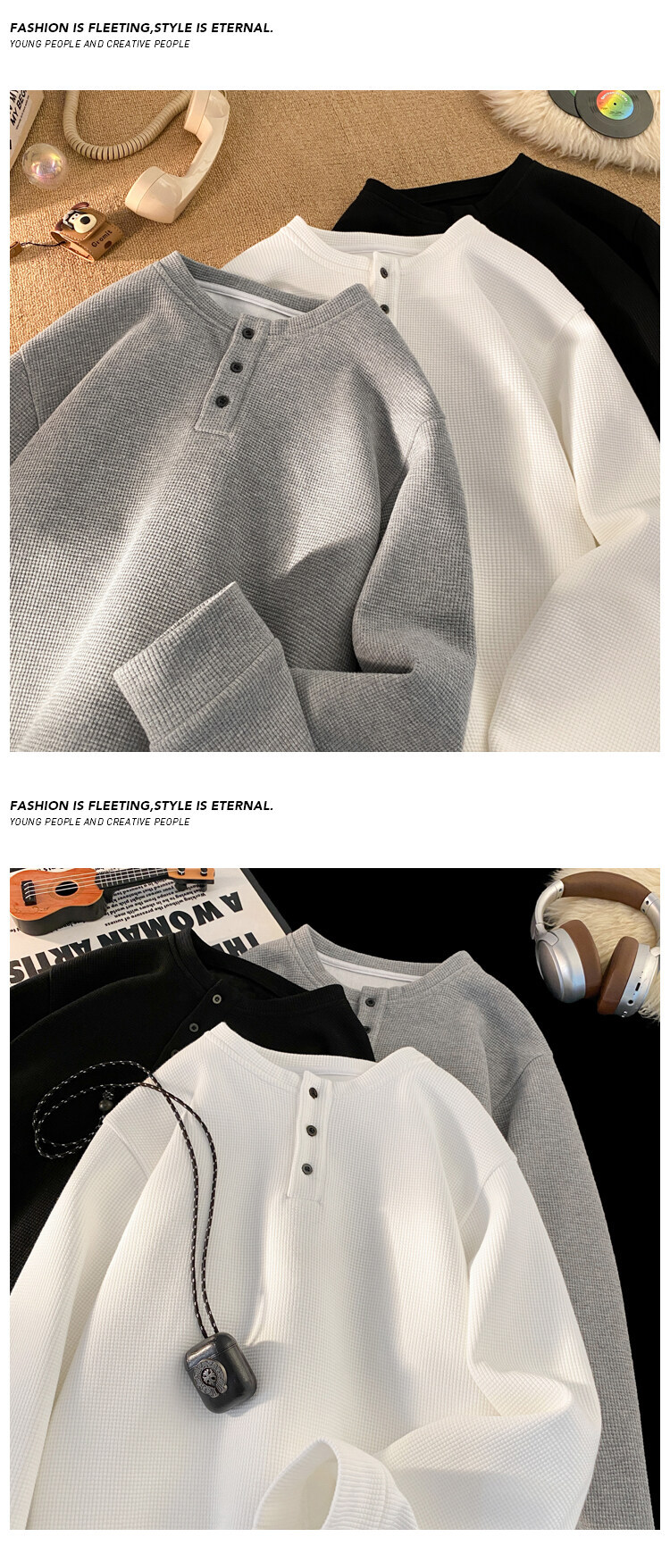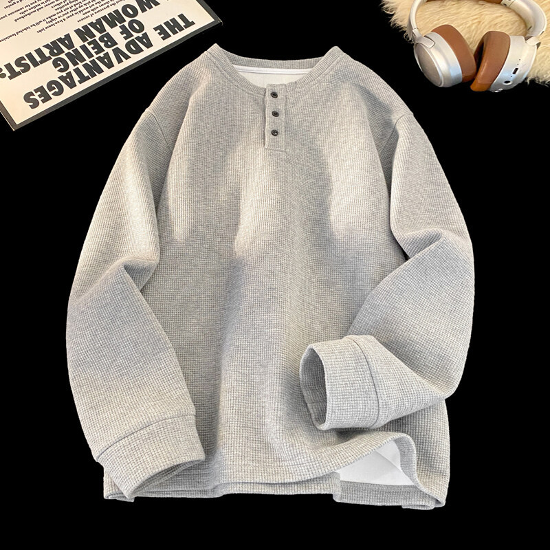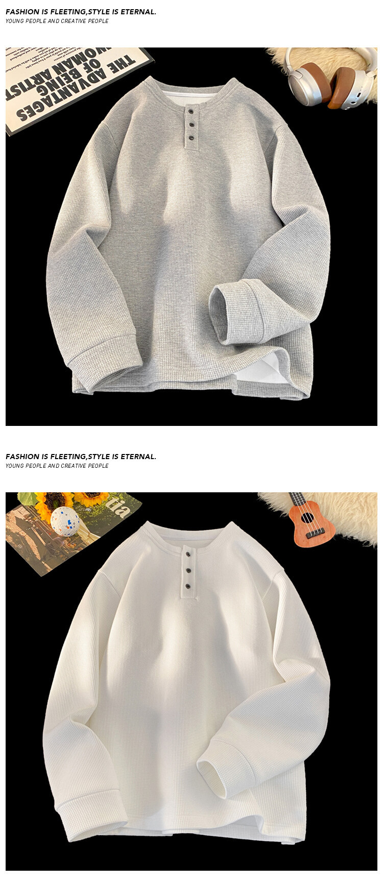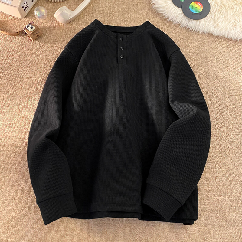 와플릭 긴팔 티셔츠 일본 레트로 소년 가을과 겨울 기모 두꺼운 느슨한 플러스 사이즈 베이스 셔츠스토어 가기