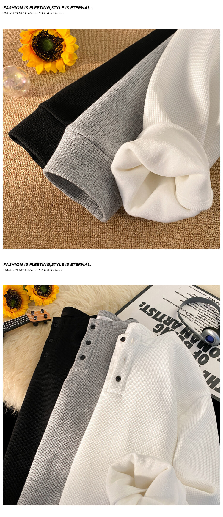 와플릭 긴팔 티셔츠 일본 레트로 소년 가을과 겨울 기모 두꺼운 느슨한 플러스 사이즈 베이스 셔츠
