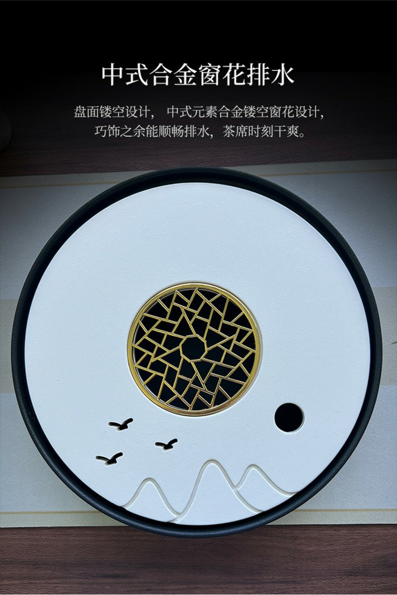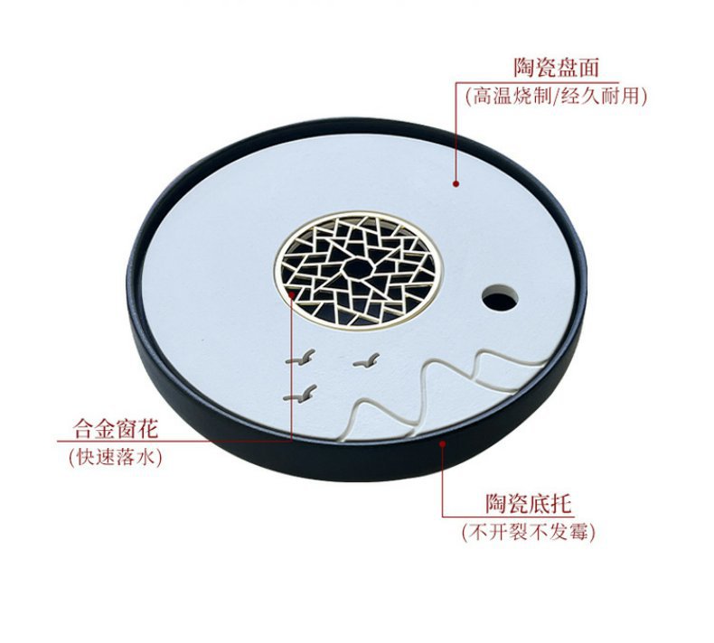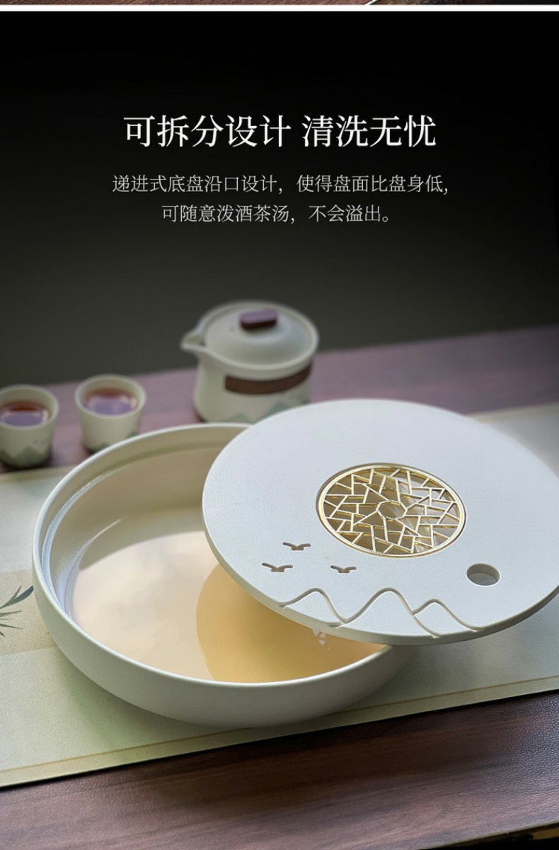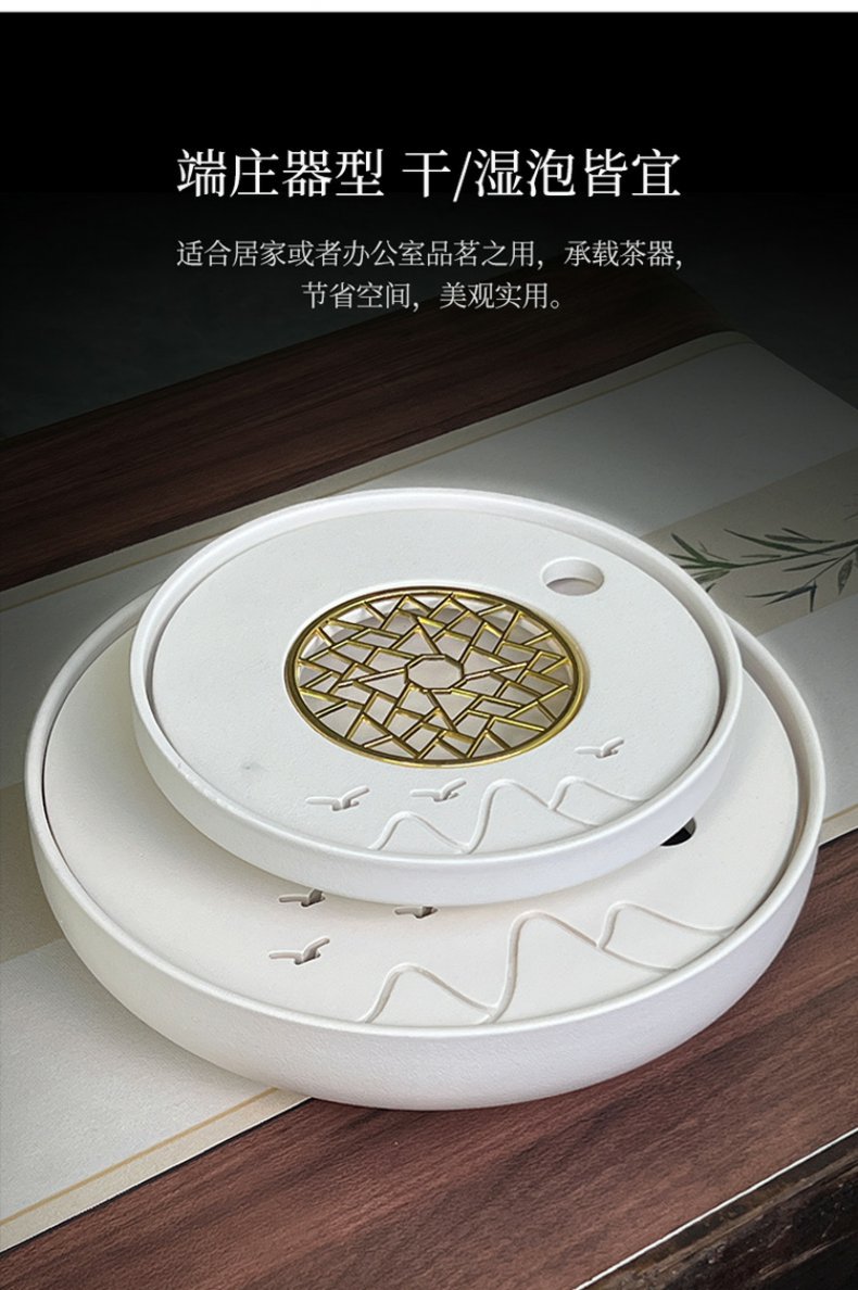 圆形陶瓷茶盘家用办公客会复古储水功夫茶具托盘小型干泡茶台