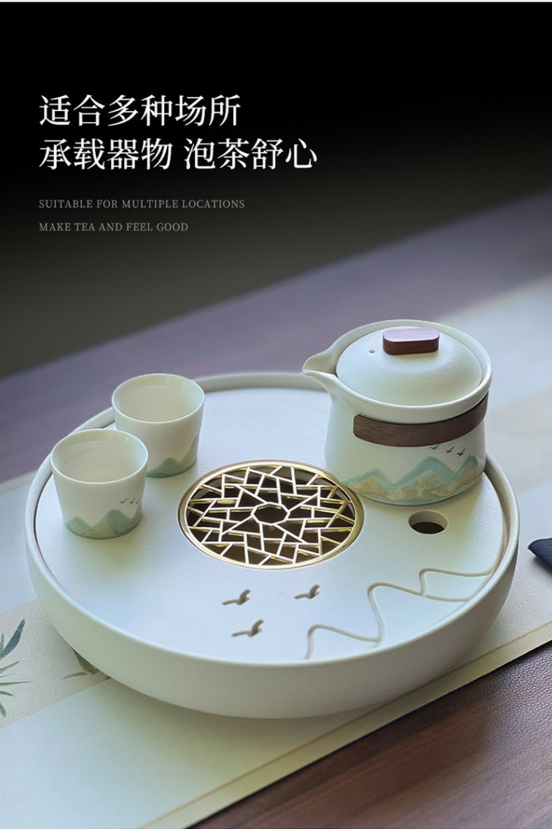 둥근 세라믹 차 트레이 홈 오피스 게스트 회의 복고풍 물 저장 쿵푸 차 세트 트레이 작은 건조 양조 차 테이블스토어 가기