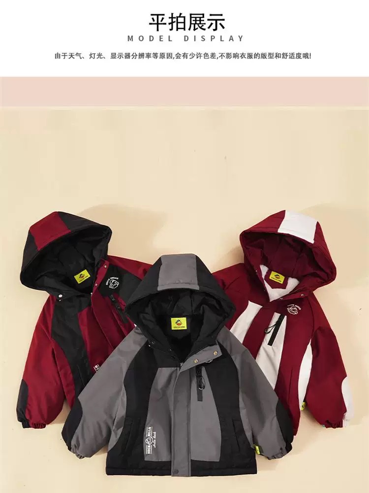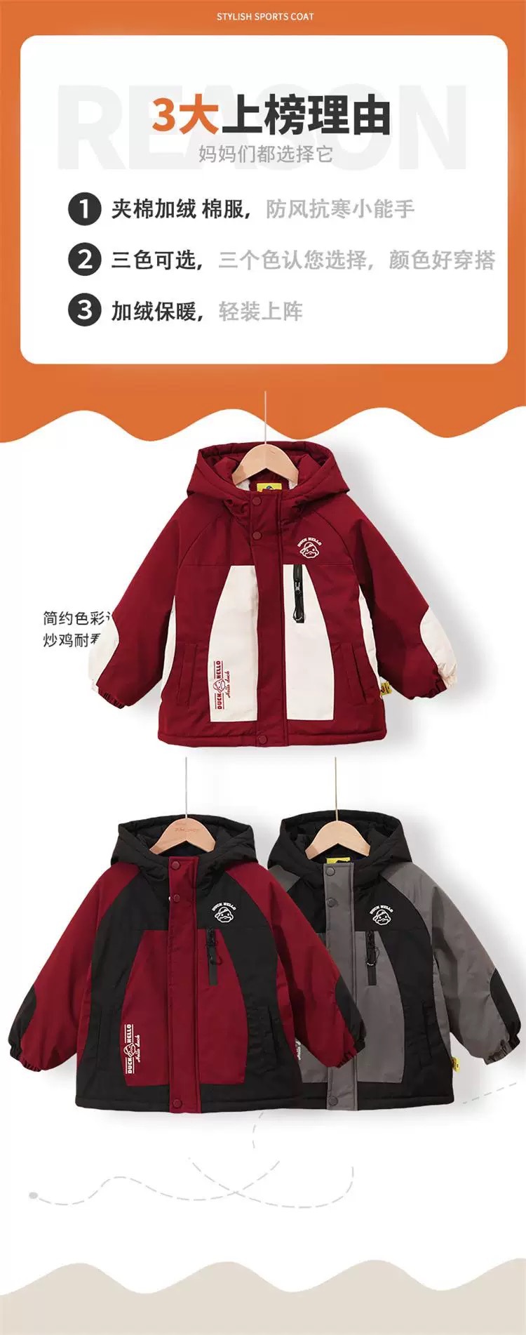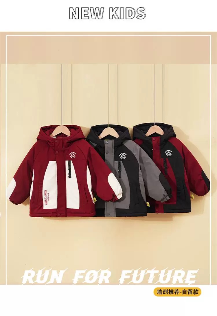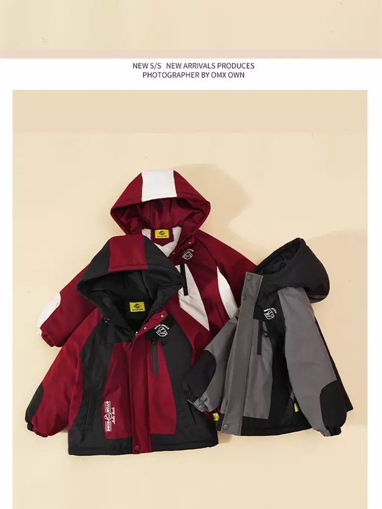 2024 년 새로운 노란색 오리 어린이 두꺼운 기모 면화 코트 소년 소녀 아기 후드 컬러 매칭 겨울 코트스토어 가기