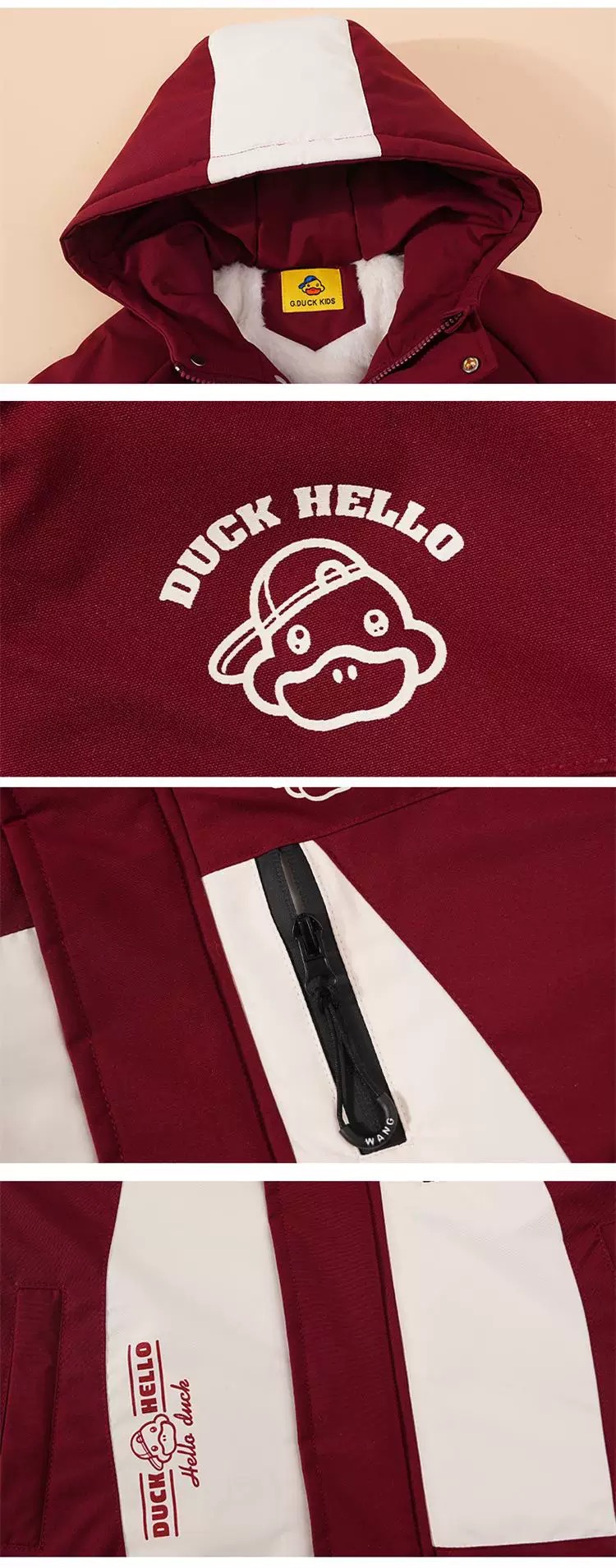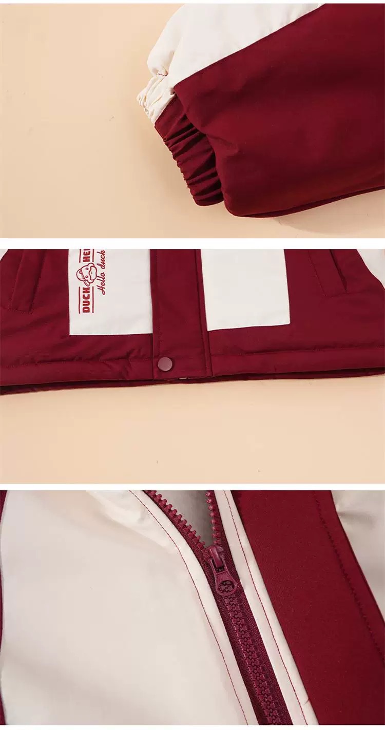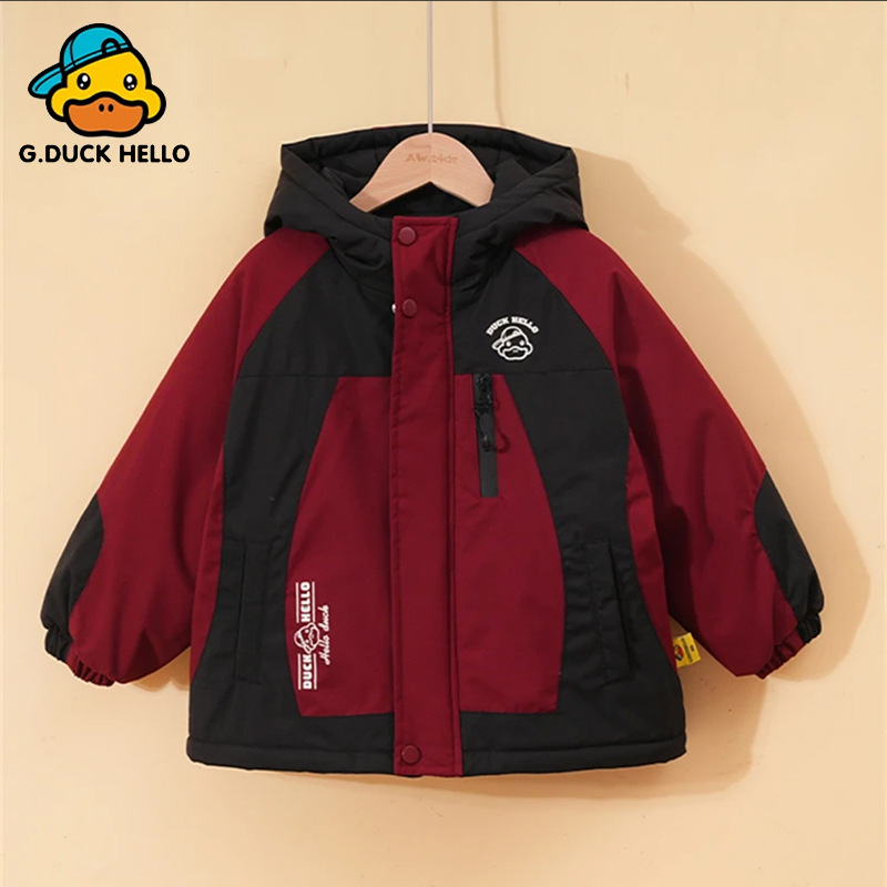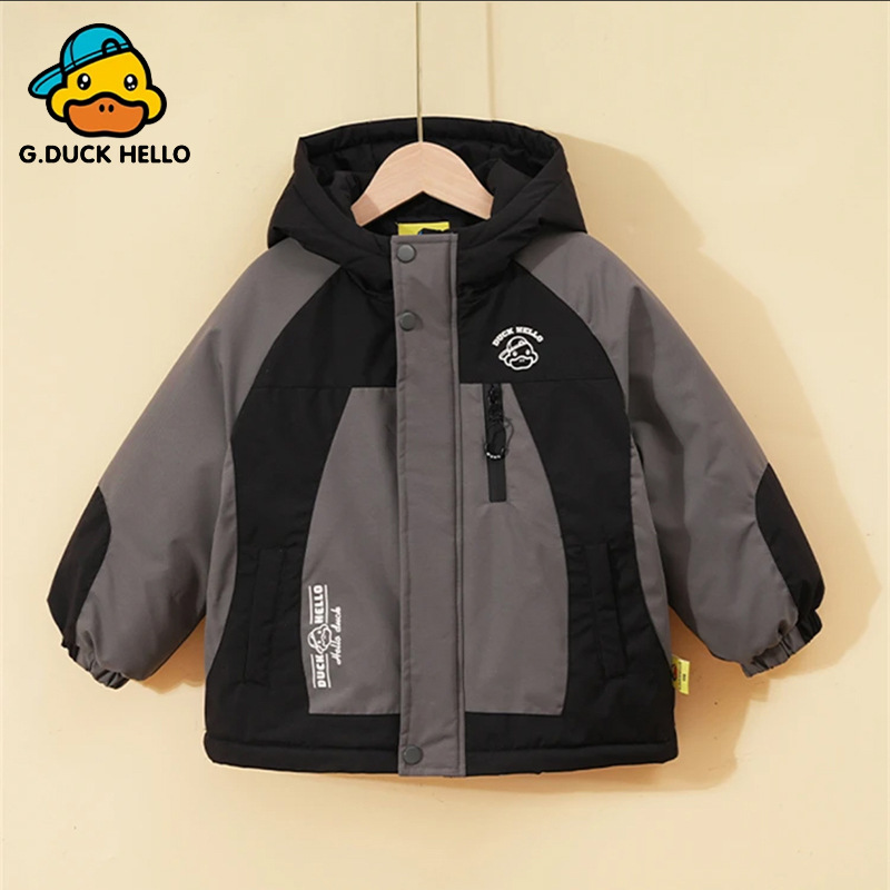 2024 년 새로운 노란색 오리 어린이 두꺼운 기모 면화 코트 소년 소녀 아기 후드 컬러 매칭 겨울 코트