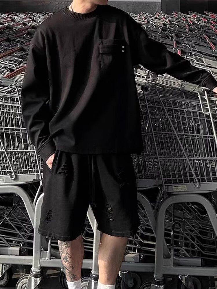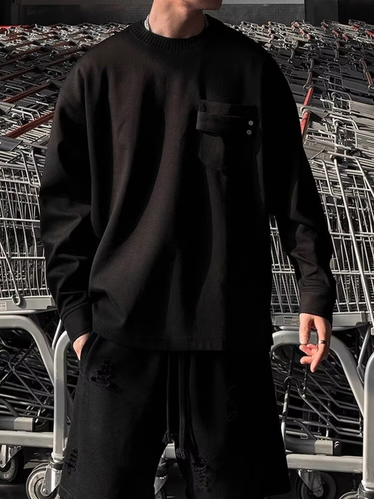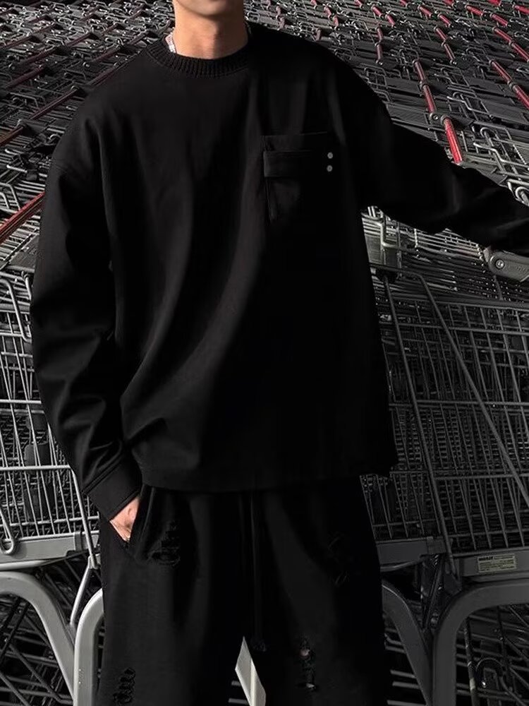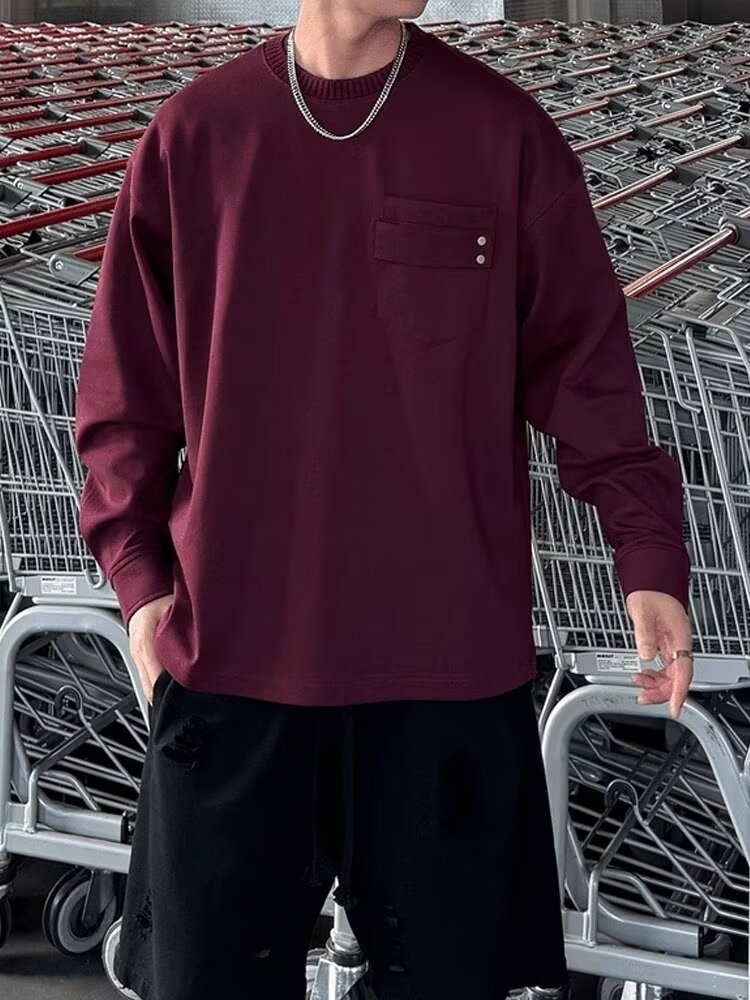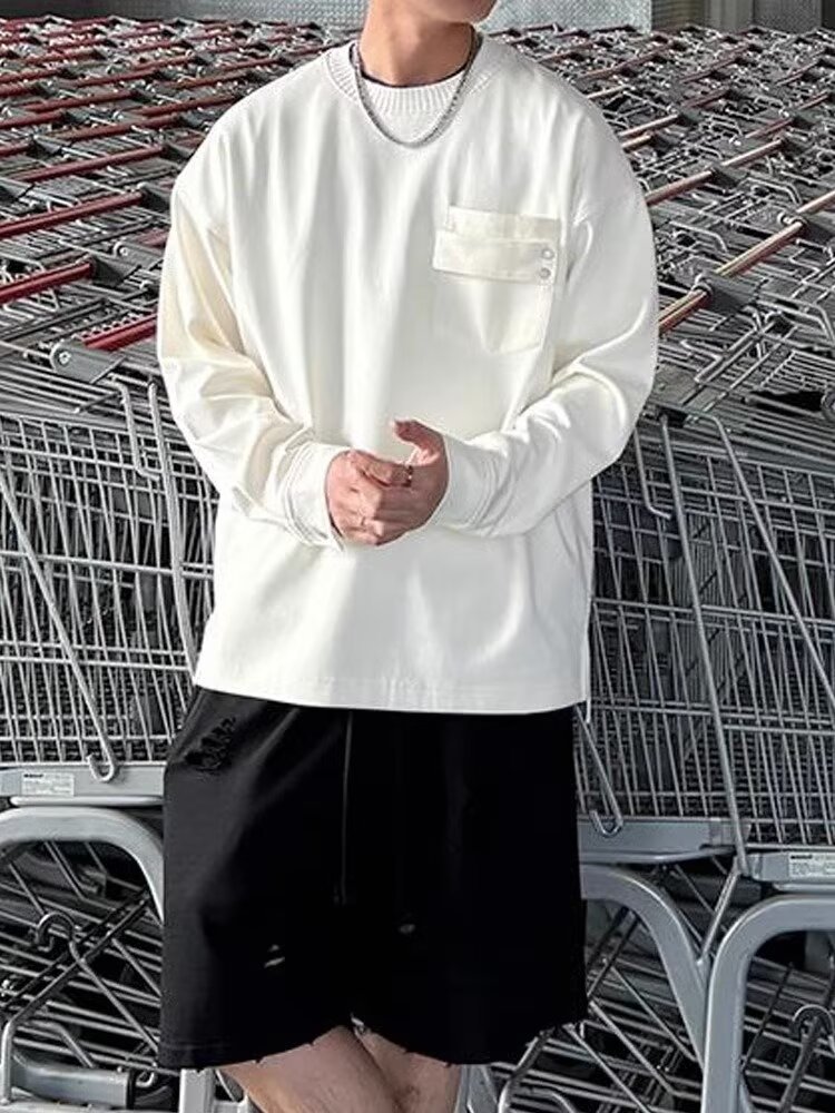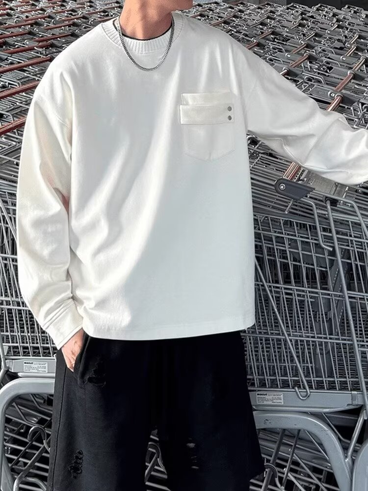 국경 간 미국 복고풍 미니멀리스트 스트리트 센스 커플의 긴팔 티셔츠 남자 무거운 가을베이스 셔츠 트렌디 한 봄과 가을 남자스토어 가기