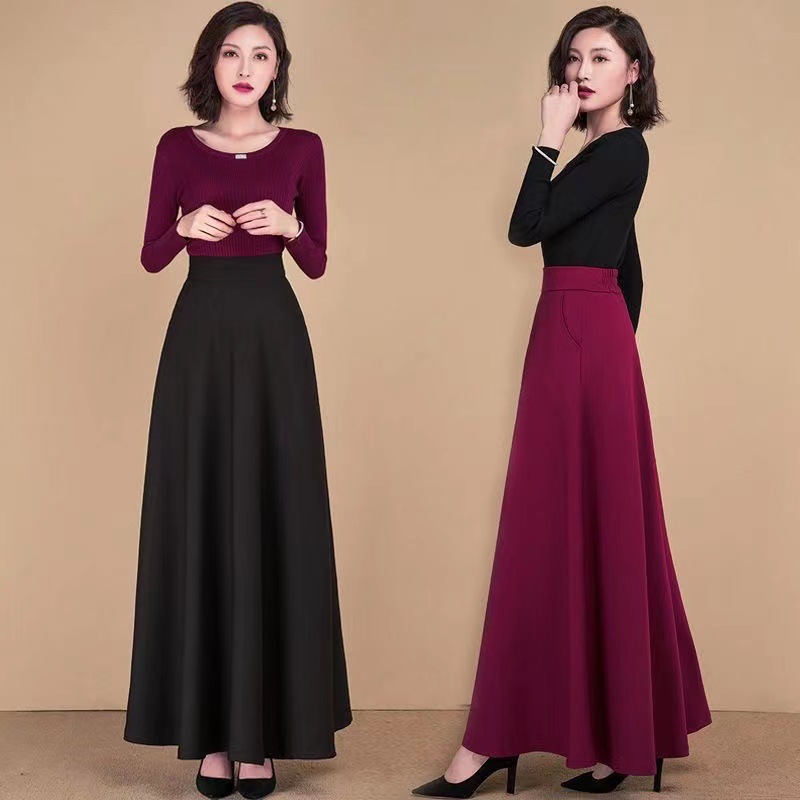 느슨해지는 허리 대형 스윙 스커트 A-라인 스커트 여자 플러스 사이즈 포시즌 댄싱 스커트 유럽역 하이웨이스트 올매치 스커트
