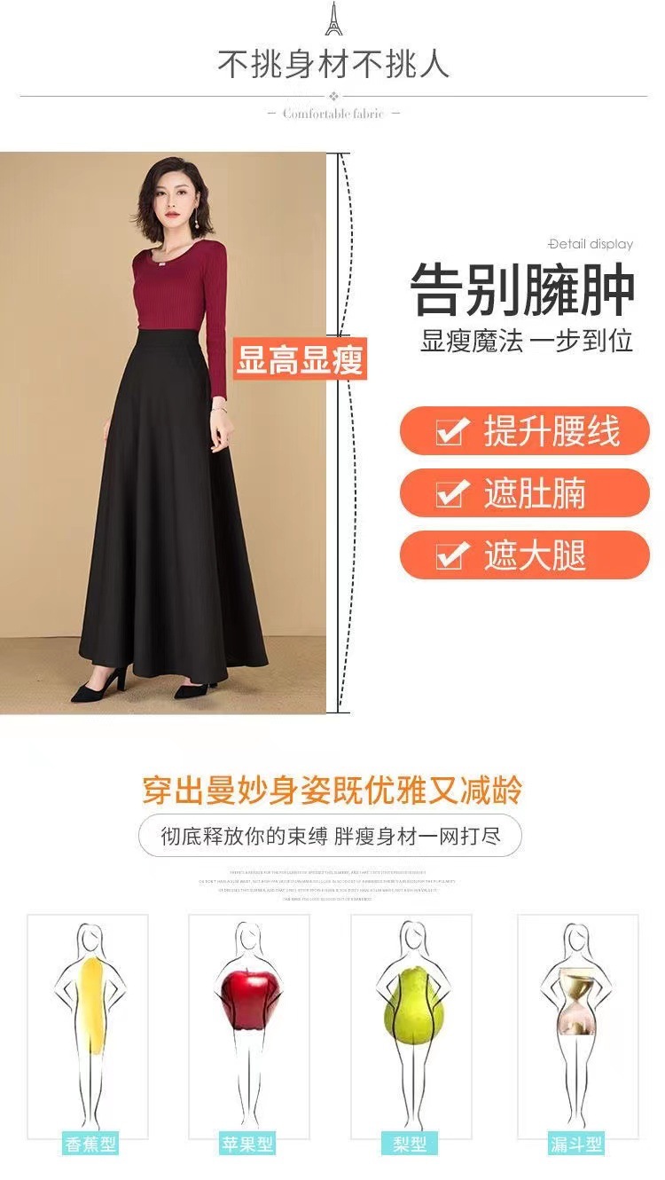느슨해지는 허리 대형 스윙 스커트 A-라인 스커트 여자 플러스 사이즈 포시즌 댄싱 스커트 유럽역 하이웨이스트 올매치 스커트스토어 가기