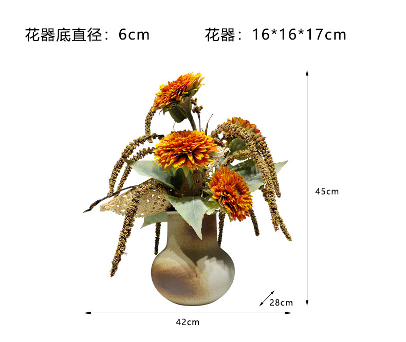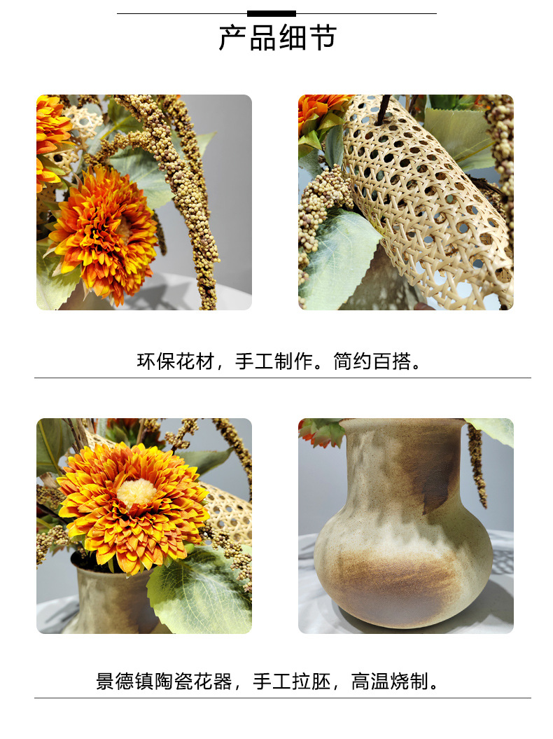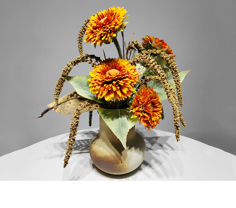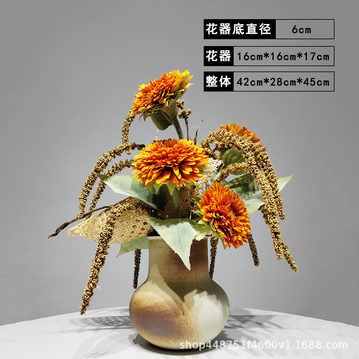 하이 퀄리티 실크 꽃 하이 엔드 인공 식물 재배 세트 거실 모델 룸 장식을위한 가짜 꽃 장식
