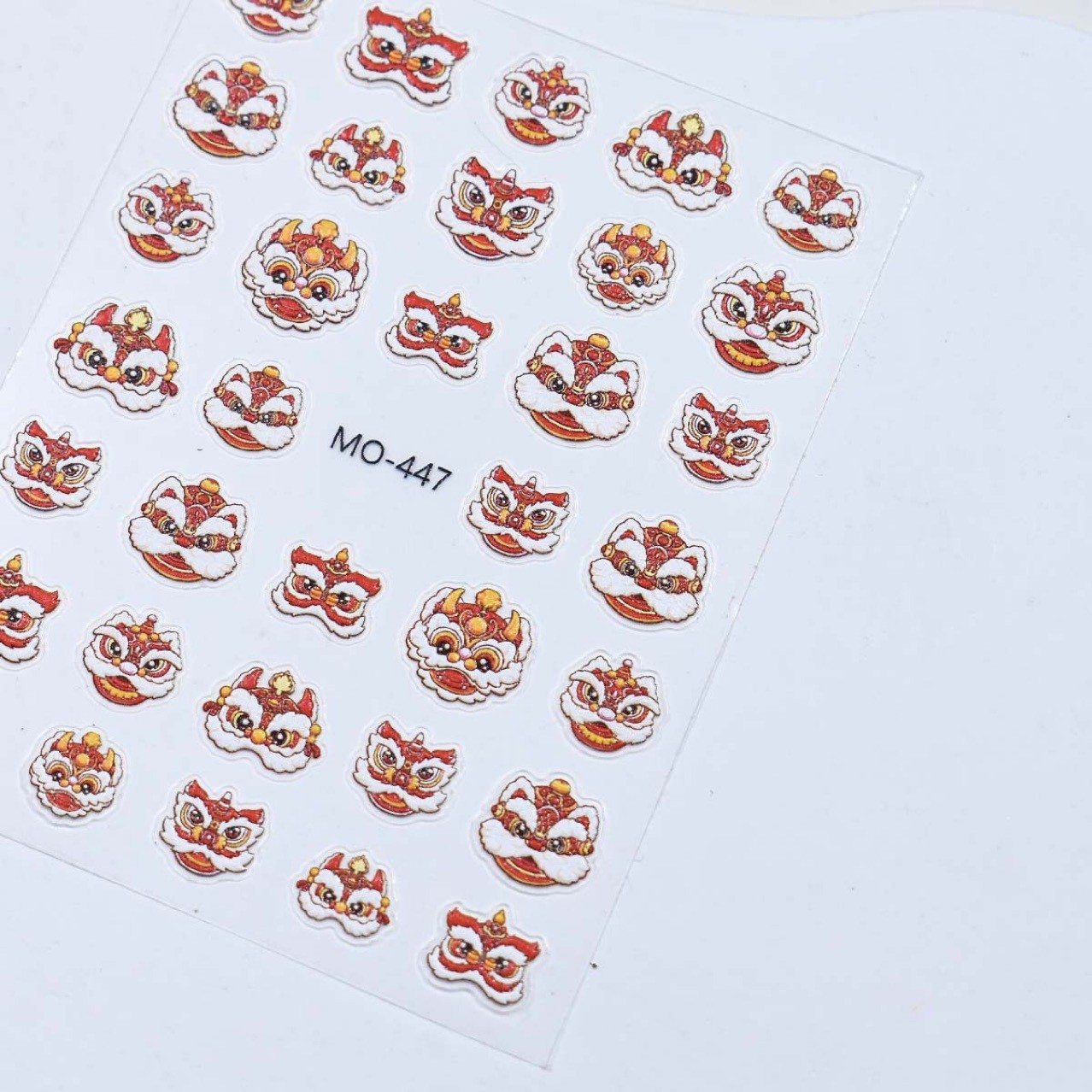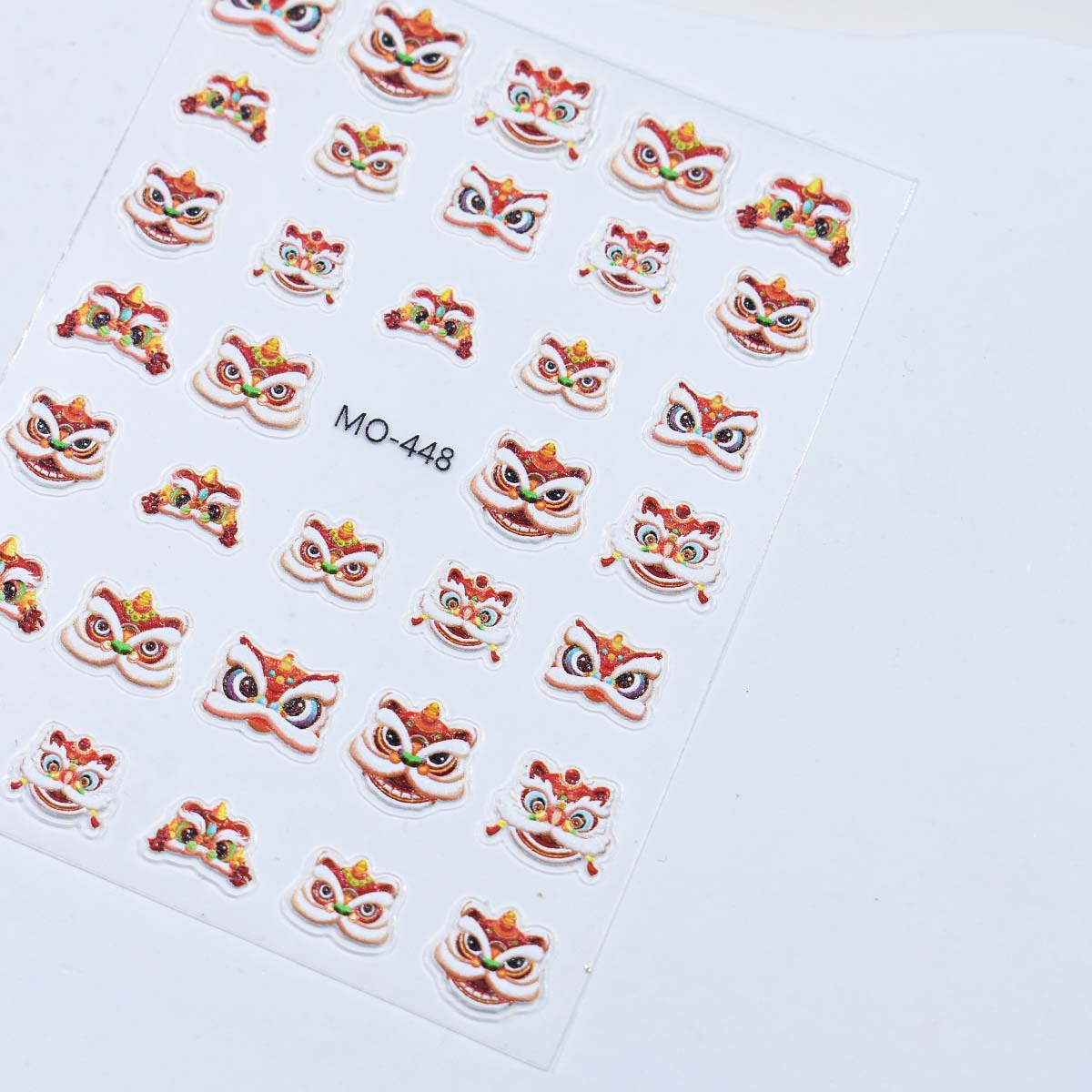새해 봄 축제 새로운 3 차원 구호 사자 뱀 만화 네일 스티커 diy 사자 머리 네일 스티커 도매
