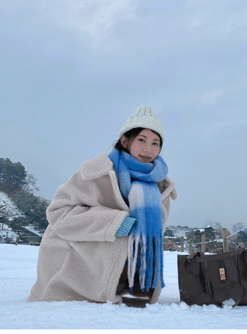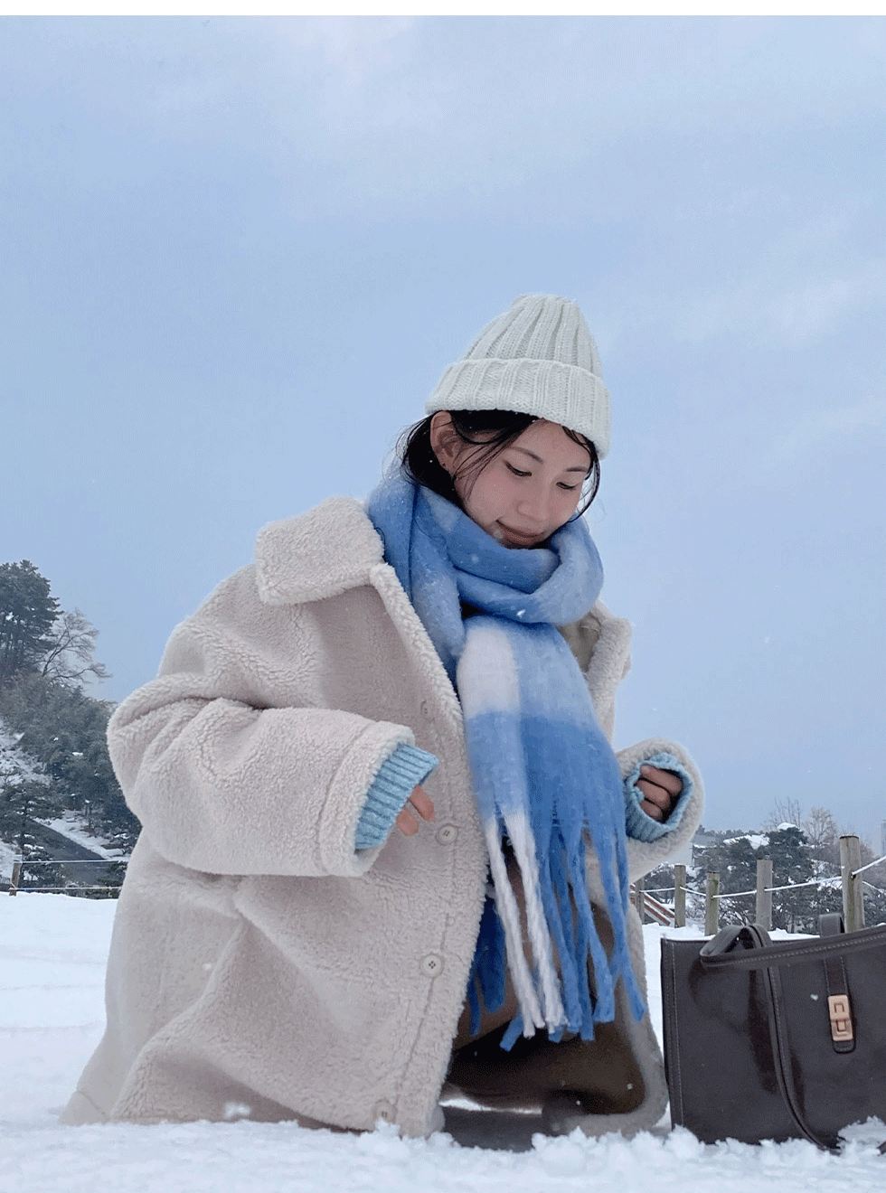 소프트 ~ 아쿠아 블루 격자 무늬 스카프 여성의 가을과 겨울 두꺼운 모헤어 학생 커플 Ins 컬러 매칭 올매치 두껍게스토어 가기