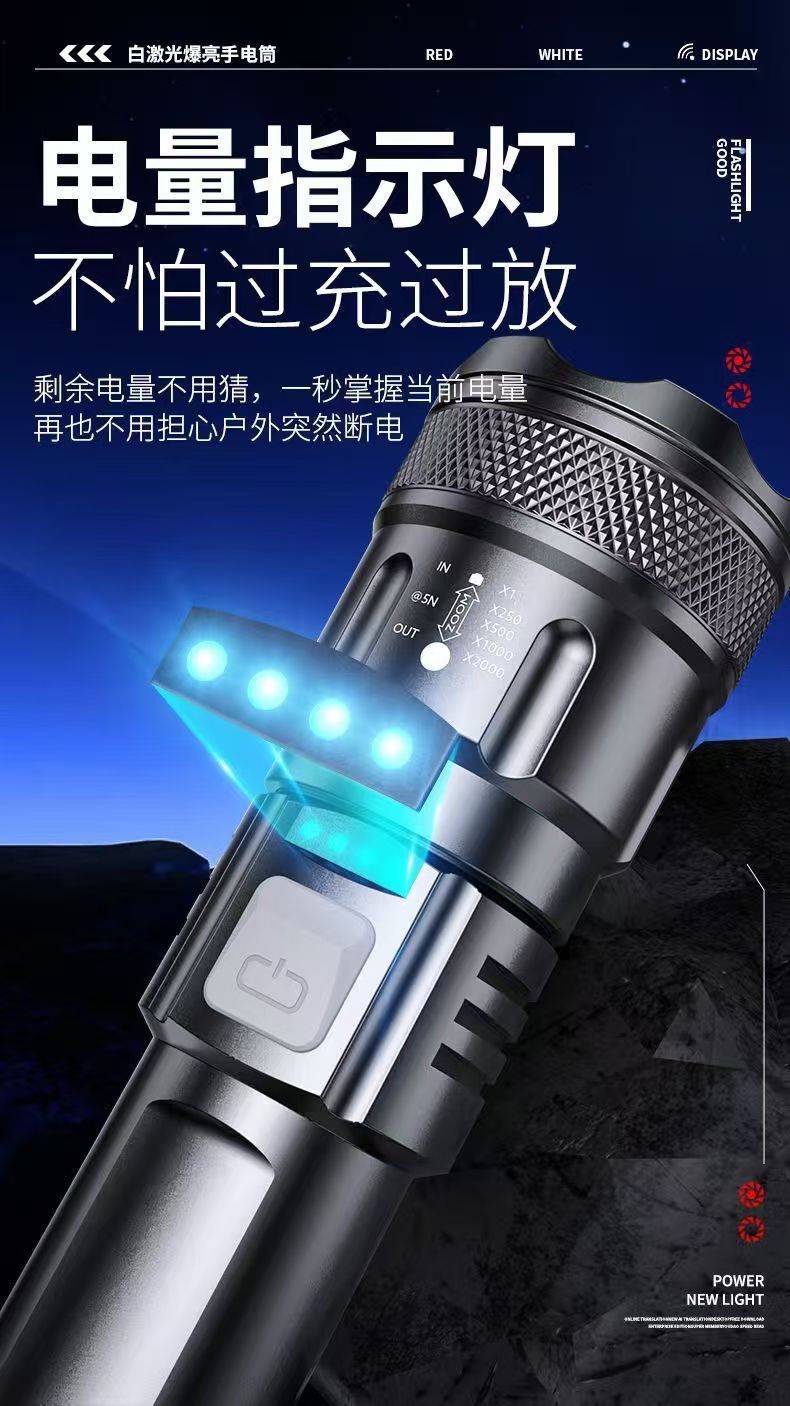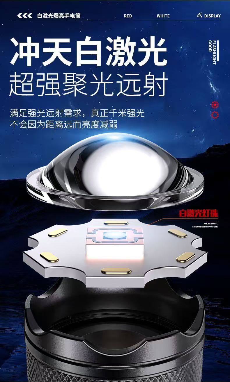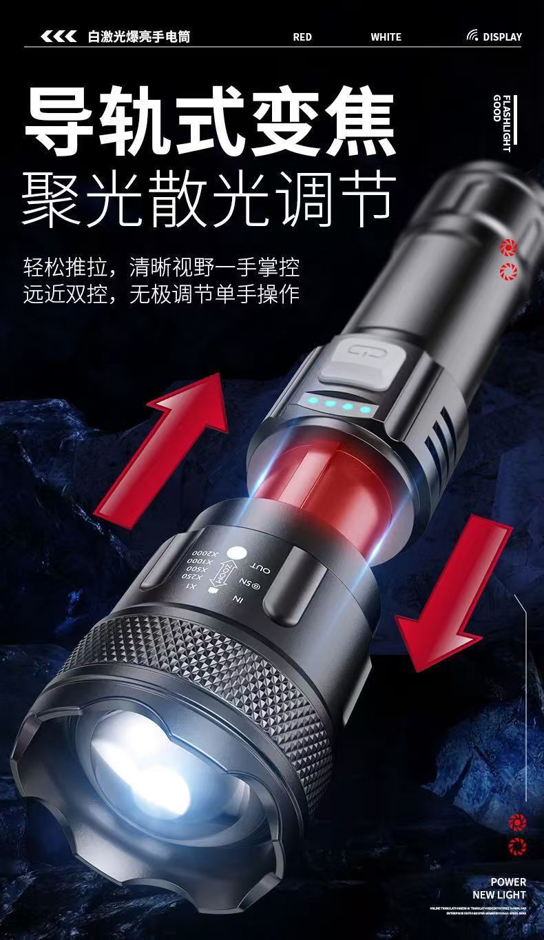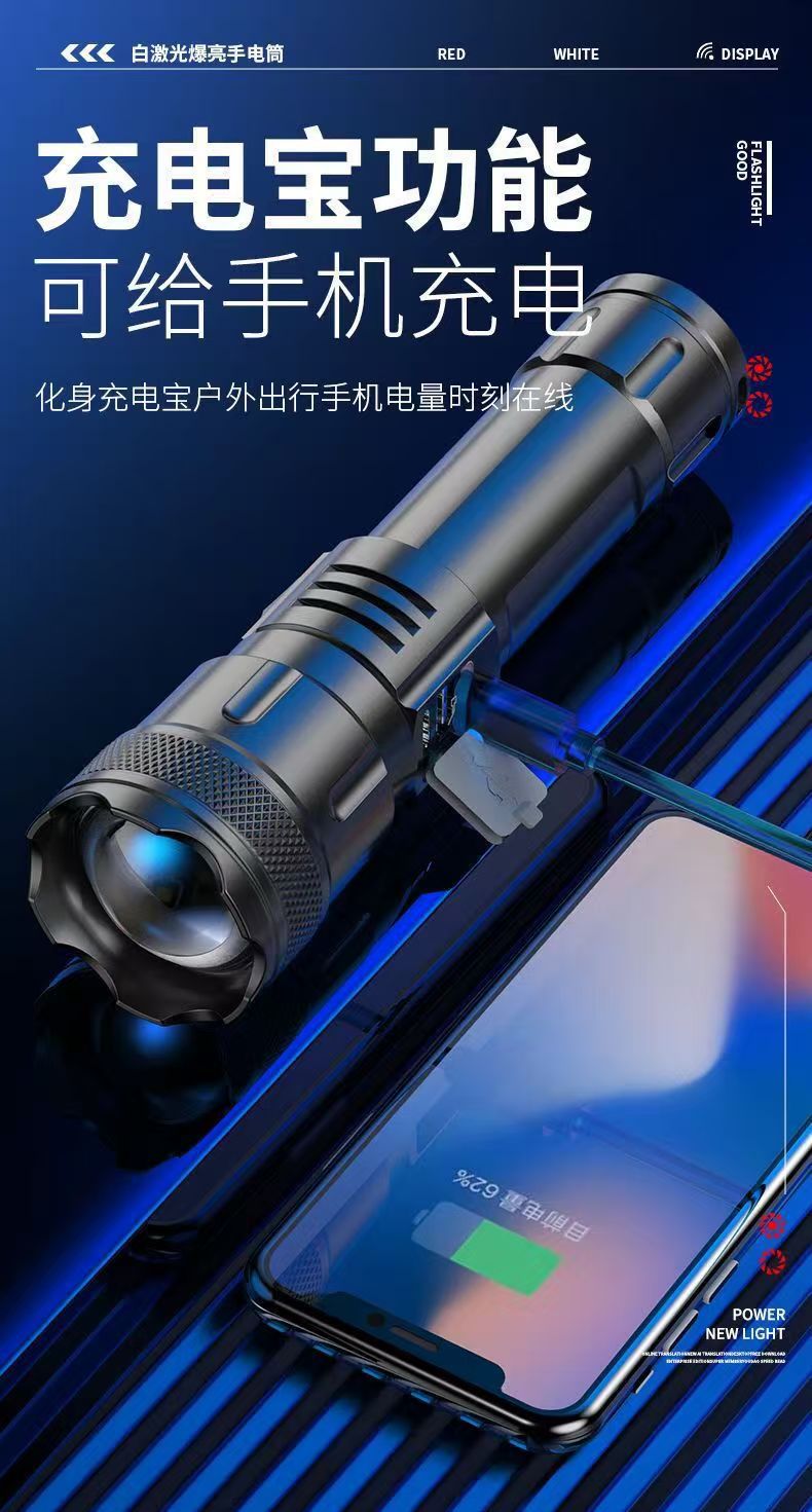 국경 간 손전등 USB 흰색 레이저 휴대용 충전 슈퍼 밝은 비상 야외 조명 줌 장거리 스포트라이트스토어 가기