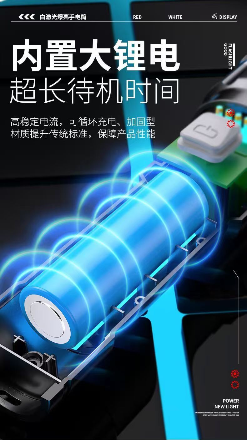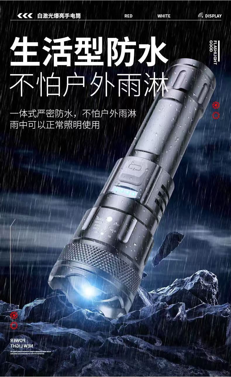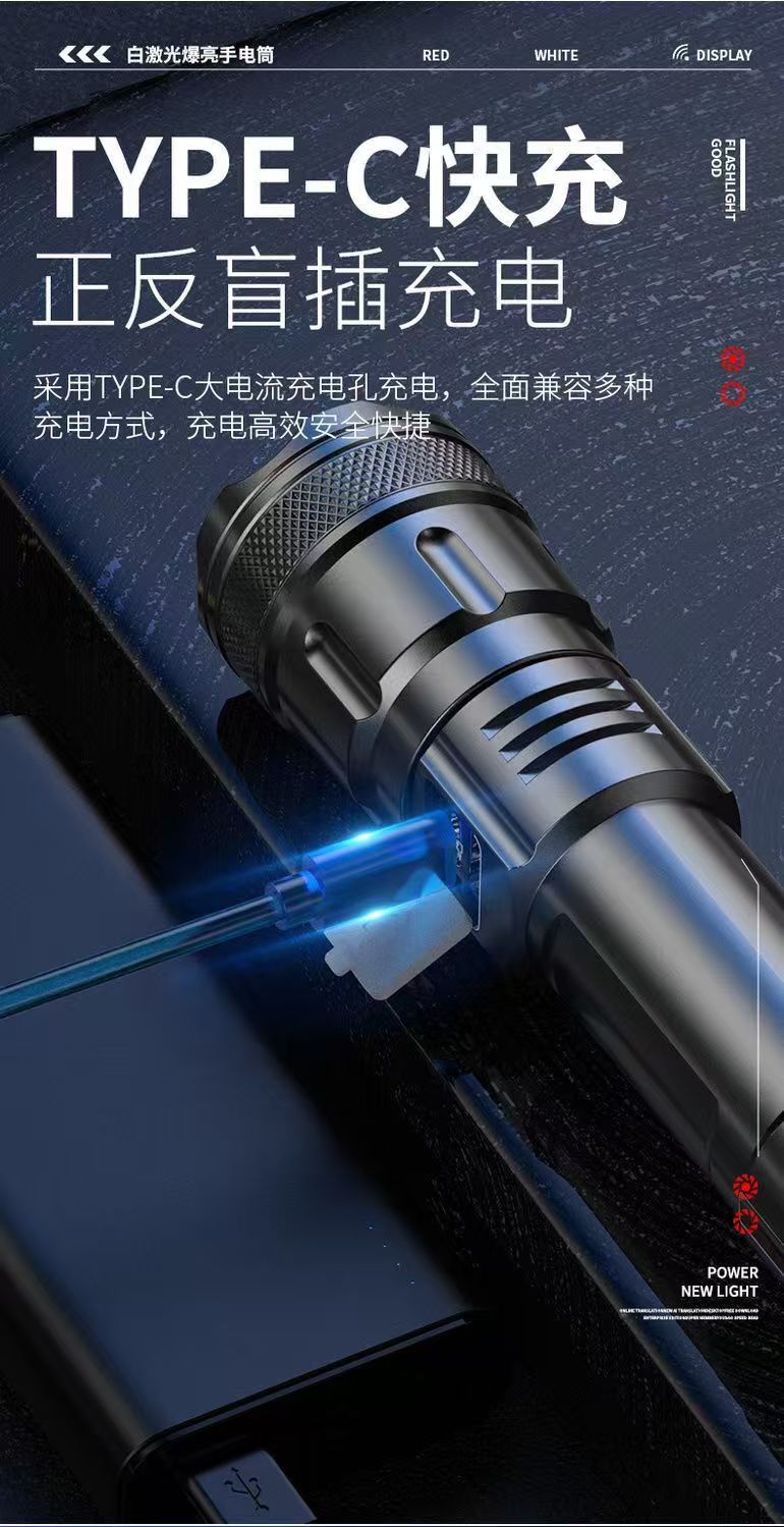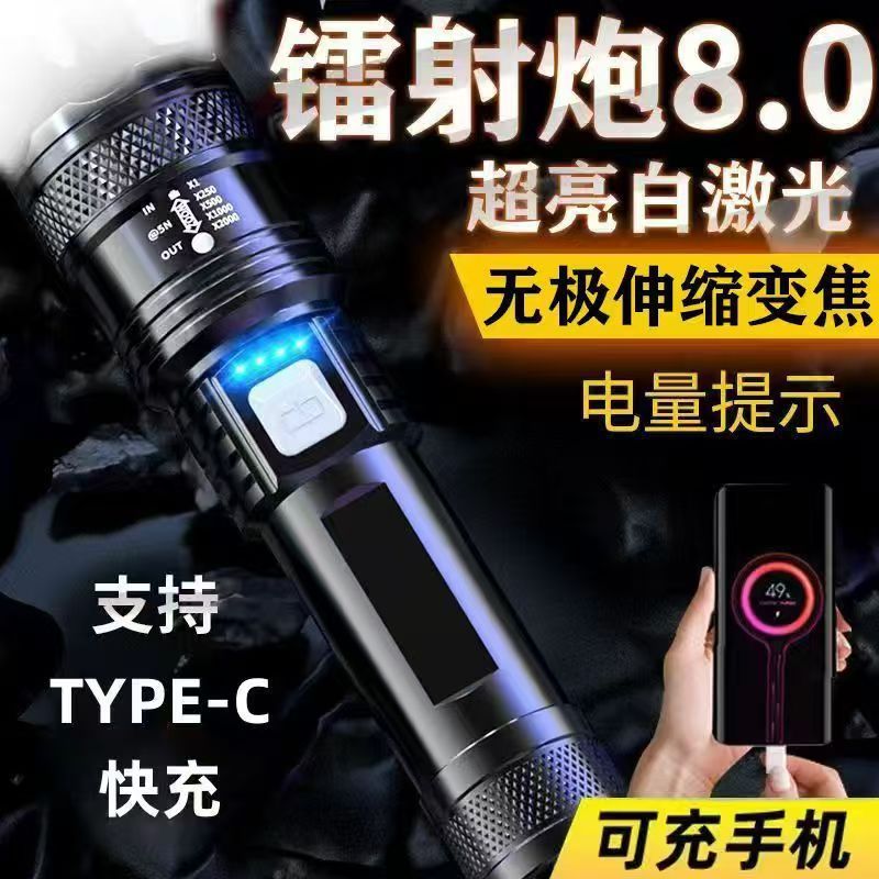 국경 간 손전등 USB 흰색 레이저 휴대용 충전 슈퍼 밝은 비상 야외 조명 줌 장거리 스포트라이트스토어 가기